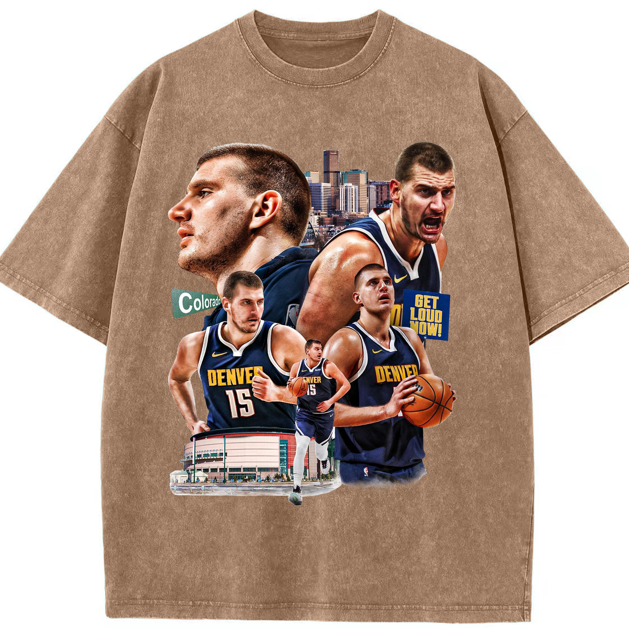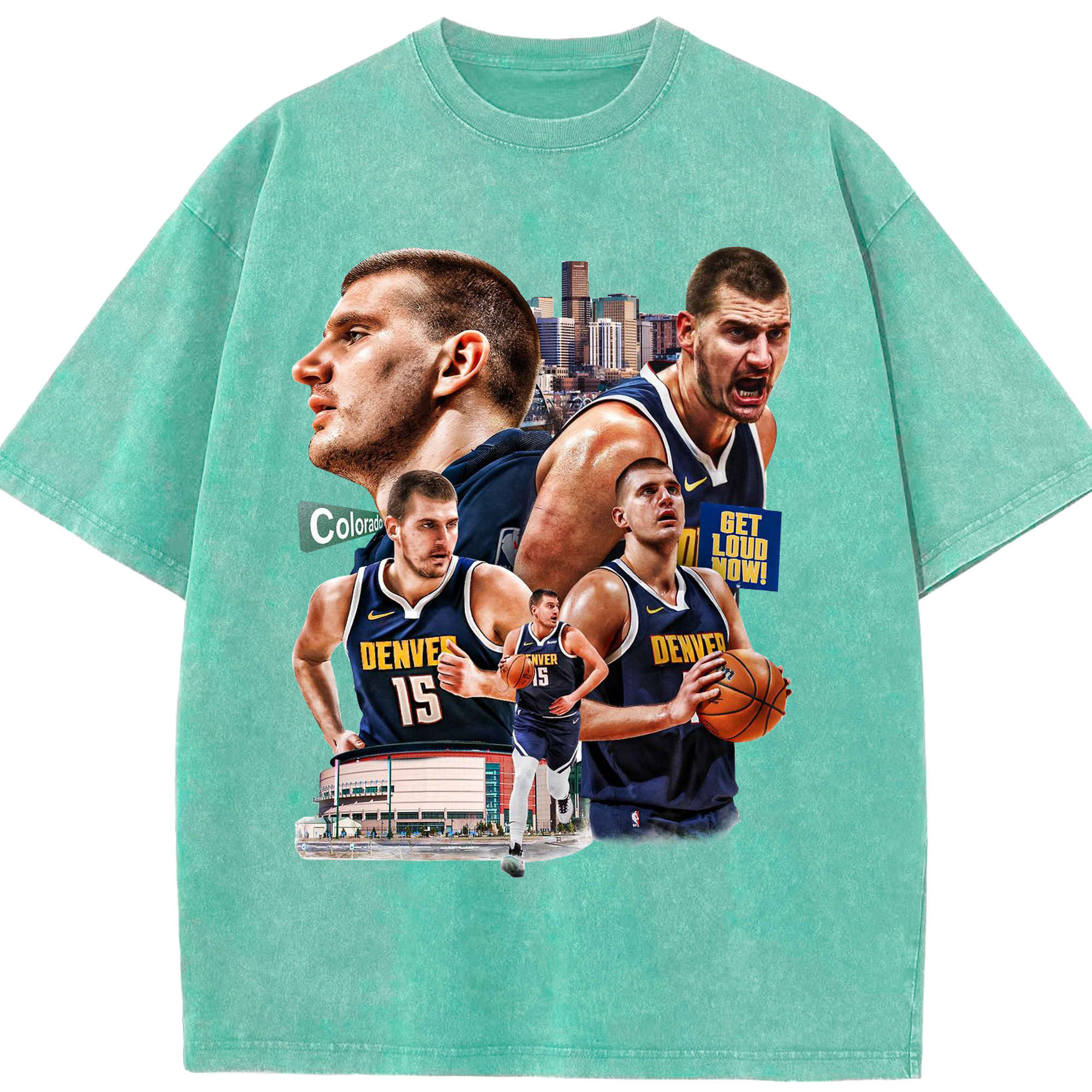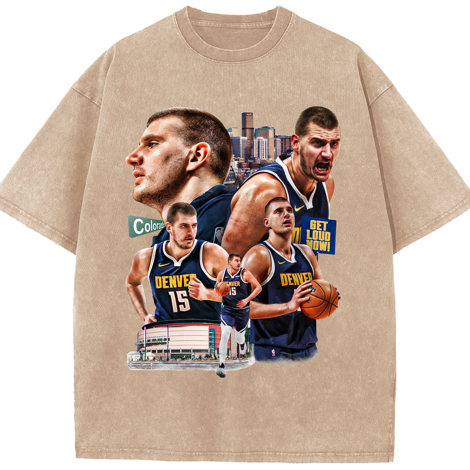 Nikola Jokić Downtown Denver Backdrop Energy Shirt - Washed Vintage Look 230g Cotton Oversized T-Shirt With Front Heat Transfer Print – Soft, Lightweight, Stylish Fit – Comfortable Casual Wear For Sports & Everyday Use