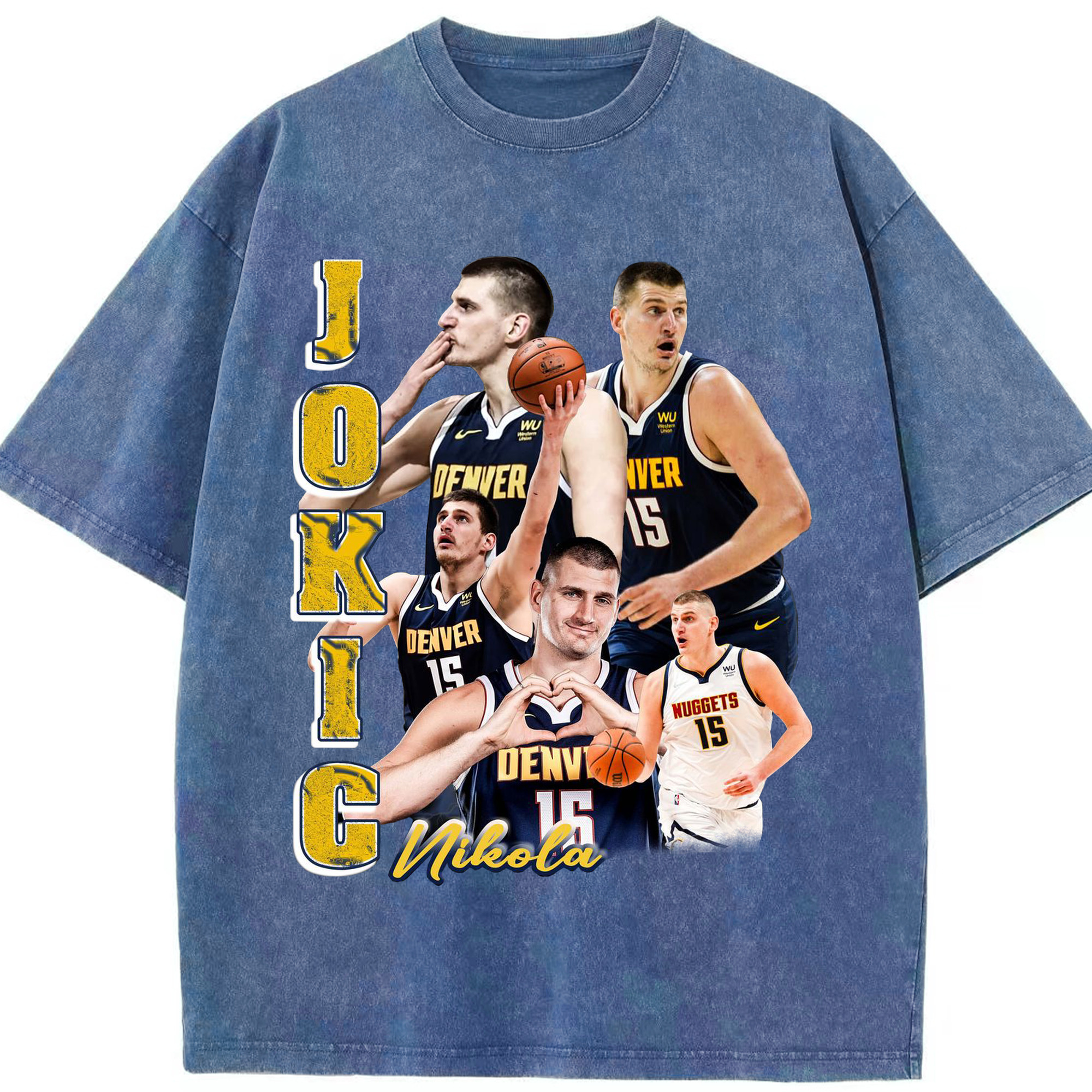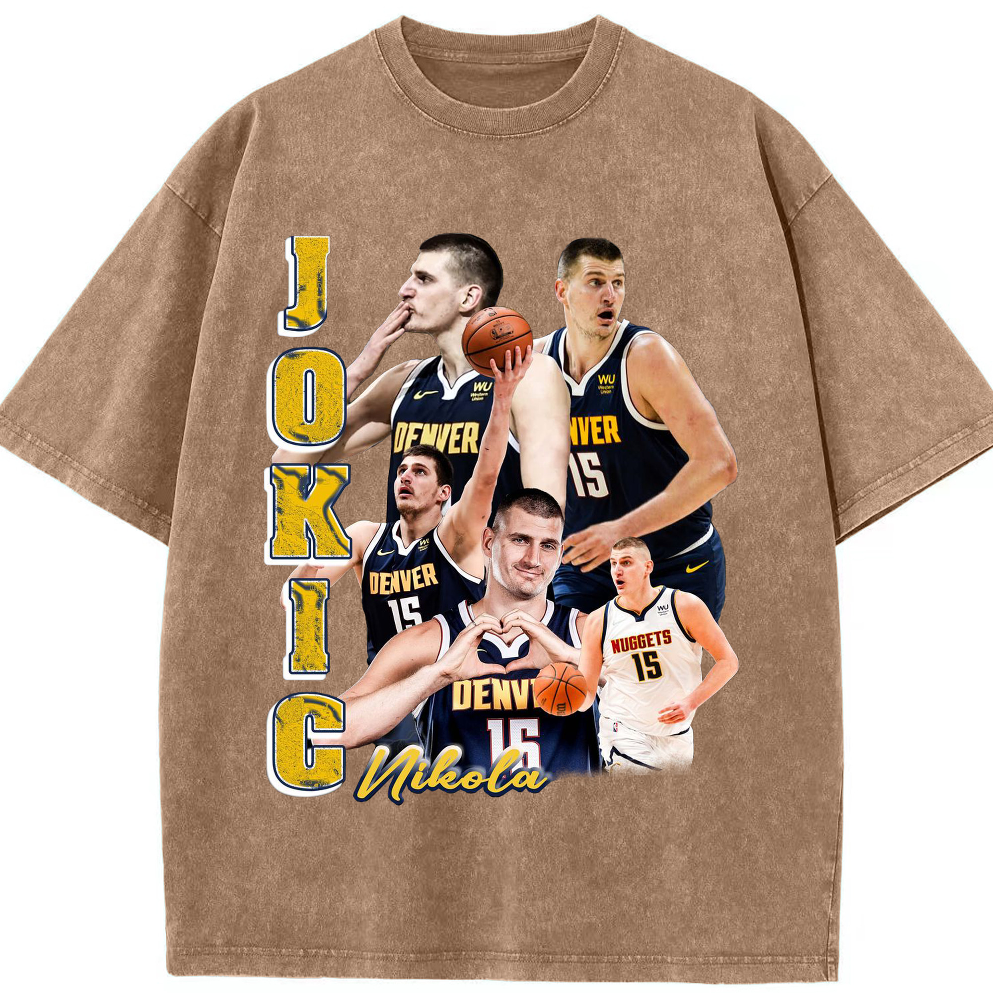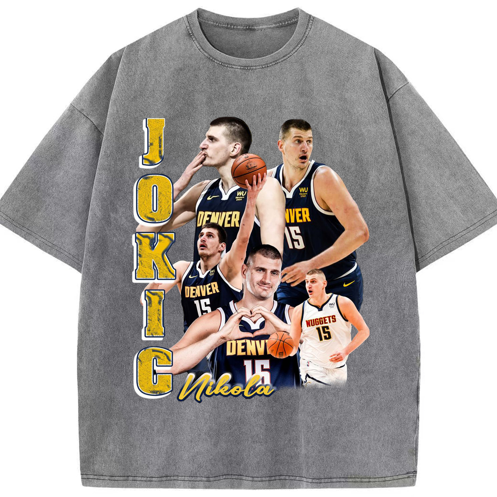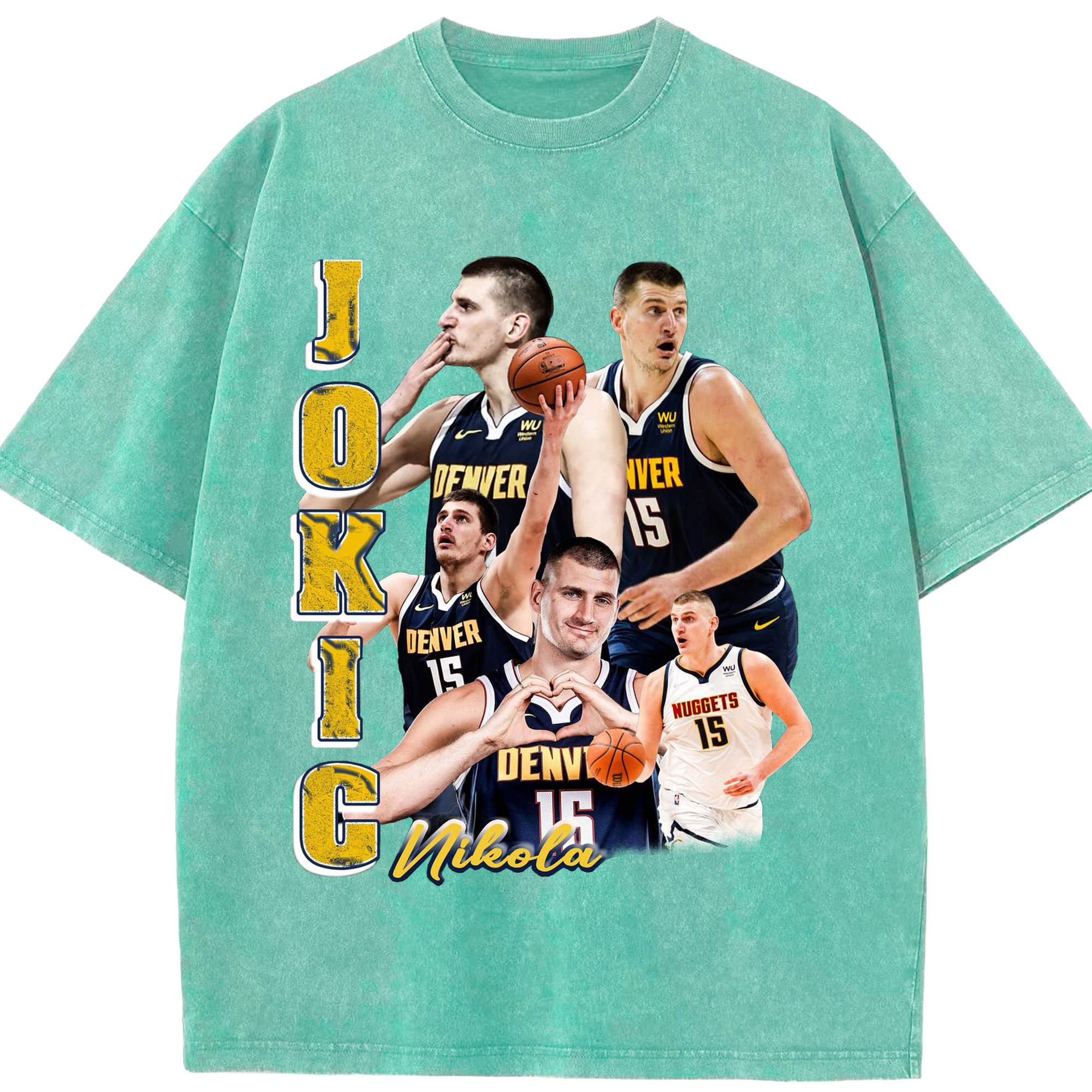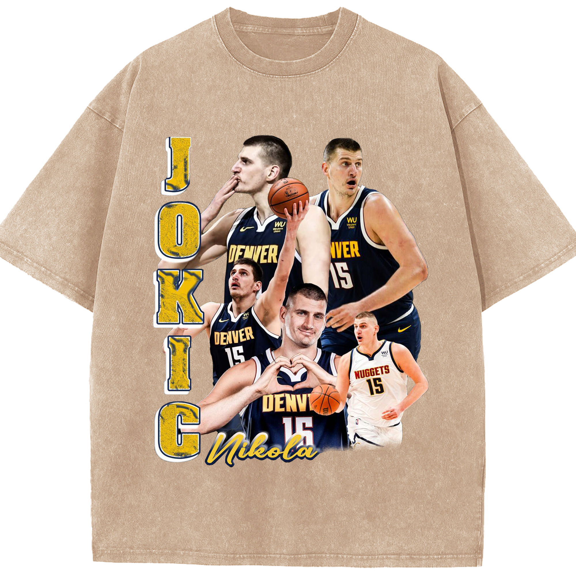 Nikola Jokić “Heart Hands” Tribute Shirt - Washed Vintage Look 230g Cotton Oversized T-Shirt With Front Heat Transfer Print – Soft, Lightweight, Stylish Fit – Comfortable Casual Wear For Sports & Everyday Use