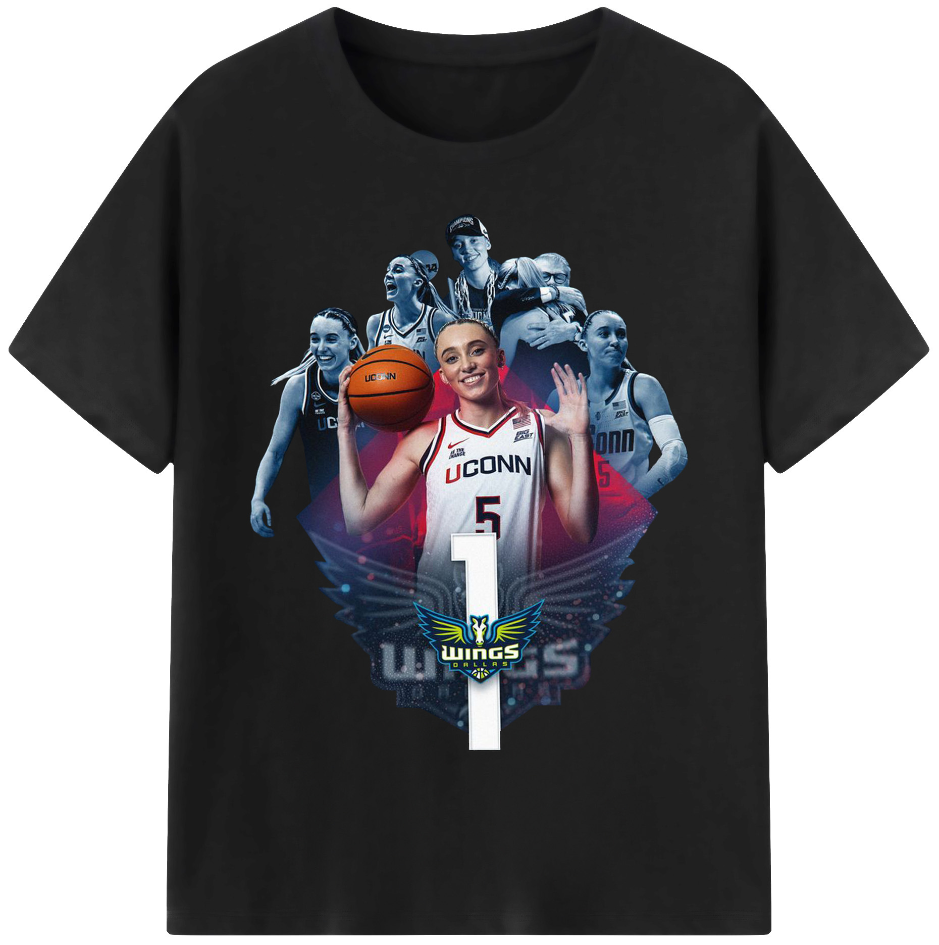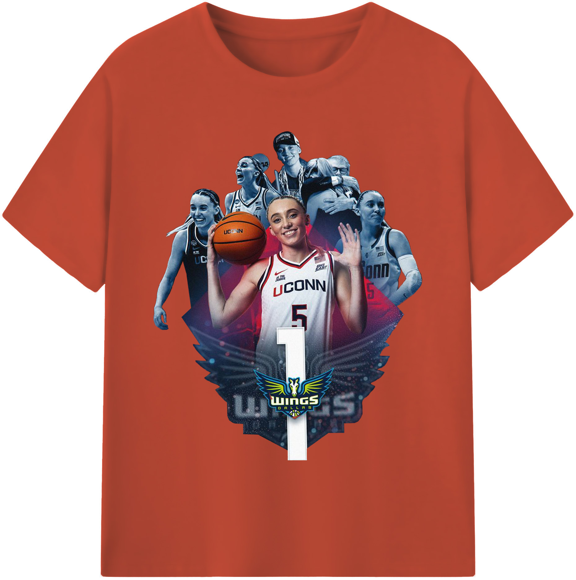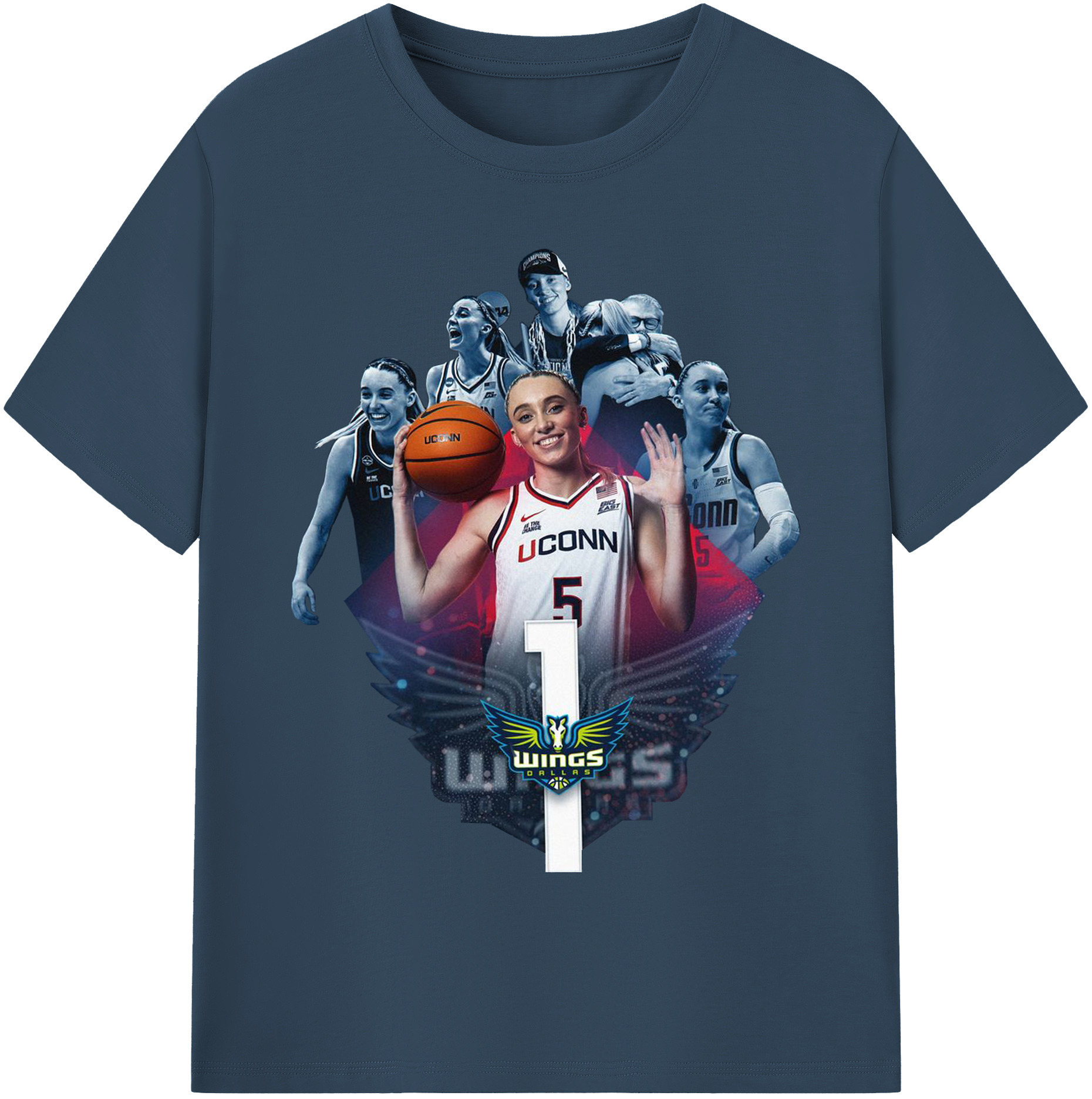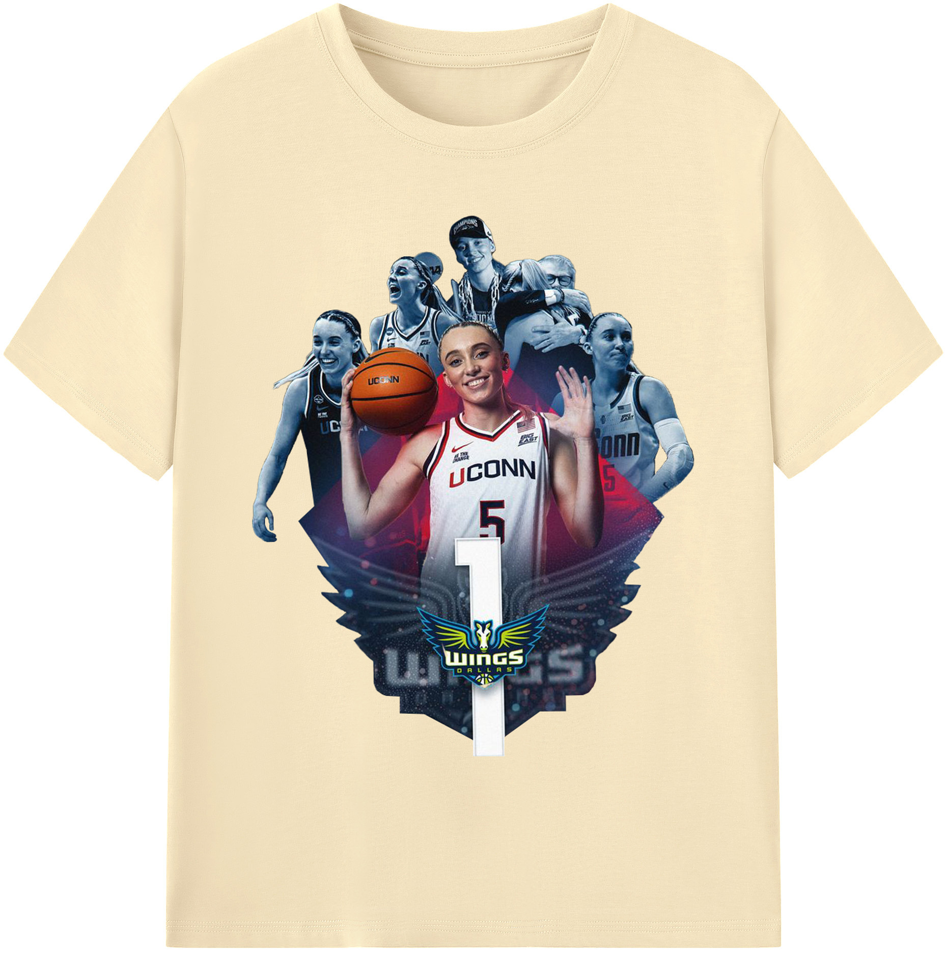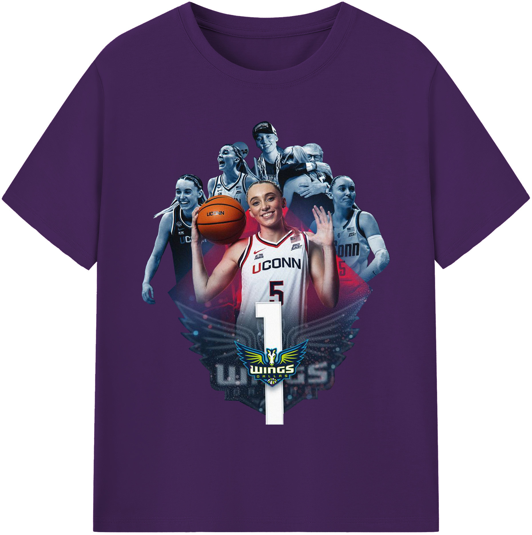 Paige Bueckers Dallas Wings #1 UConn NCAA Star Shirt - 180g Cotton T-Shirt With Front Heat Transfer Print – Soft, Lightweight, Fitted Design – Comfortable Casual Wear For Sports & Everyday Use