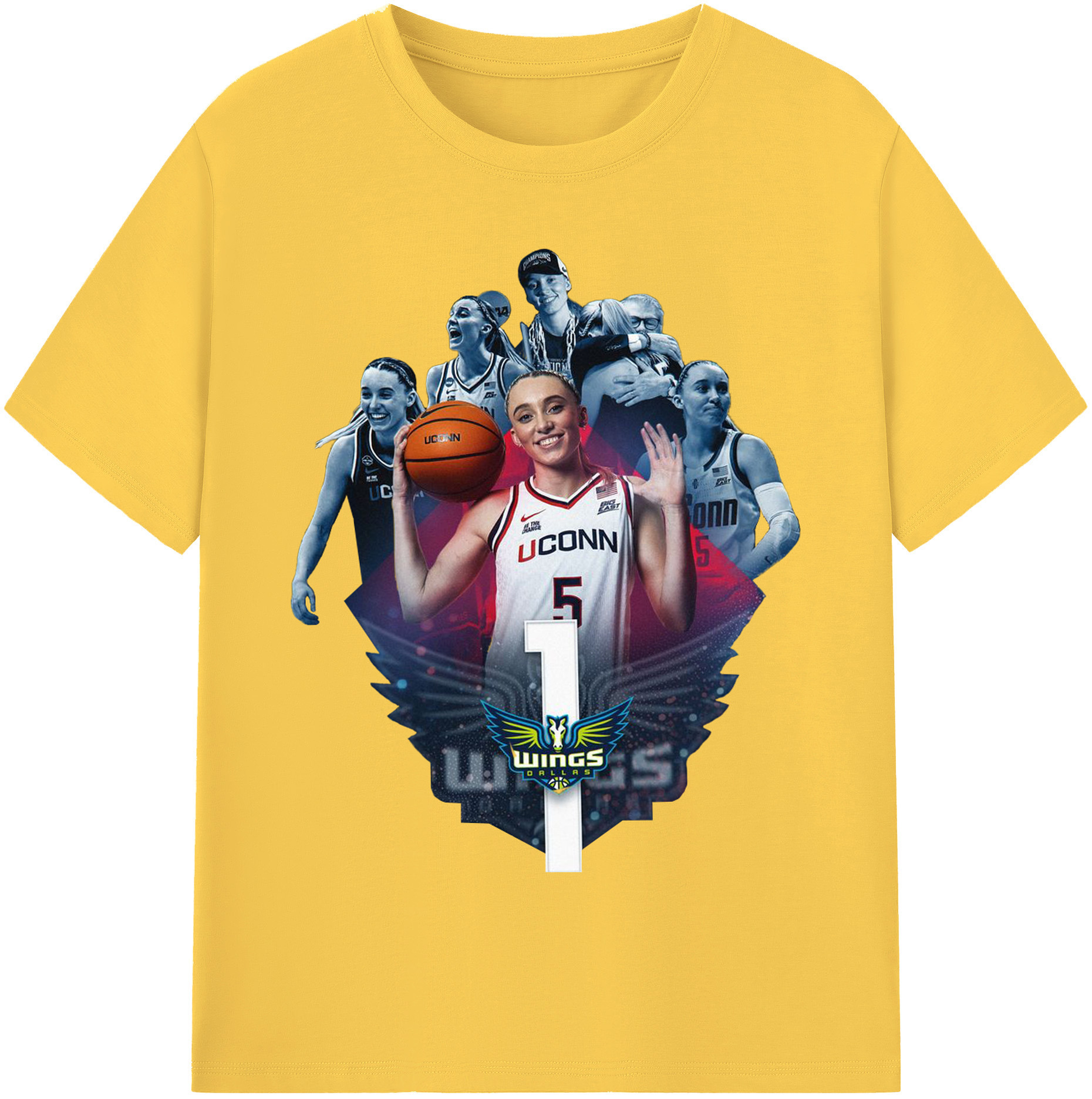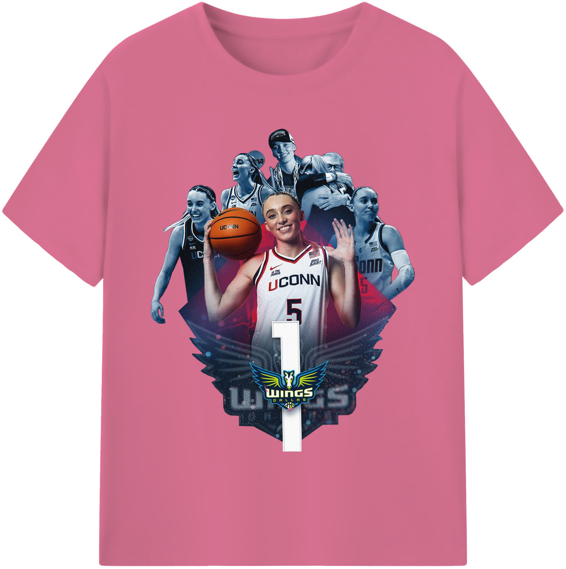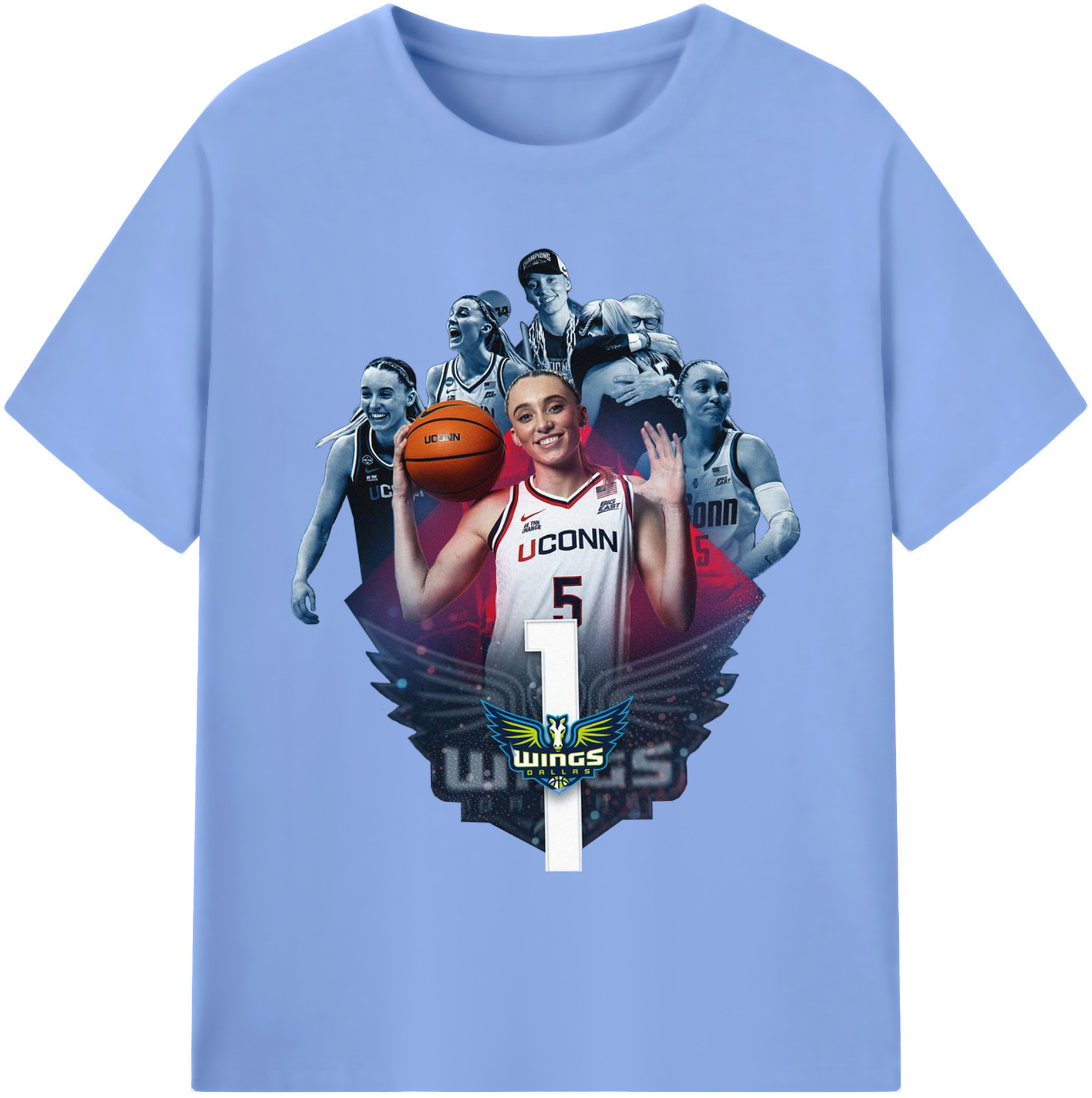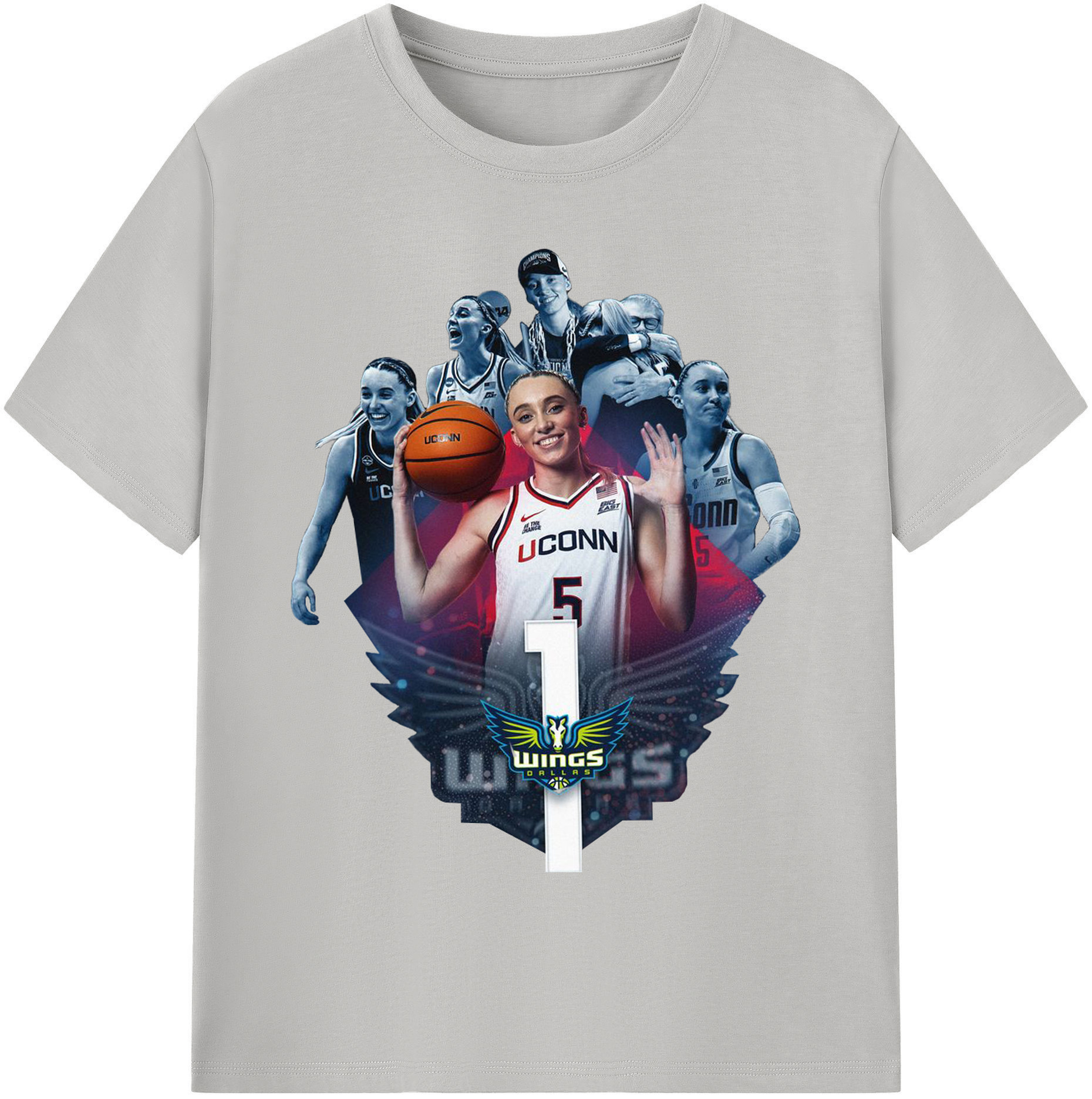 Paige Bueckers Dallas Wings #1 UConn NCAA Star Shirt - 180g Cotton T-Shirt With Front Heat Transfer Print – Soft, Lightweight, Fitted Design – Comfortable Casual Wear For Sports & Everyday Use