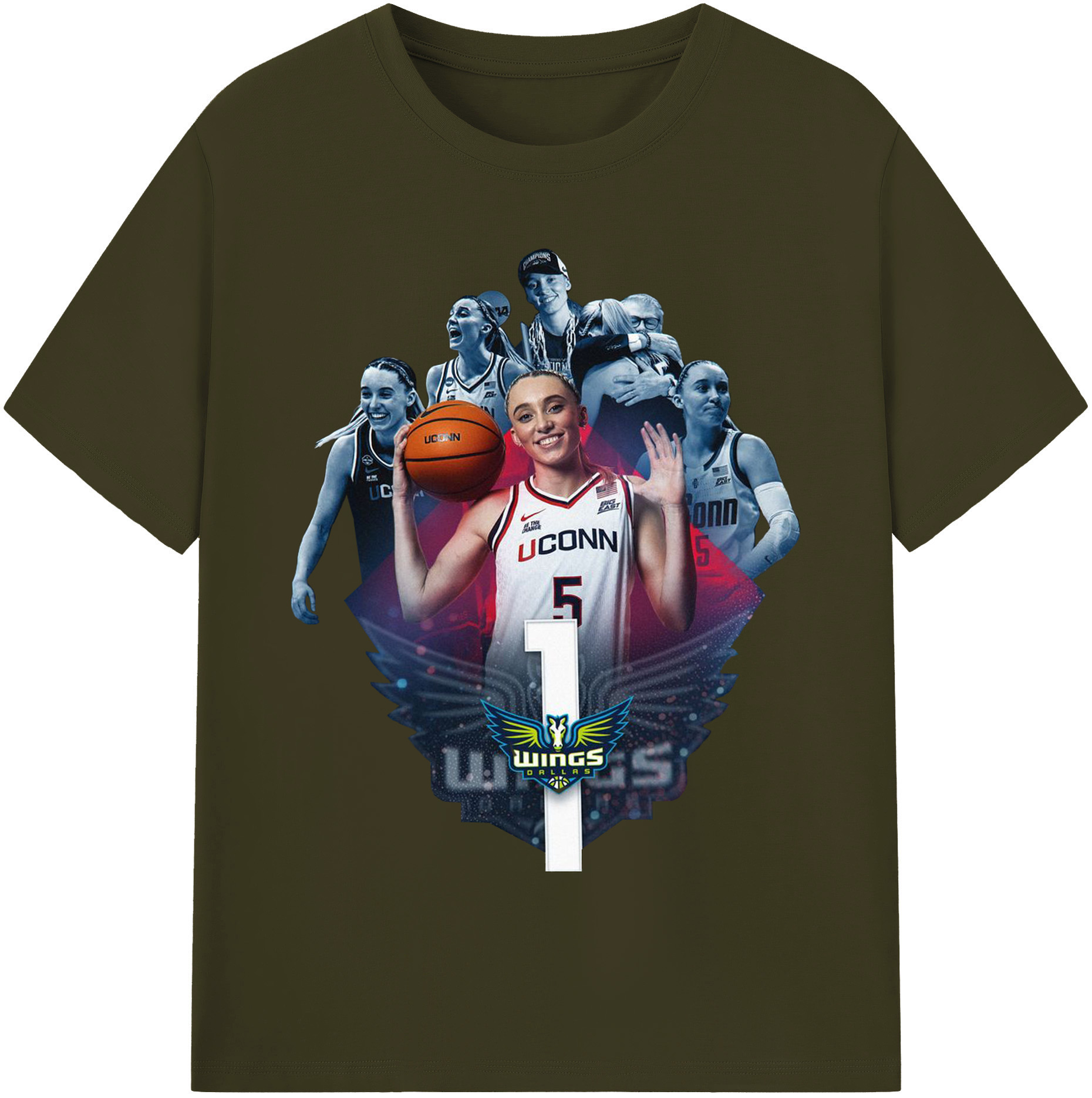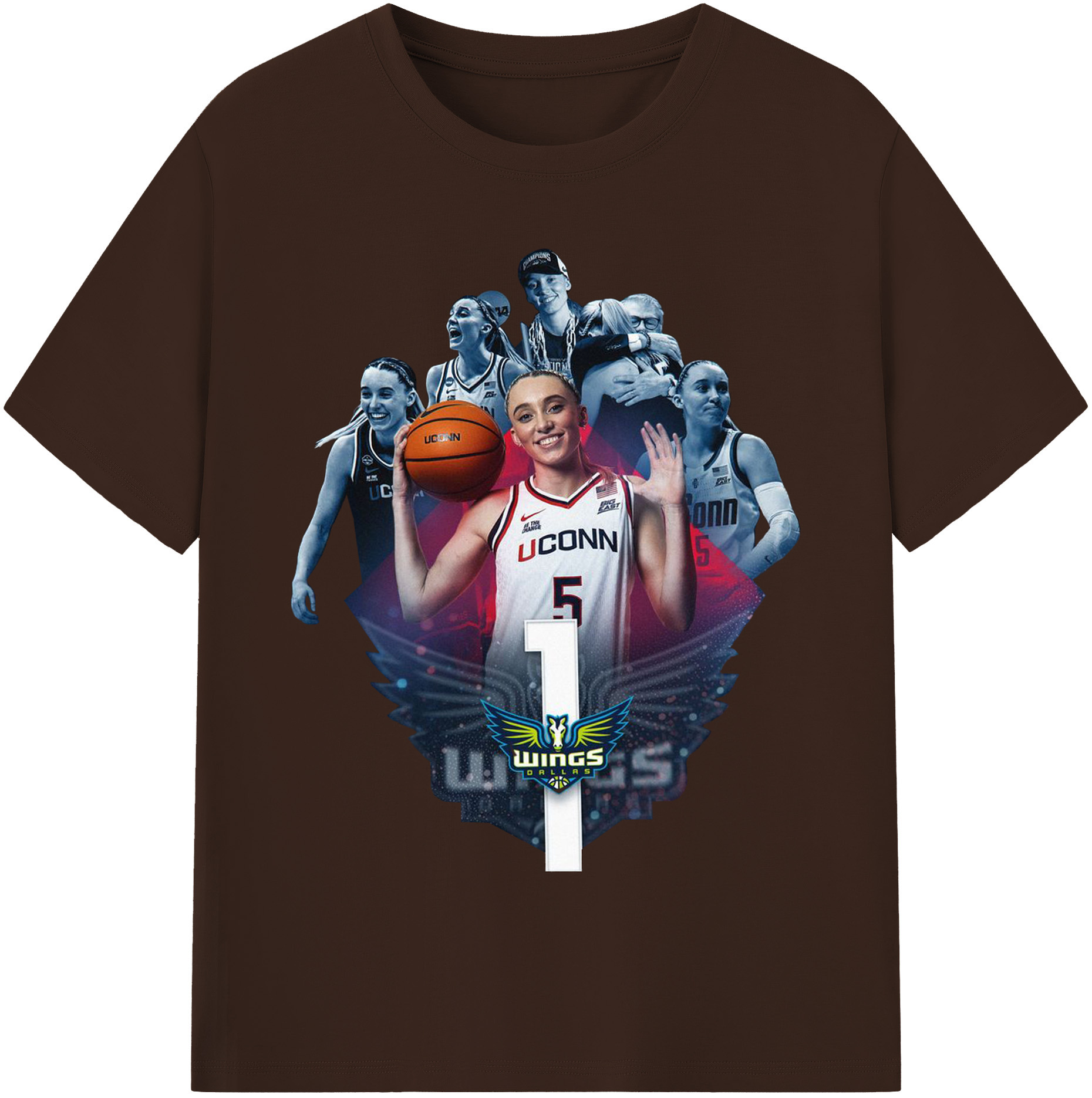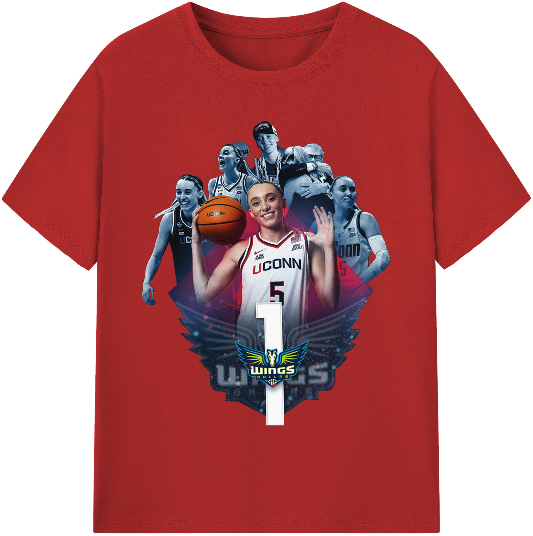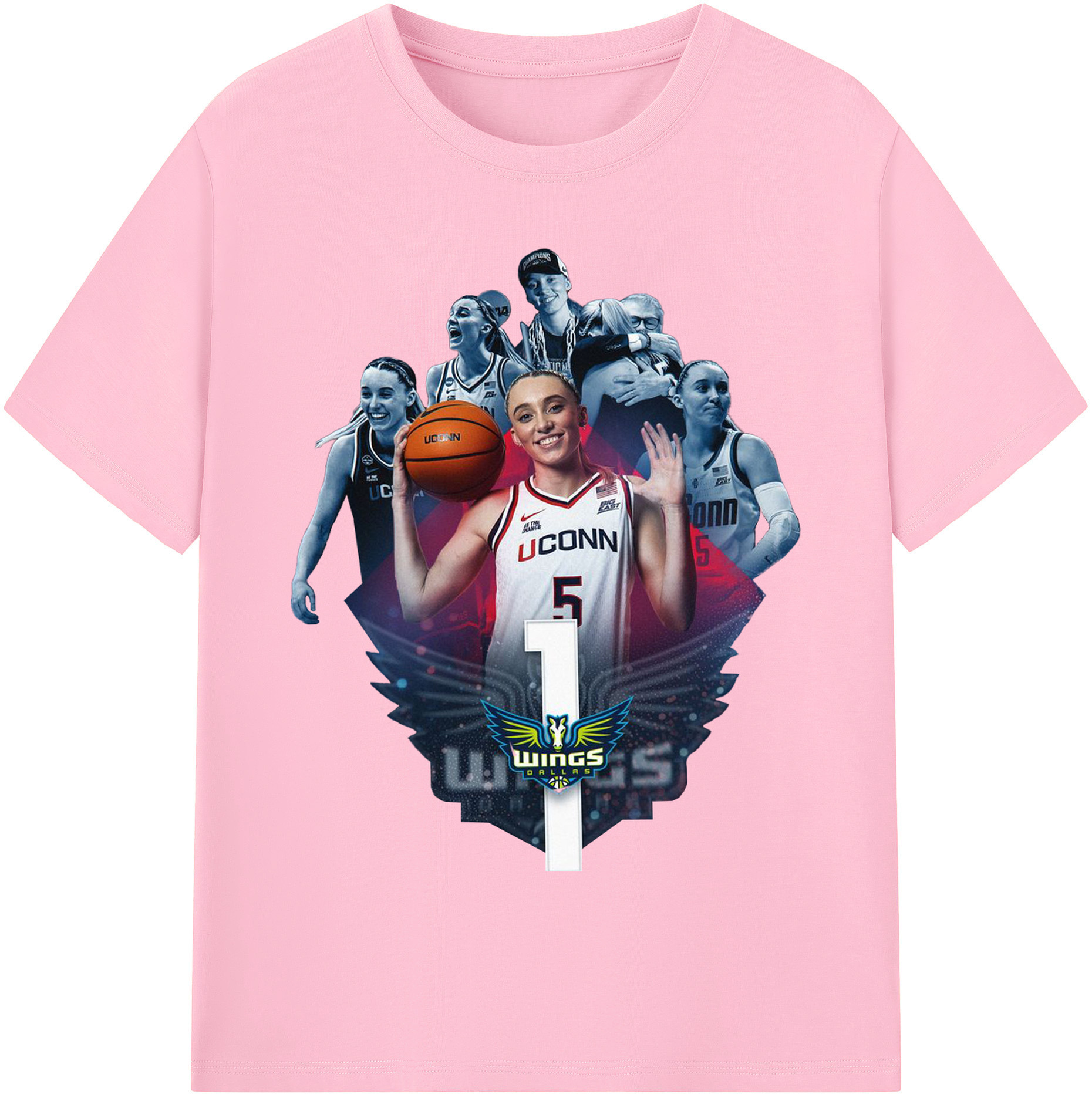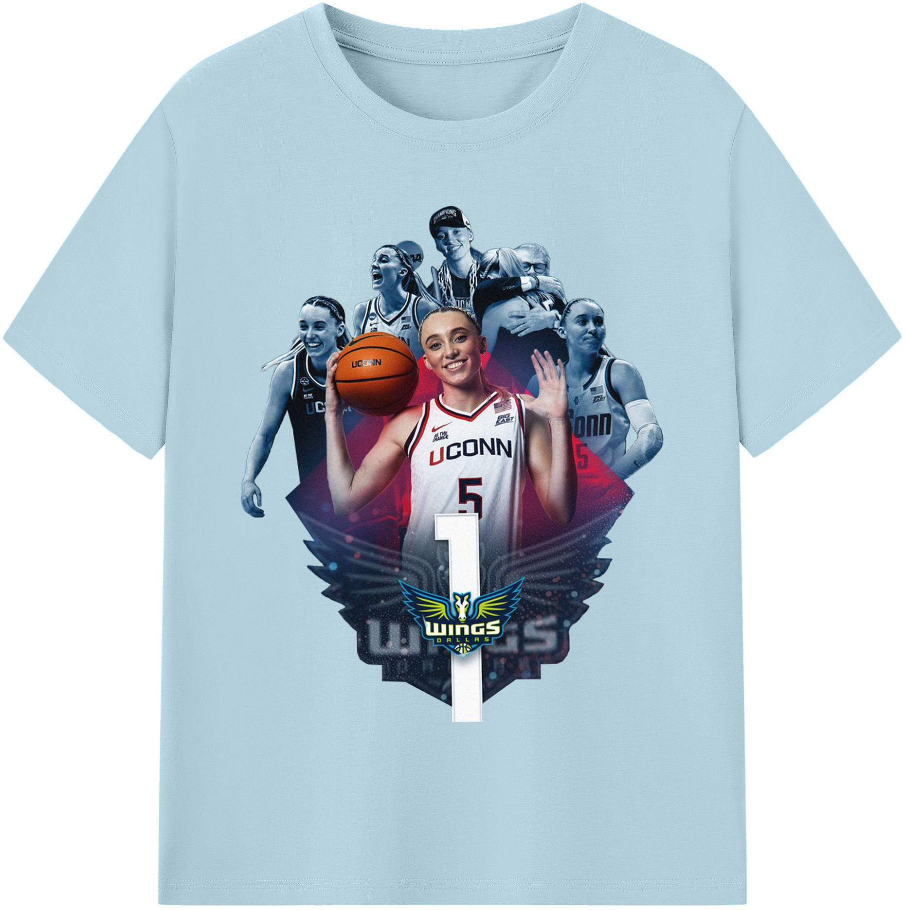 Paige Bueckers Dallas Wings #1 UConn NCAA Star Shirt - 180g Cotton T-Shirt With Front Heat Transfer Print – Soft, Lightweight, Fitted Design – Comfortable Casual Wear For Sports & Everyday Use