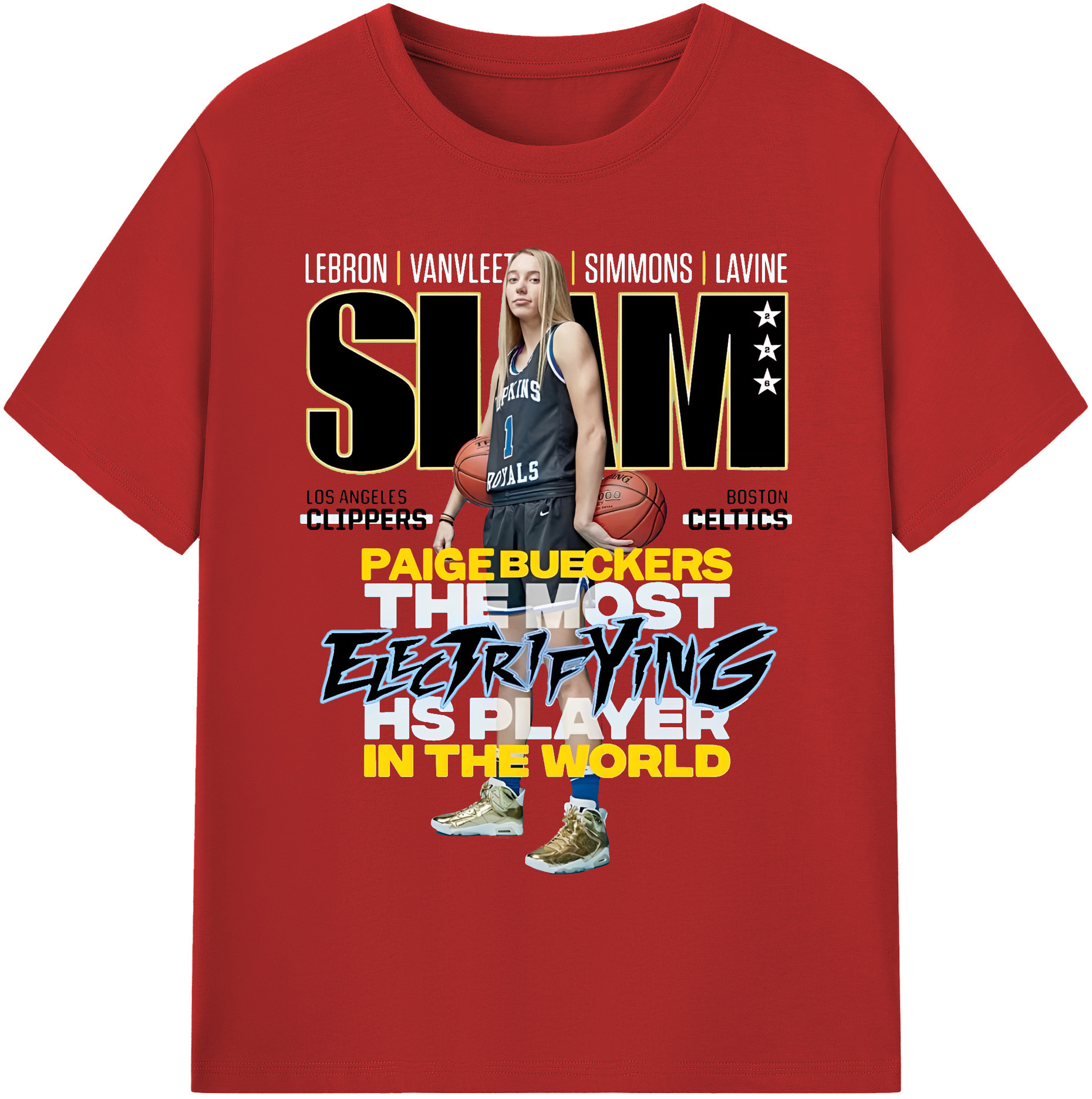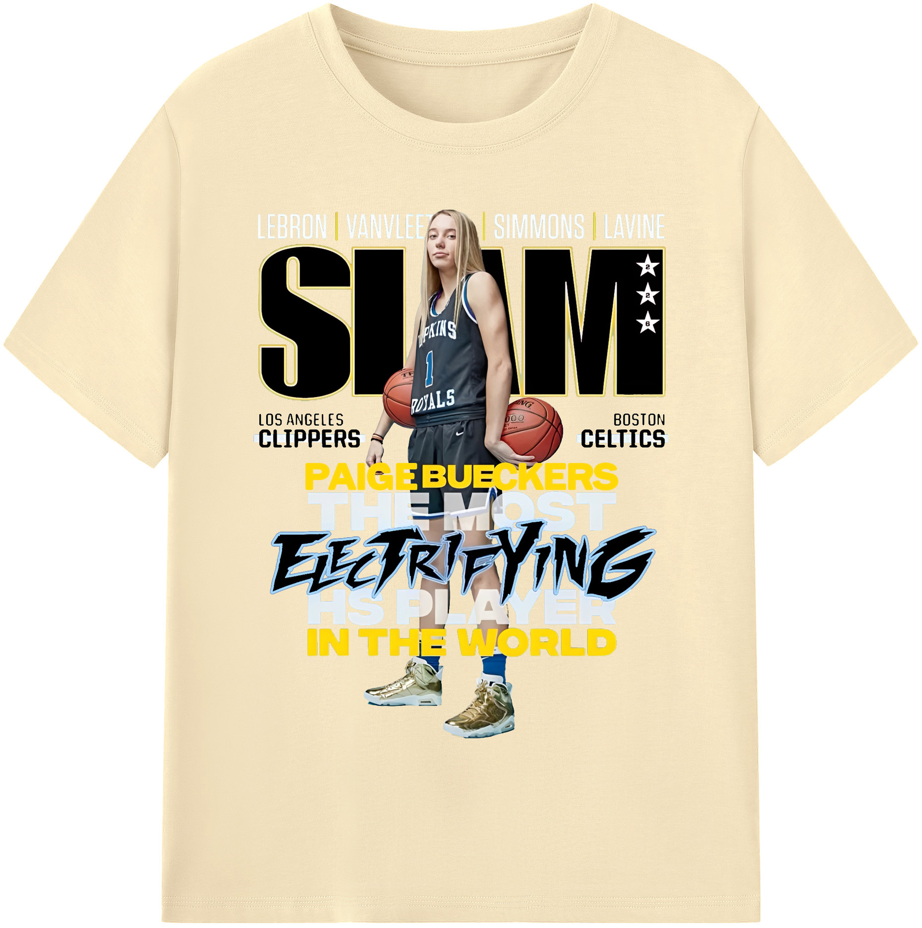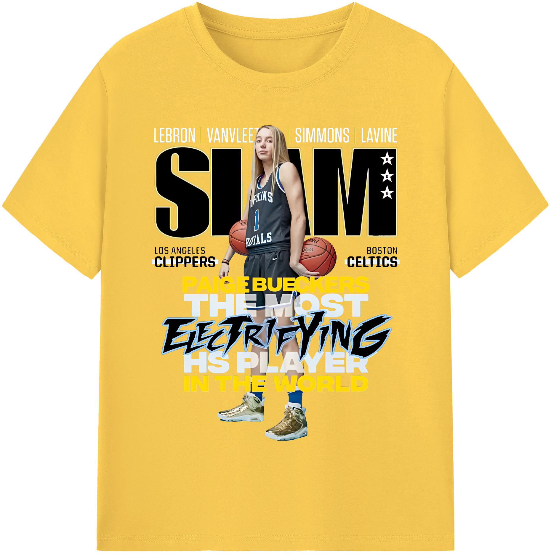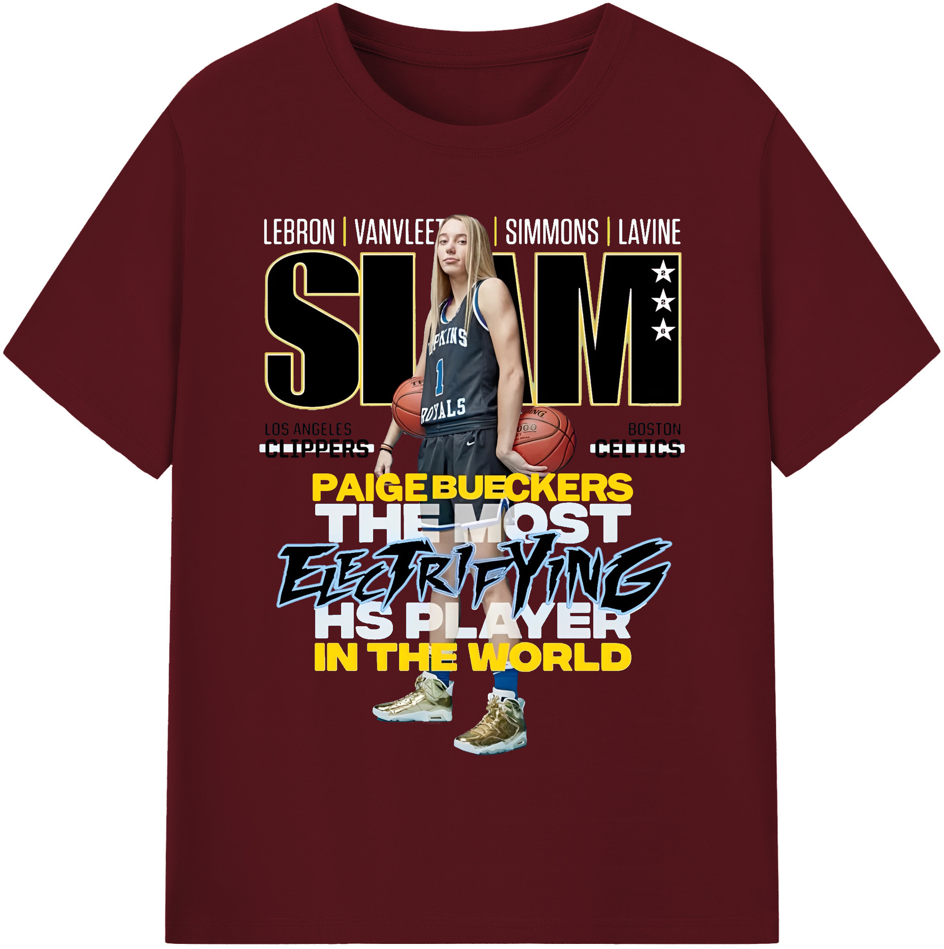 Paige Bueckers SLAM Magazine Cover - 180g Cotton T-Shirt With Front Heat Transfer Print – Soft, Lightweight, Fitted Design – Comfortable Casual Wear For Sports & Everyday Use