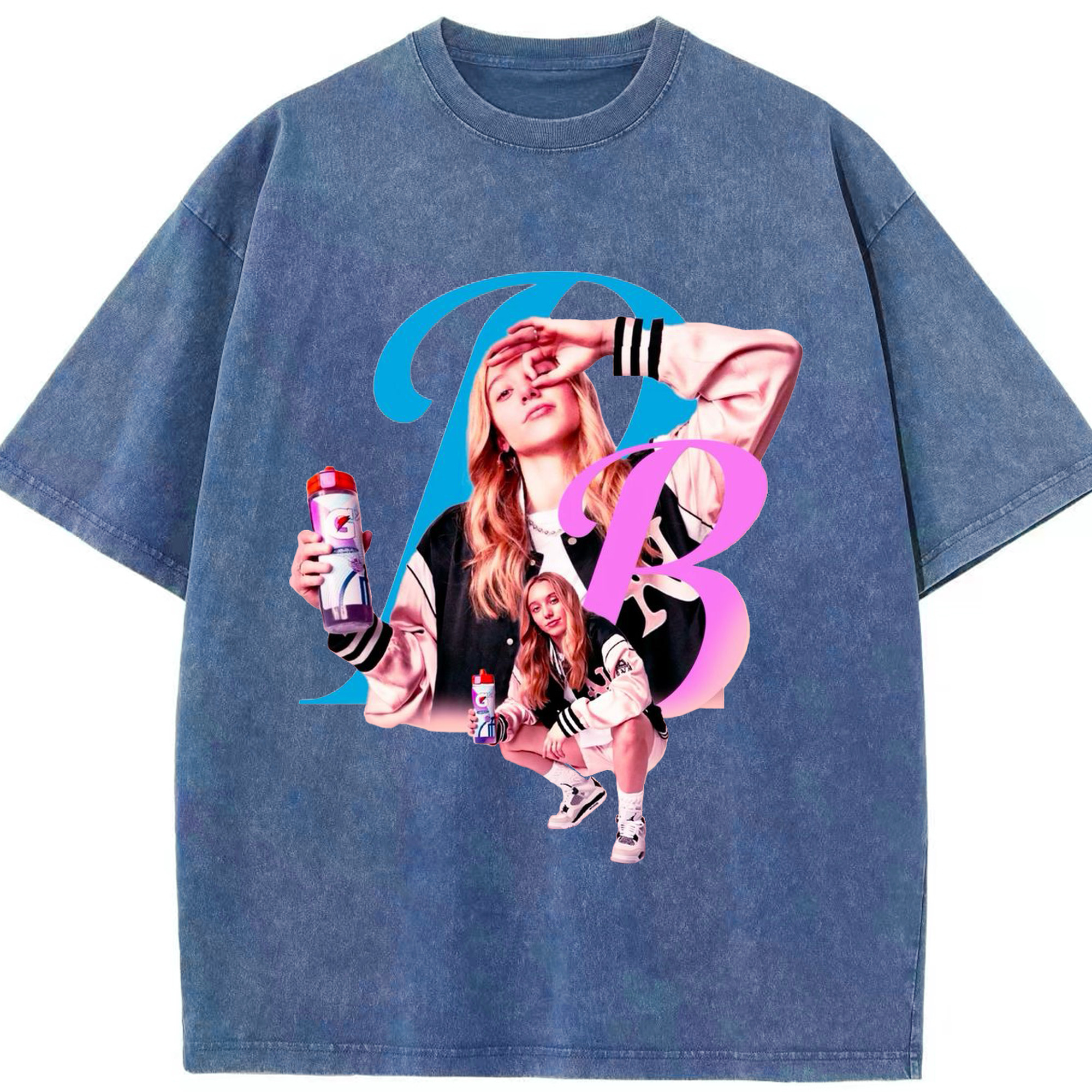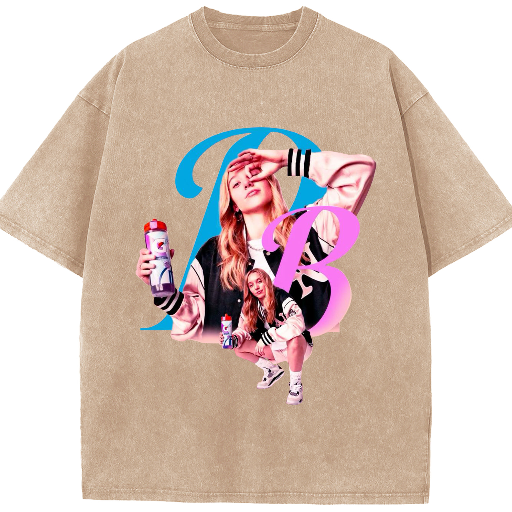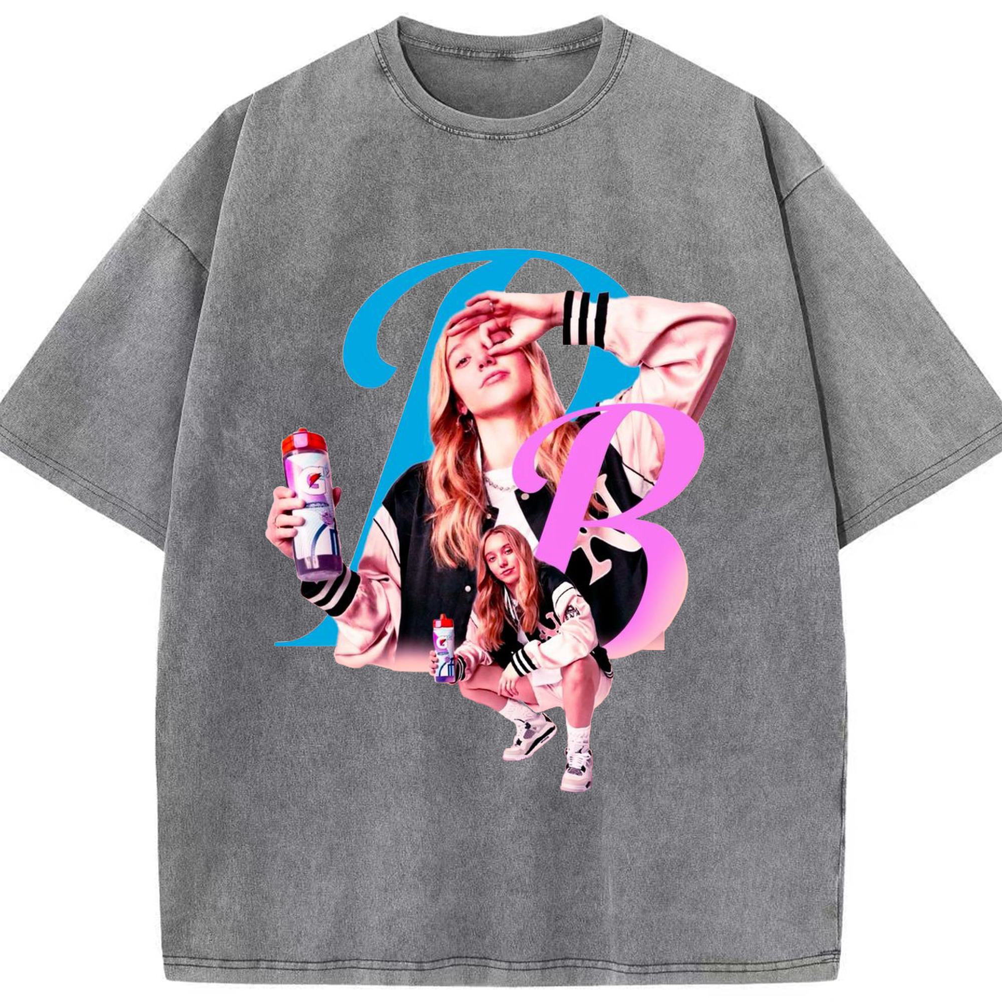 Paige Bueckers x Gatorade Graphic Tee - Washed Vintage Look 230g Cotton Oversized T-Shirt With Front Heat Transfer Print – Soft, Lightweight, Stylish Fit – Comfortable Casual Wear For Sports & Everyday Use
