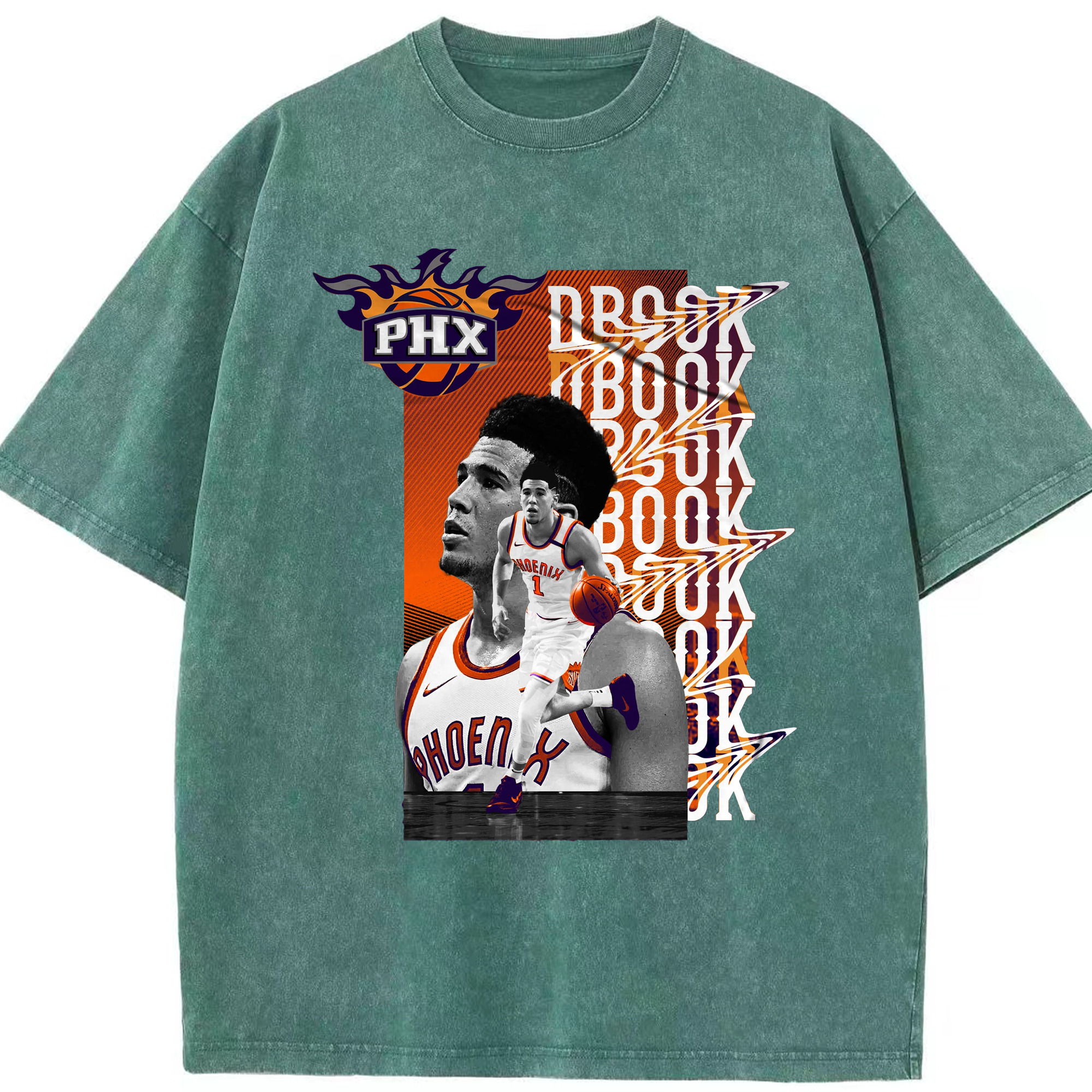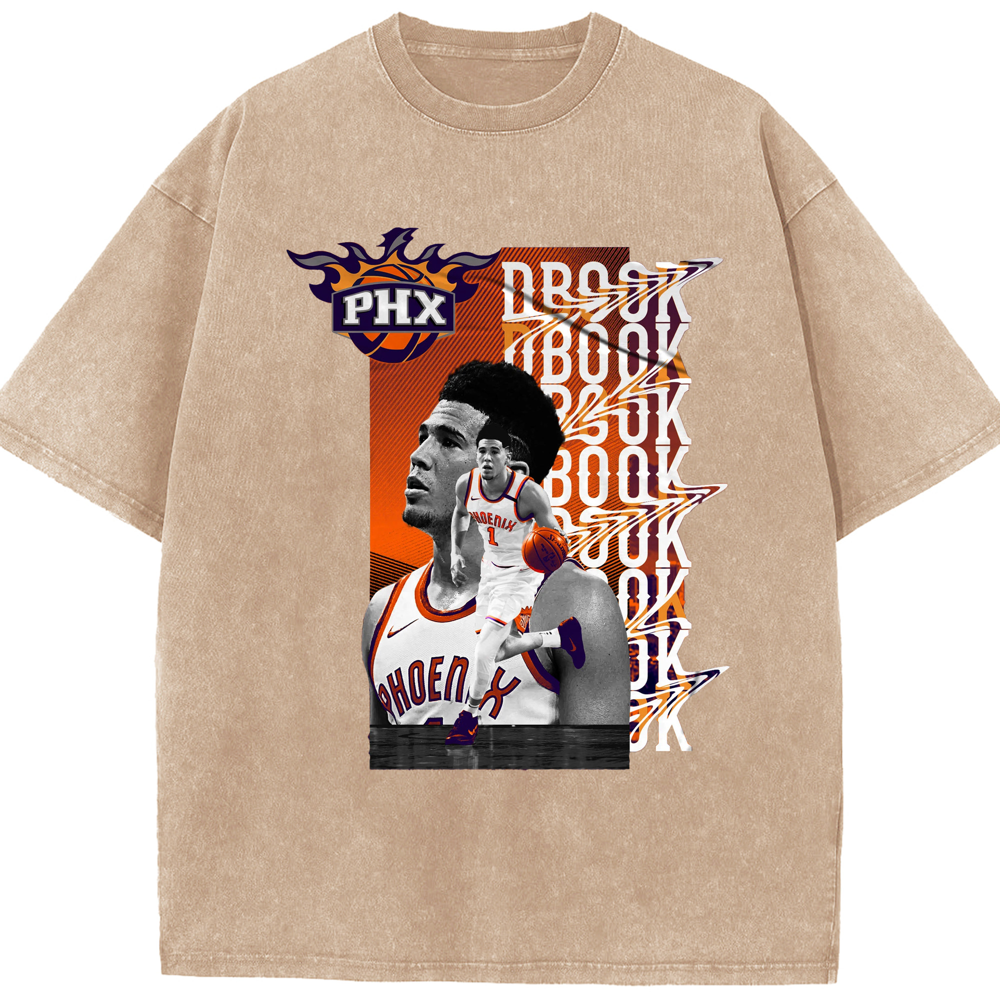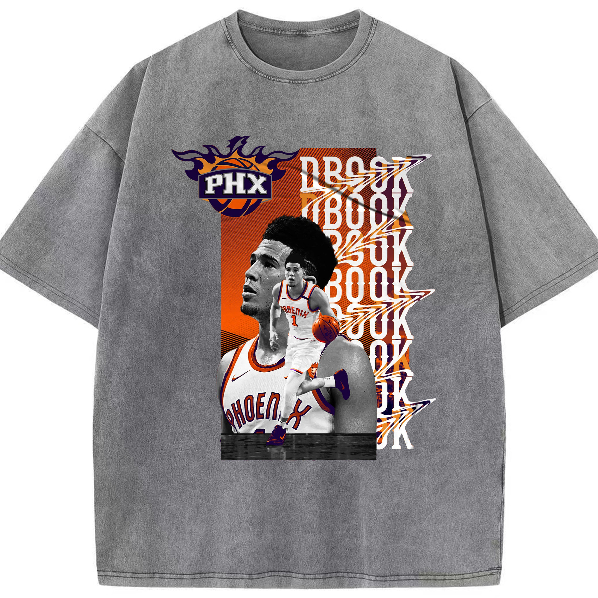 Phoenix Suns Devin Booker Retro Collage Basketball Shirt - Washed Vintage Look 230g Cotton Oversized T-Shirt With Front Heat Transfer Print – Soft, Lightweight, Stylish Fit – Comfortable Casual Wear For Sports & Everyday Use