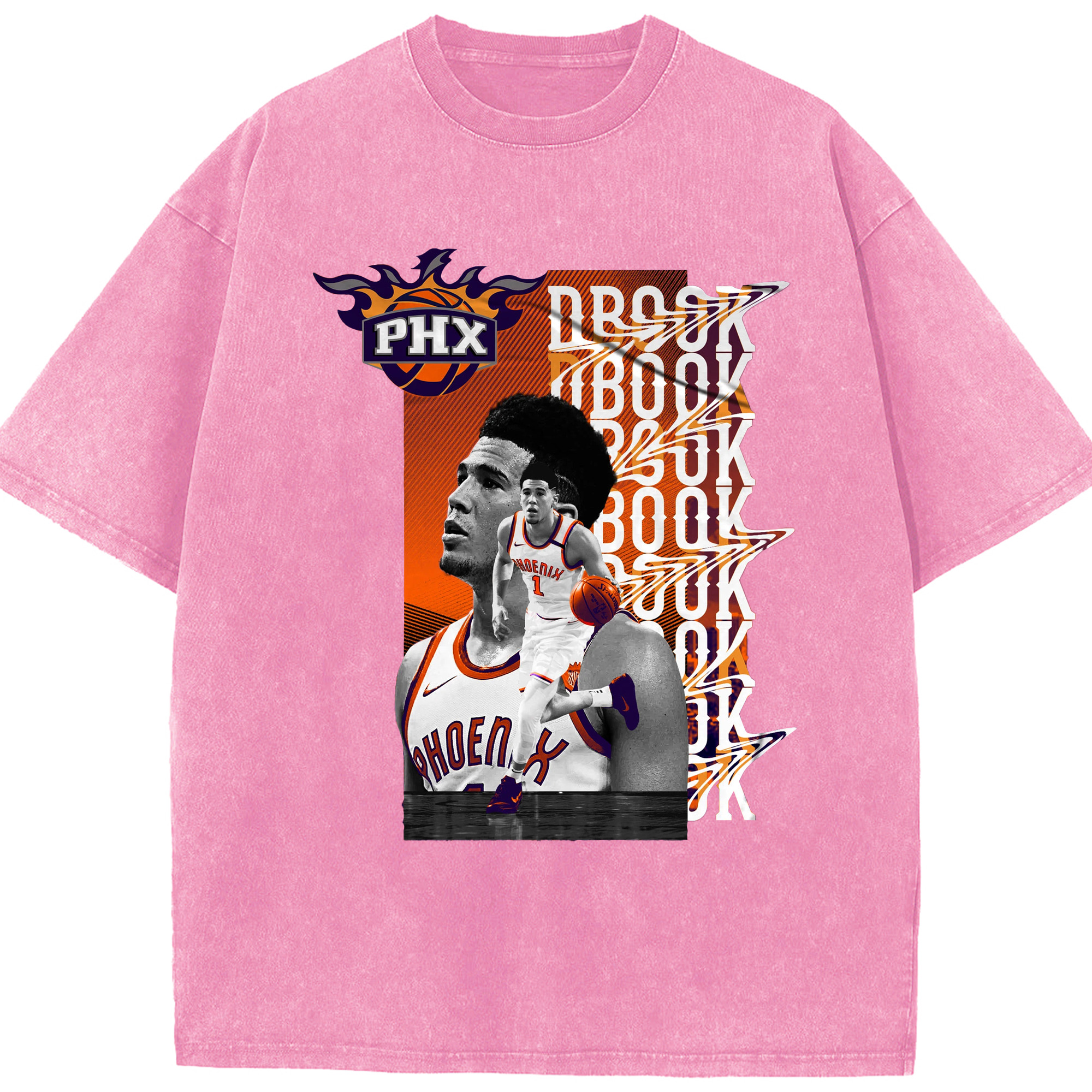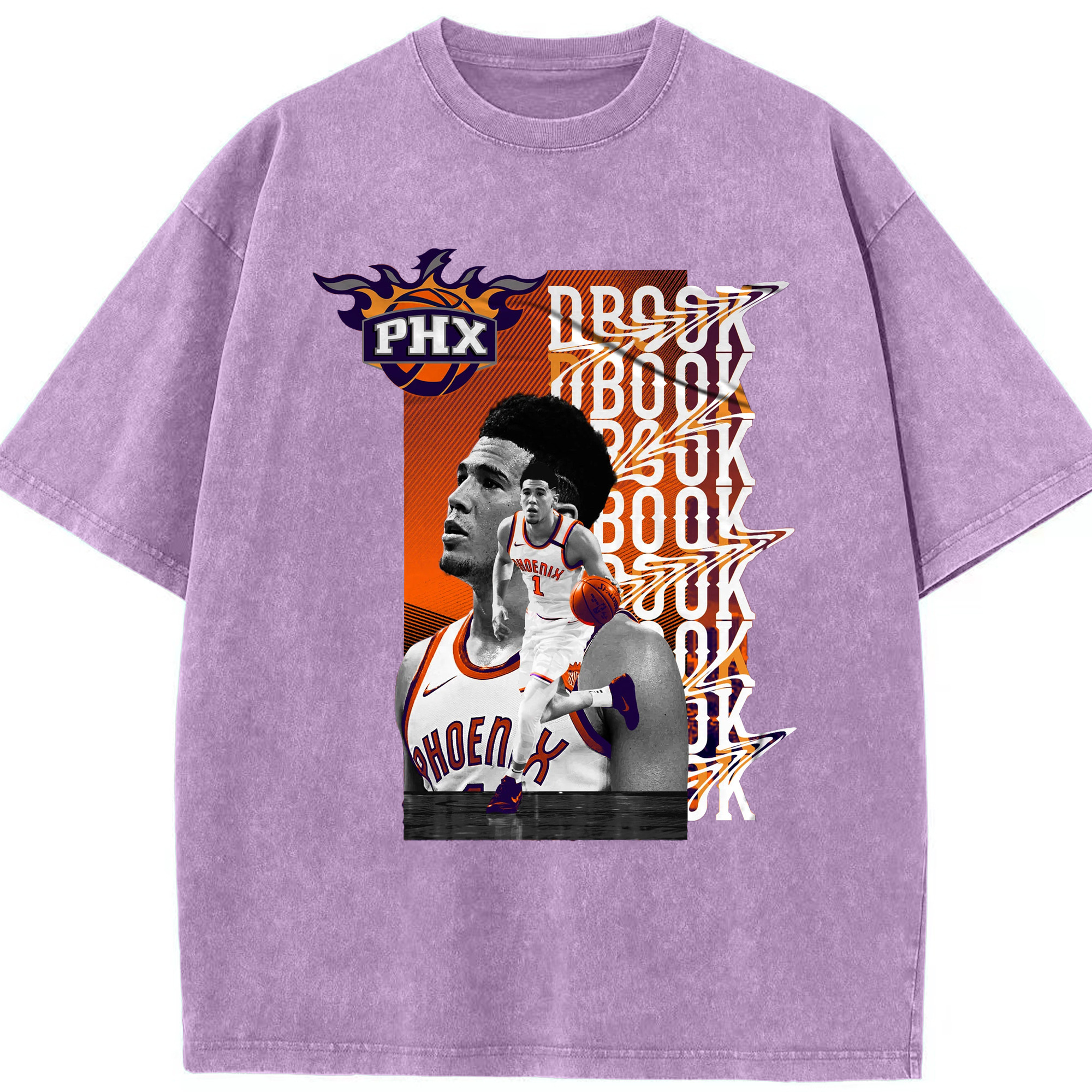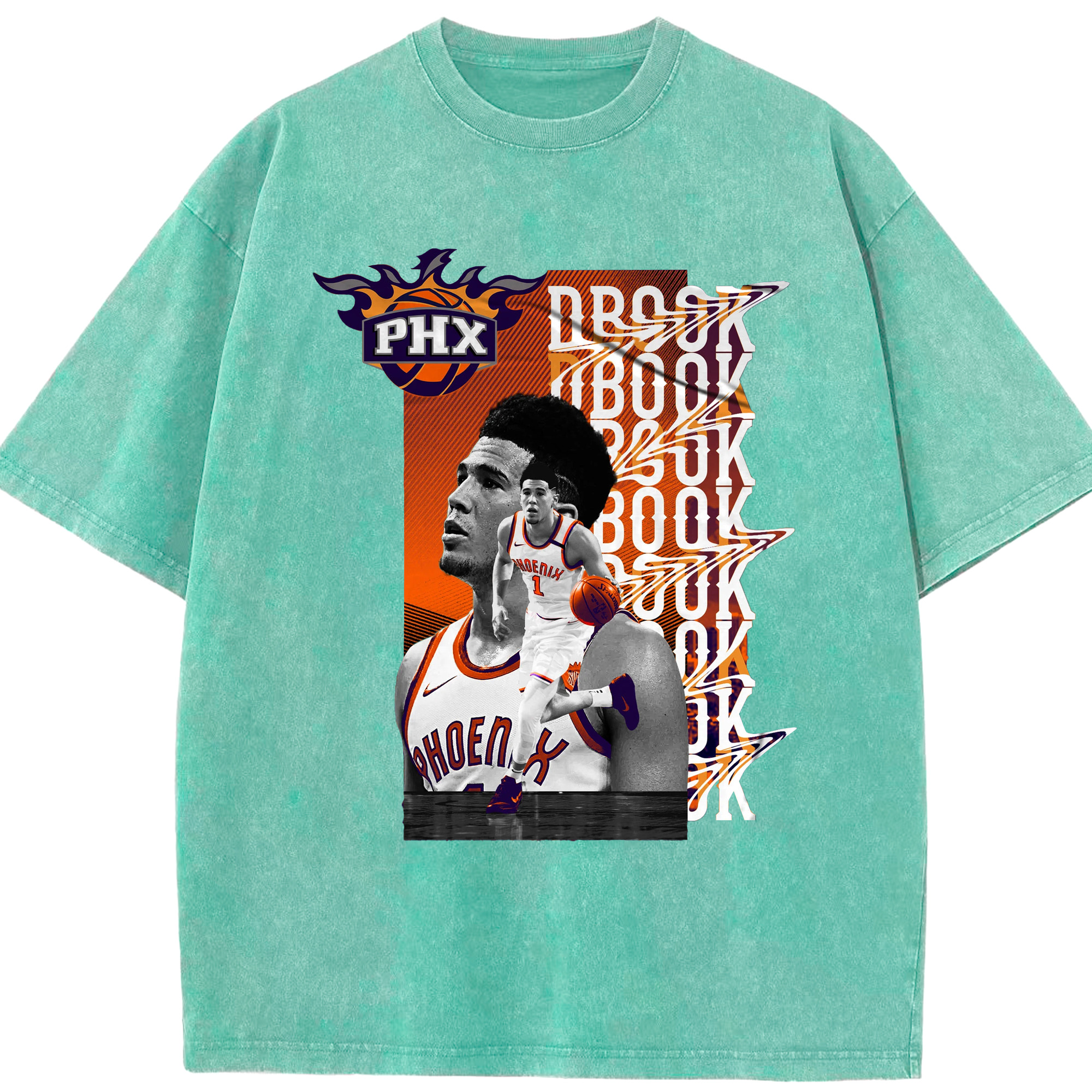 Phoenix Suns Devin Booker Retro Collage Basketball Shirt - Washed Vintage Look 230g Cotton Oversized T-Shirt With Front Heat Transfer Print – Soft, Lightweight, Stylish Fit – Comfortable Casual Wear For Sports & Everyday Use