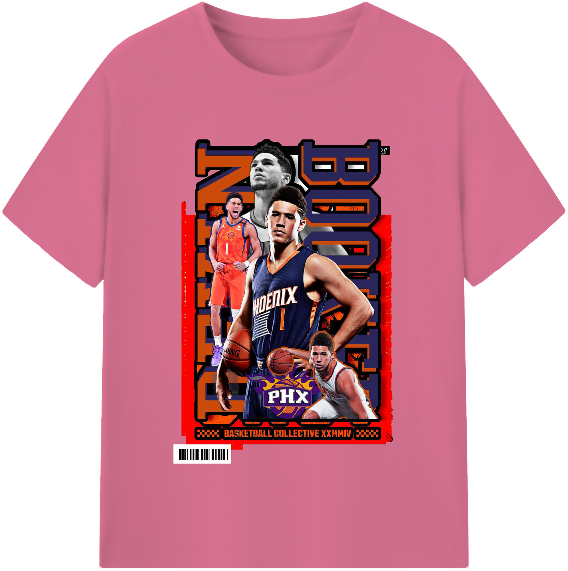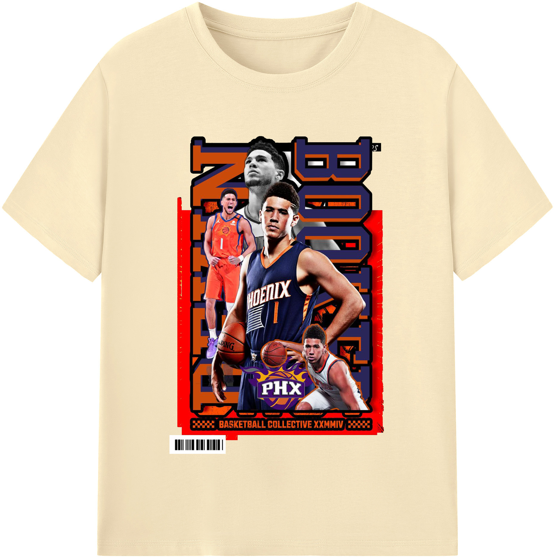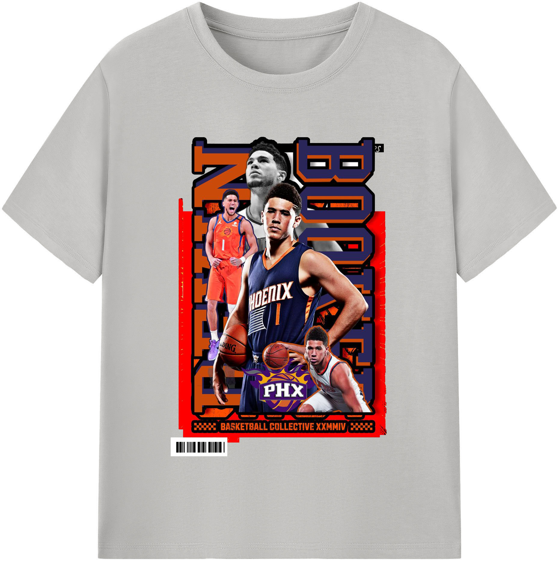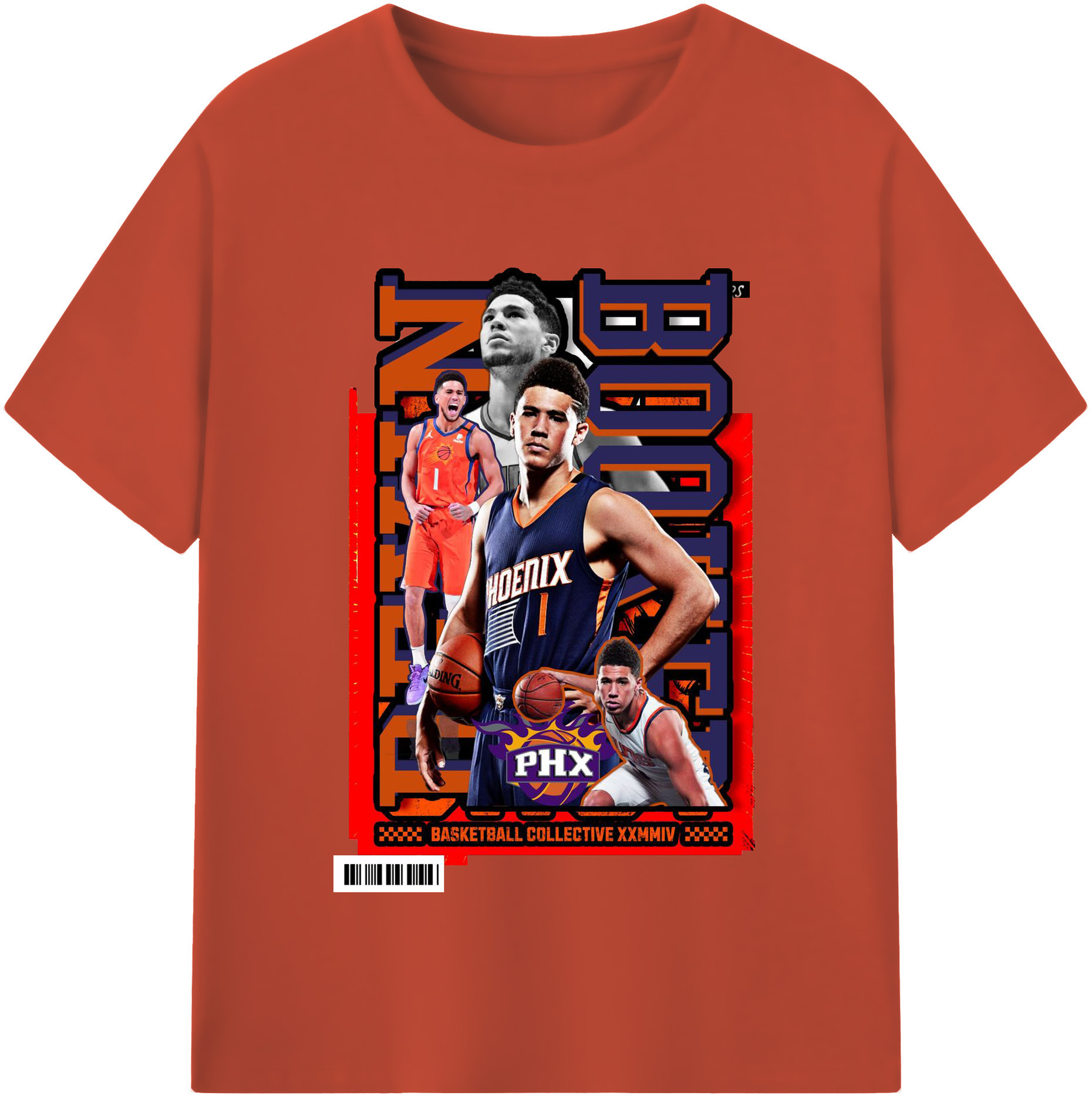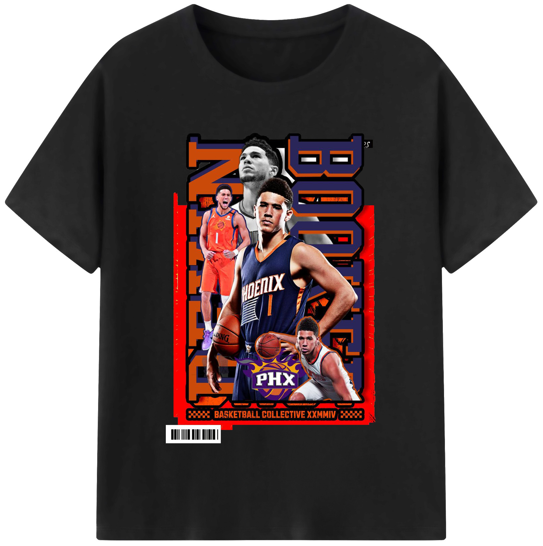 Retro PHX Devin Booker Basketball Card Shirt - 180g Cotton T-Shirt With Front Heat Transfer Print – Soft, Lightweight, Fitted Design – Comfortable Casual Wear For Sports & Everyday Use