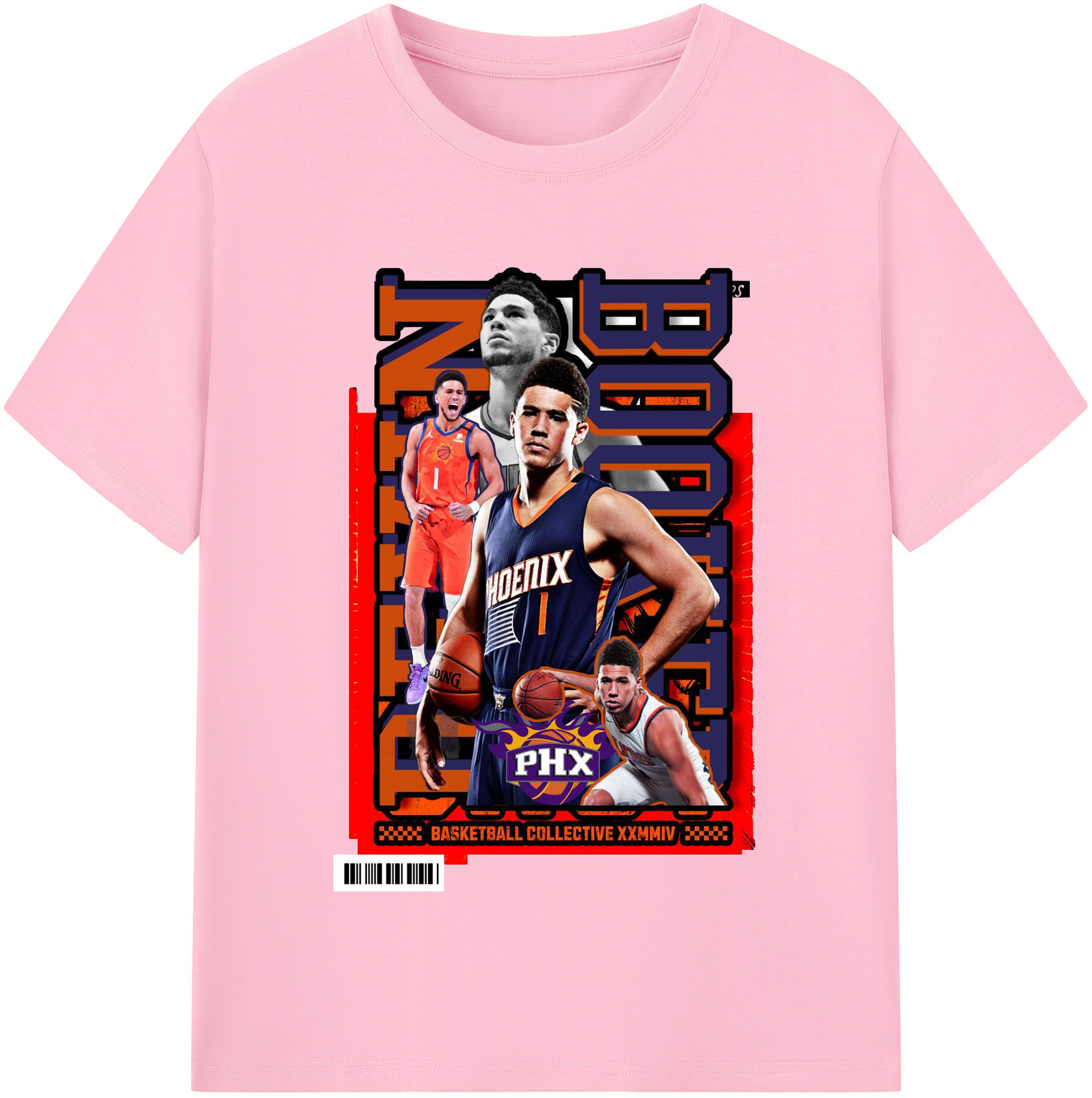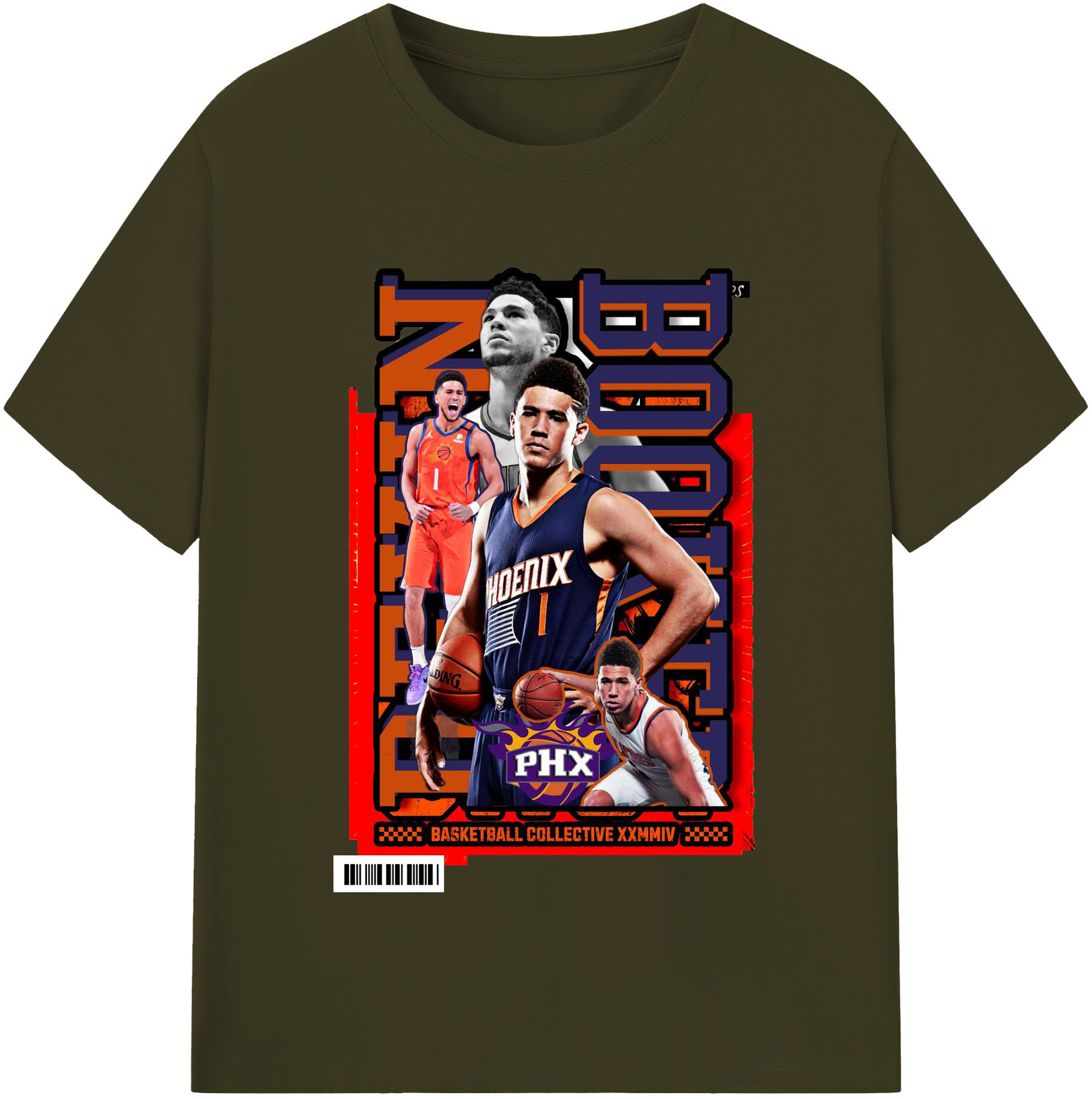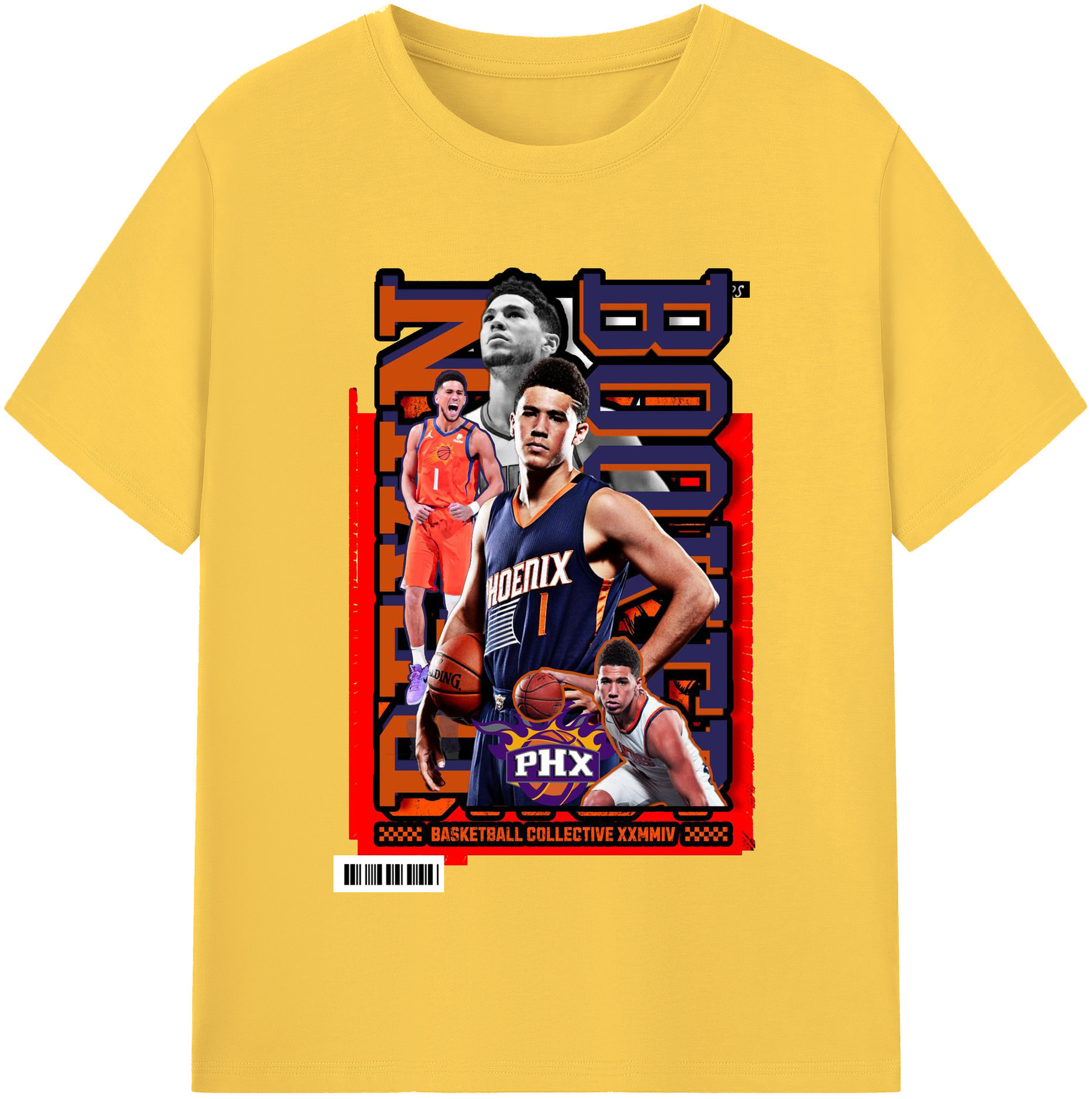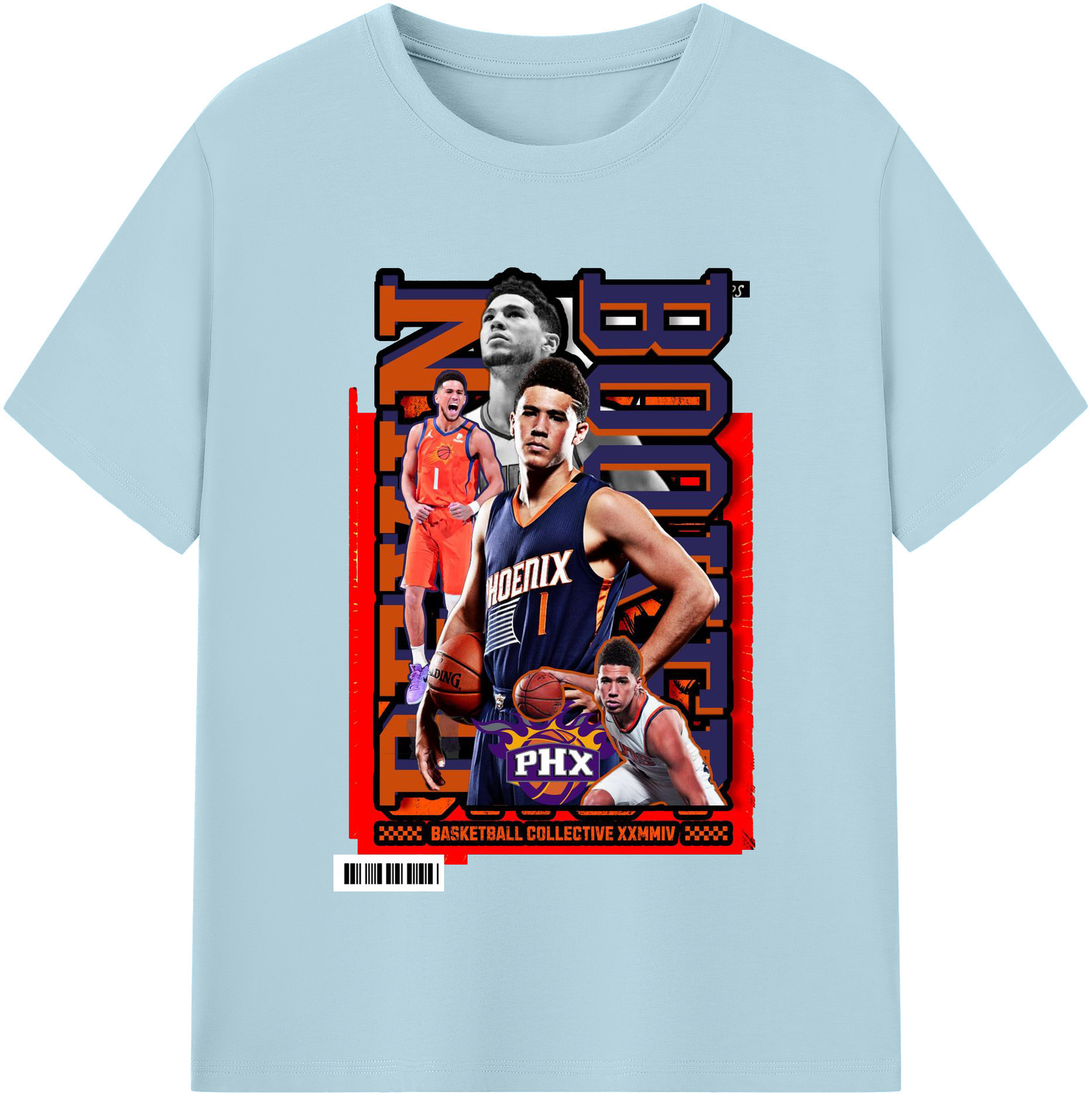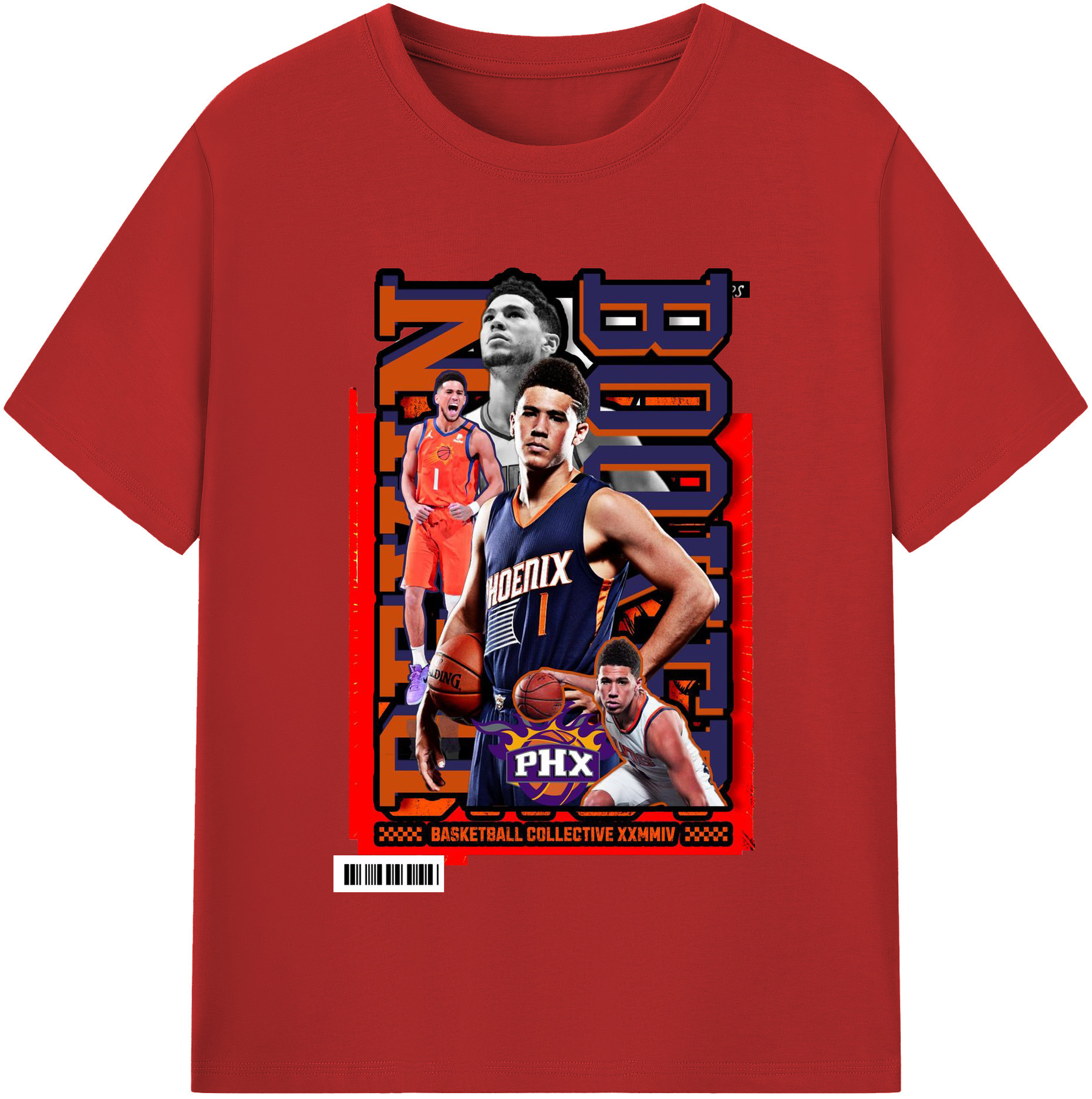 Retro PHX Devin Booker Basketball Card Shirt - 180g Cotton T-Shirt With Front Heat Transfer Print – Soft, Lightweight, Fitted Design – Comfortable Casual Wear For Sports & Everyday Use