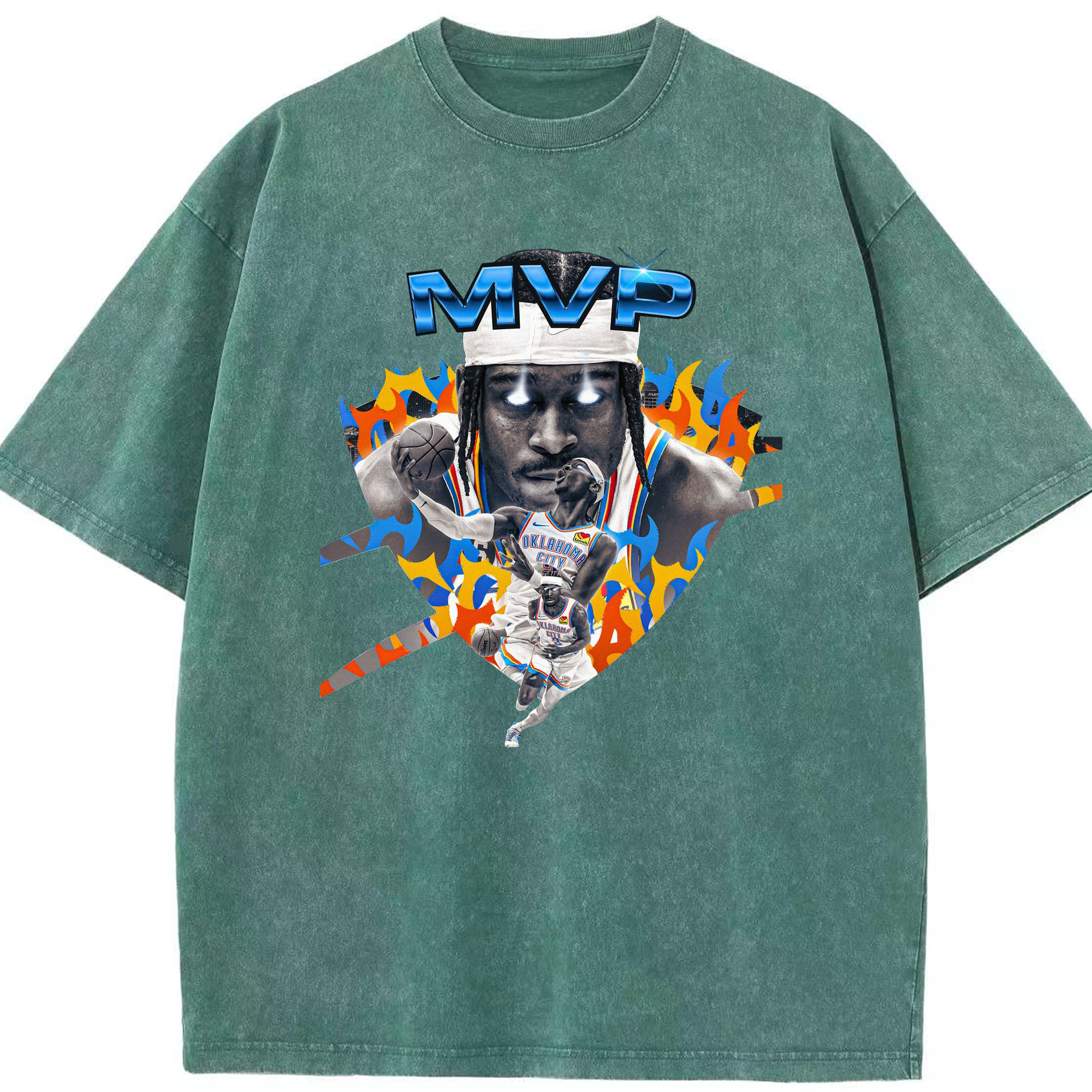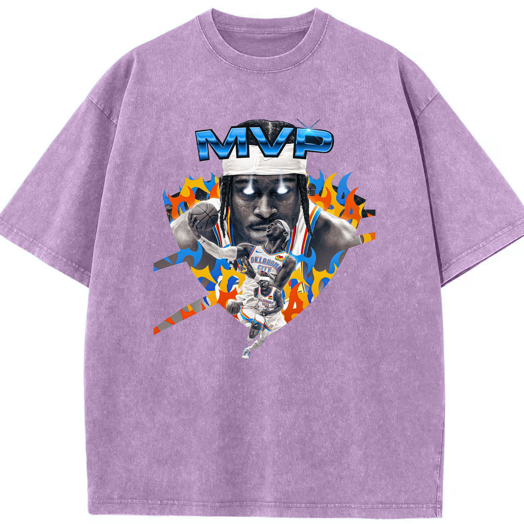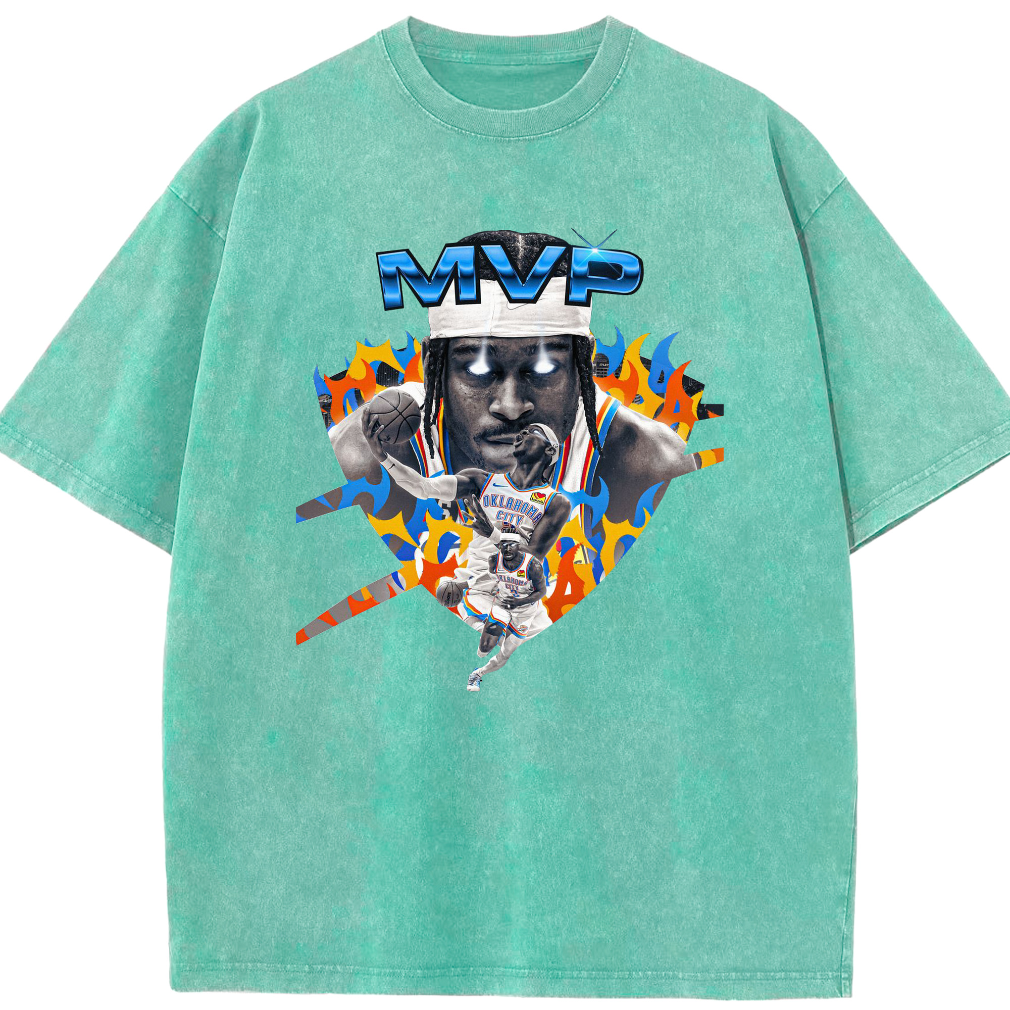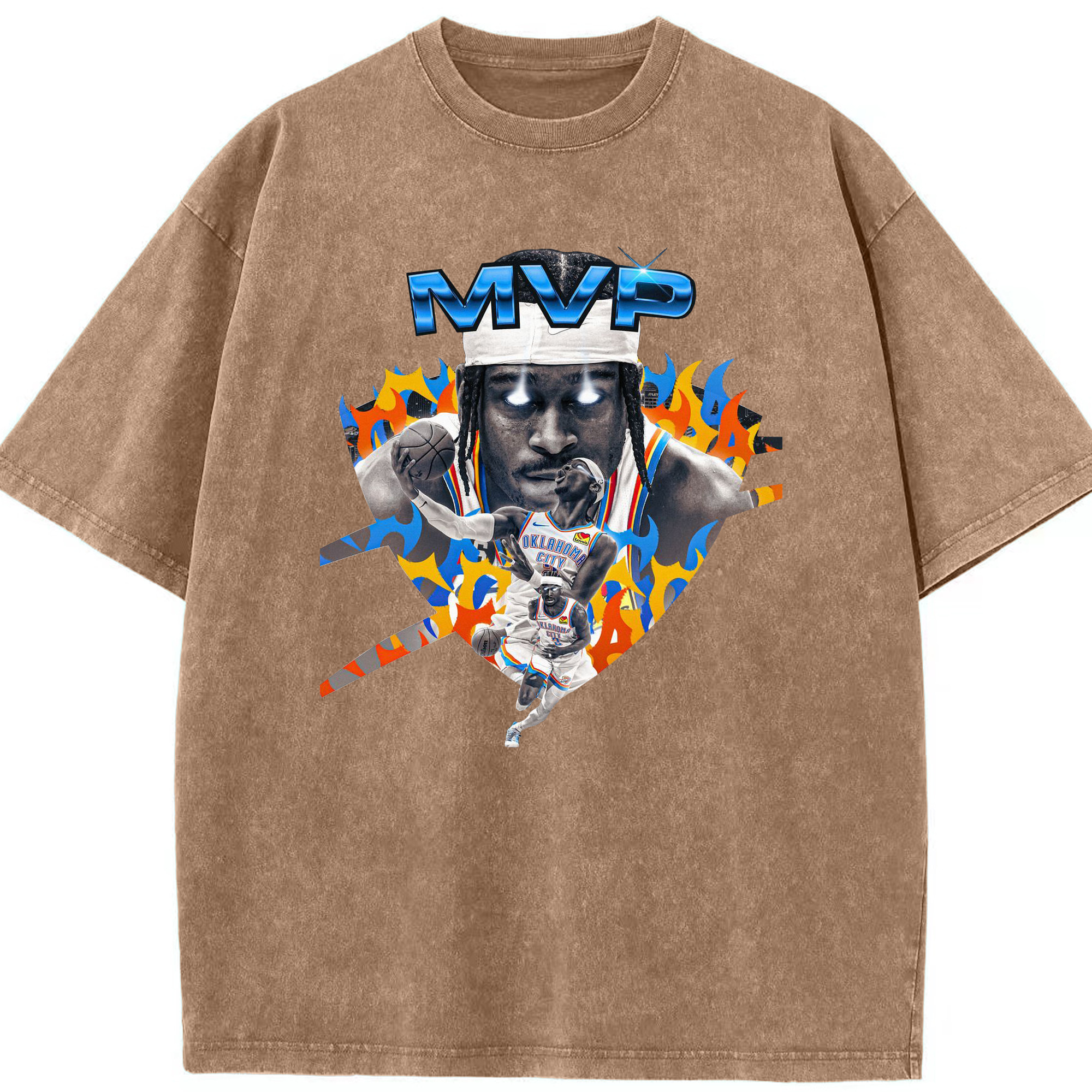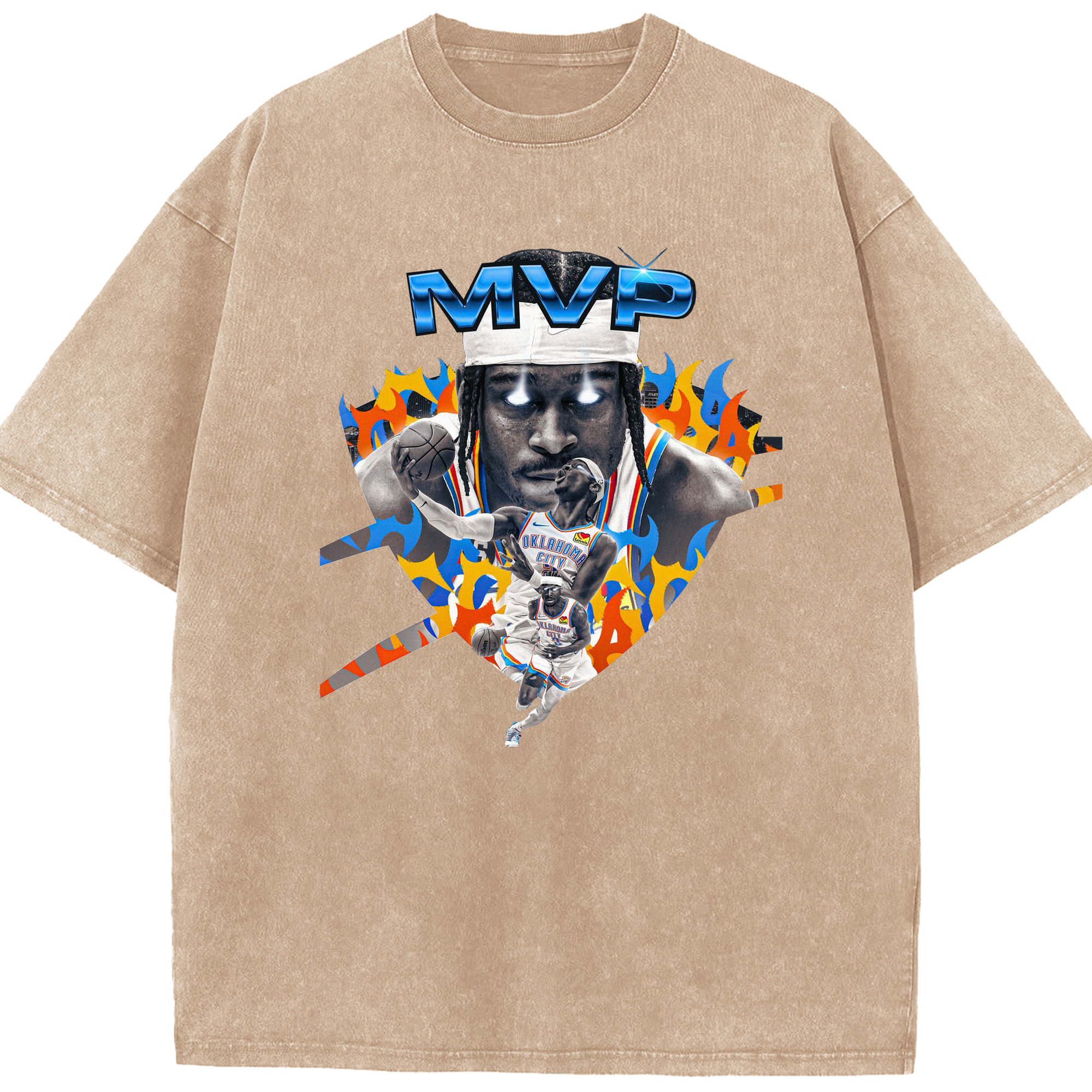 SGA MVP Electric Flame Graphic Shirt - Washed Vintage Look 230g Cotton Oversized T-Shirt With Front Heat Transfer Print – Soft, Lightweight, Stylish Fit – Comfortable Casual Wear For Sports & Everyday Use