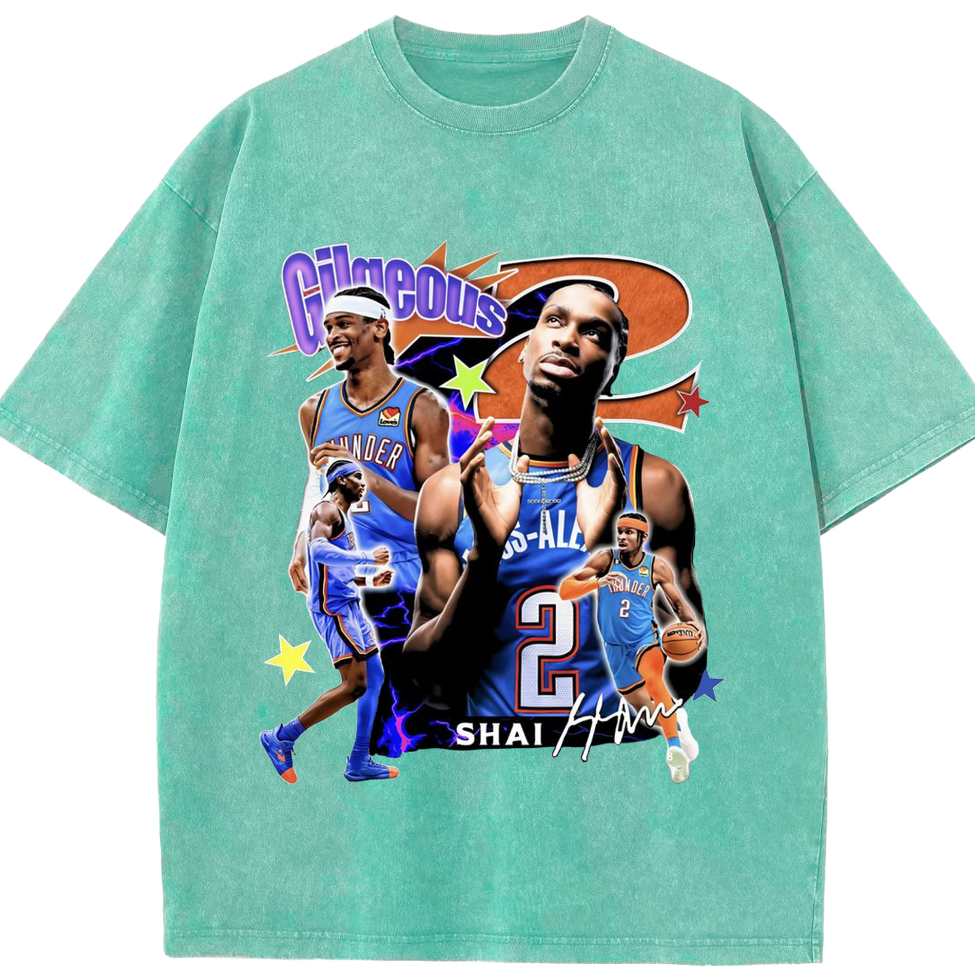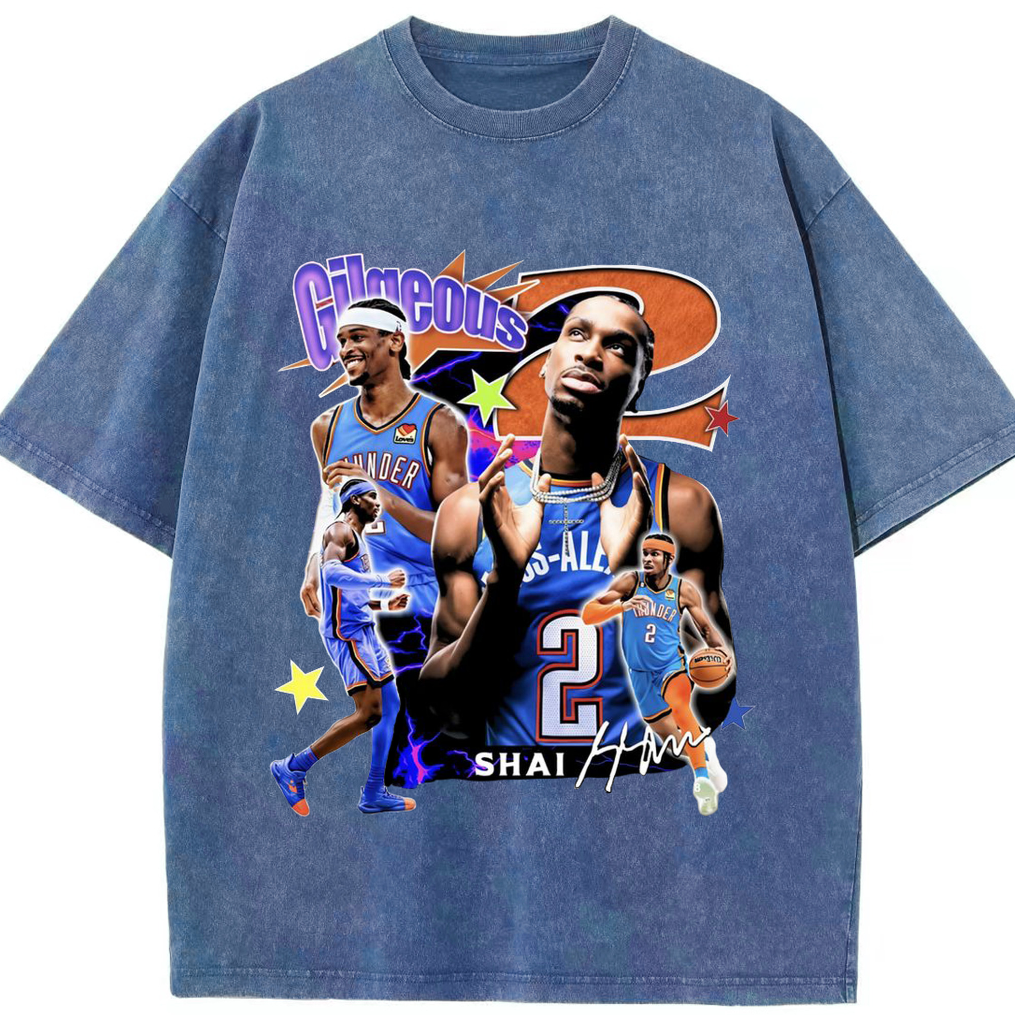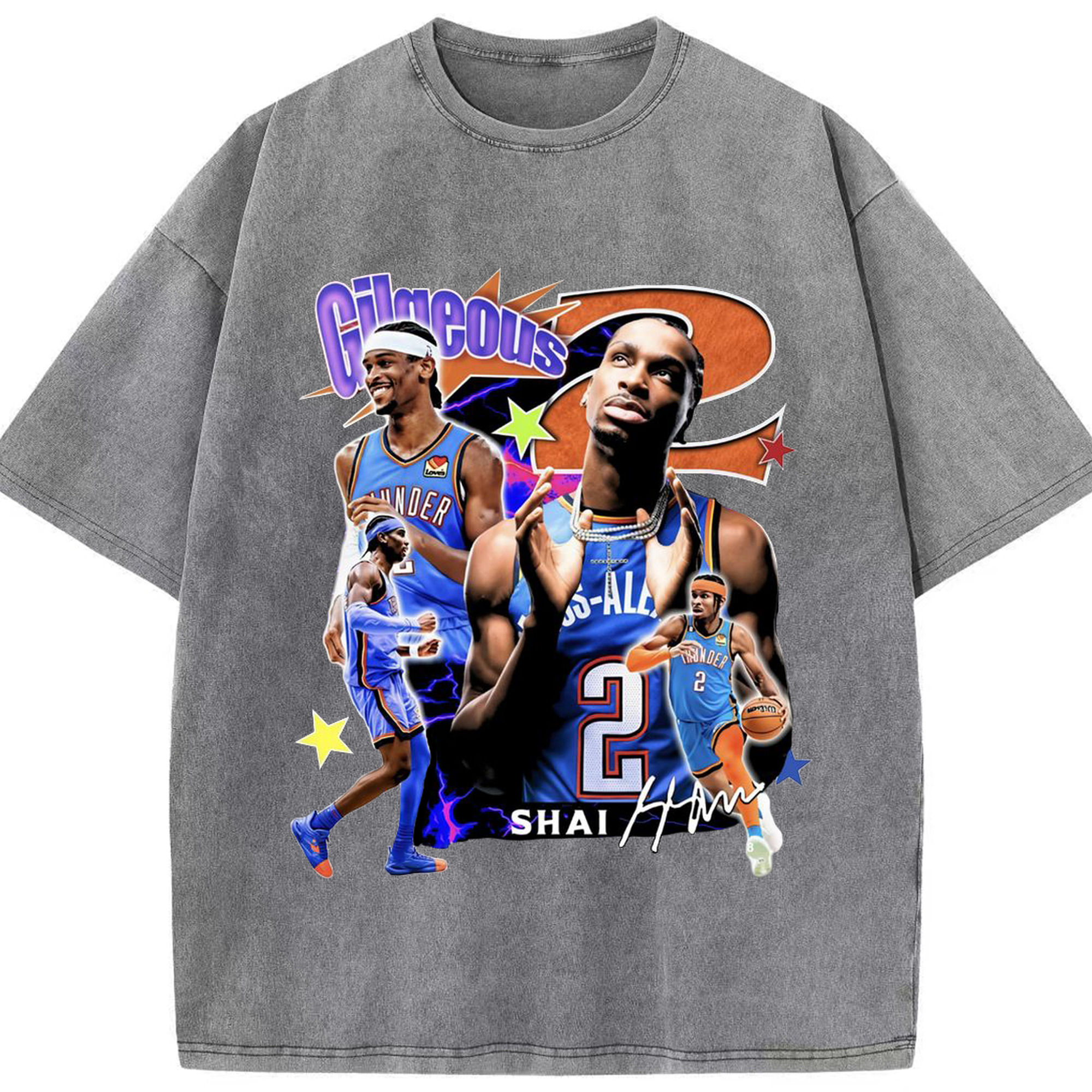 SGA Thunder #2 Player Streetstyle Shirt - Washed Vintage Look 230g Cotton Oversized T-Shirt With Front Heat Transfer Print – Soft, Lightweight, Stylish Fit – Comfortable Casual Wear For Sports & Everyday Use