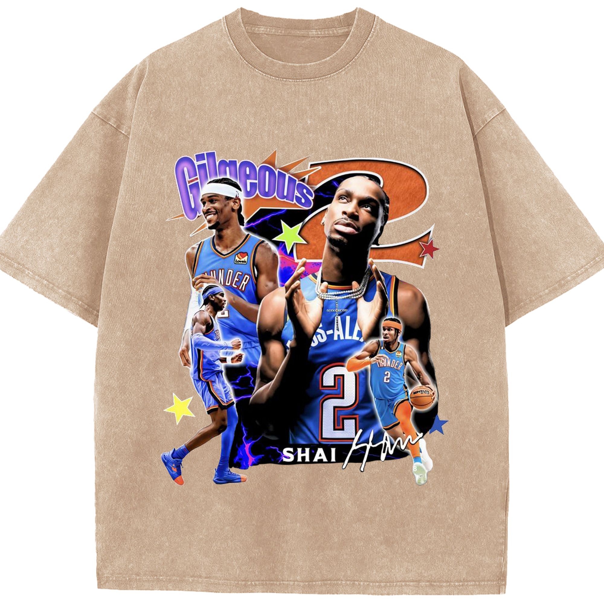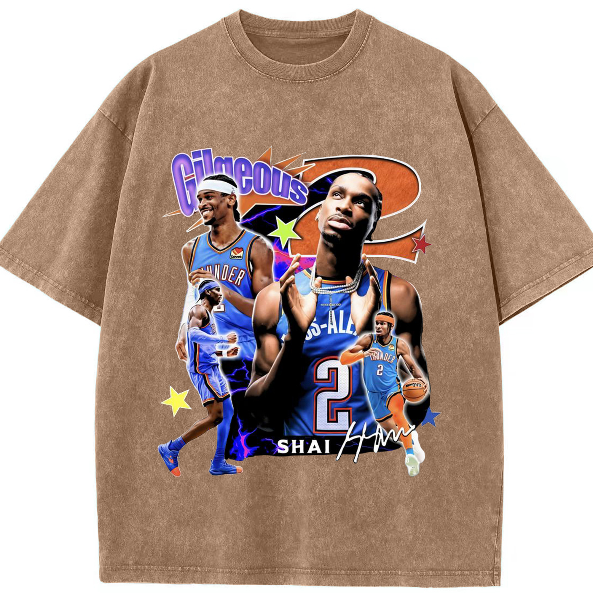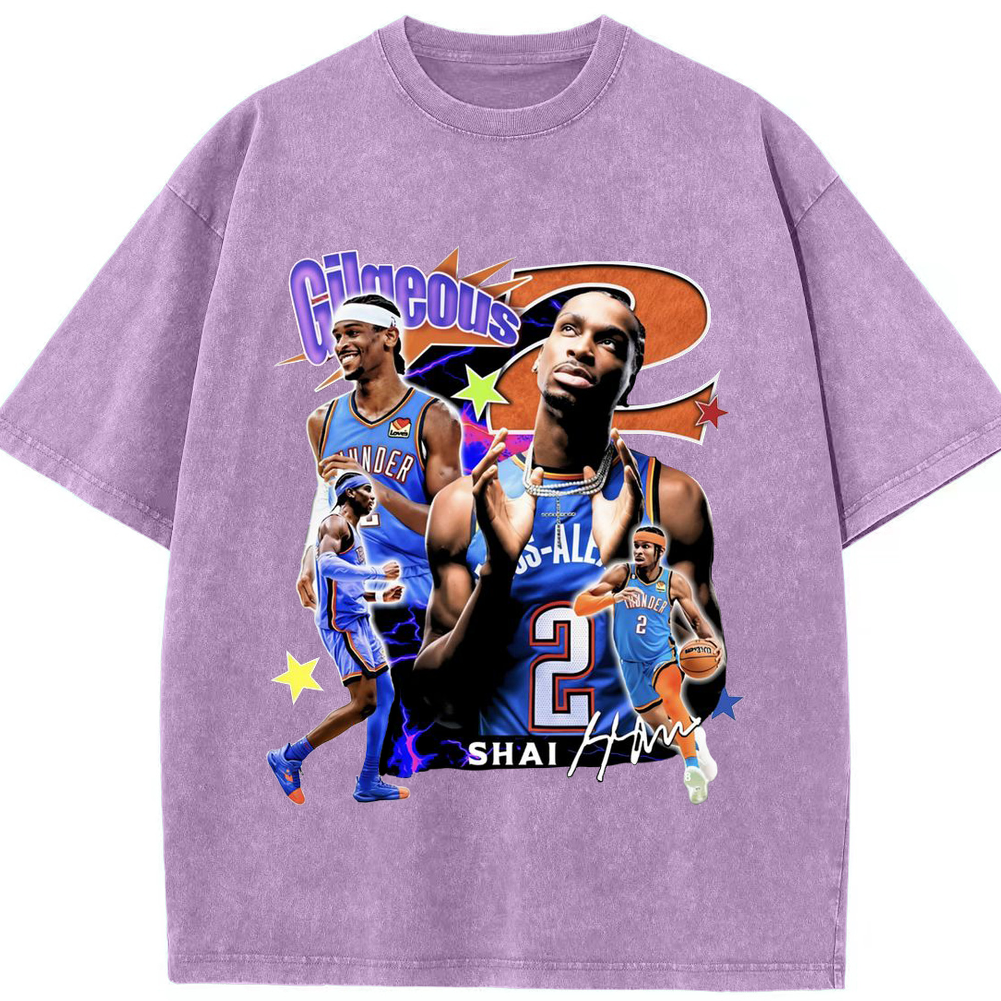 SGA Thunder #2 Player Streetstyle Shirt - Washed Vintage Look 230g Cotton Oversized T-Shirt With Front Heat Transfer Print – Soft, Lightweight, Stylish Fit – Comfortable Casual Wear For Sports & Everyday Use