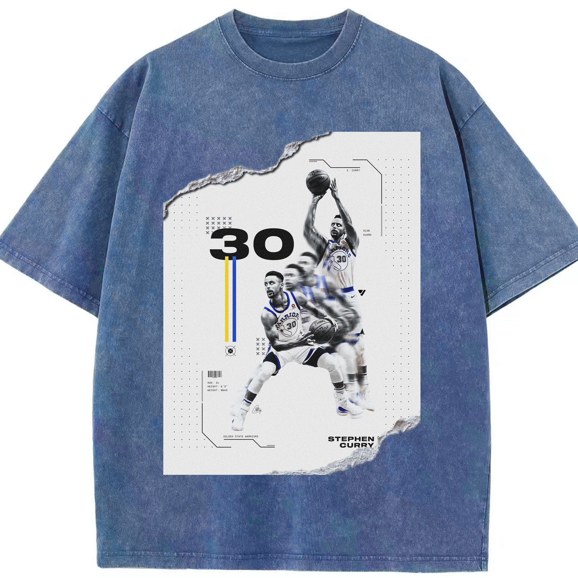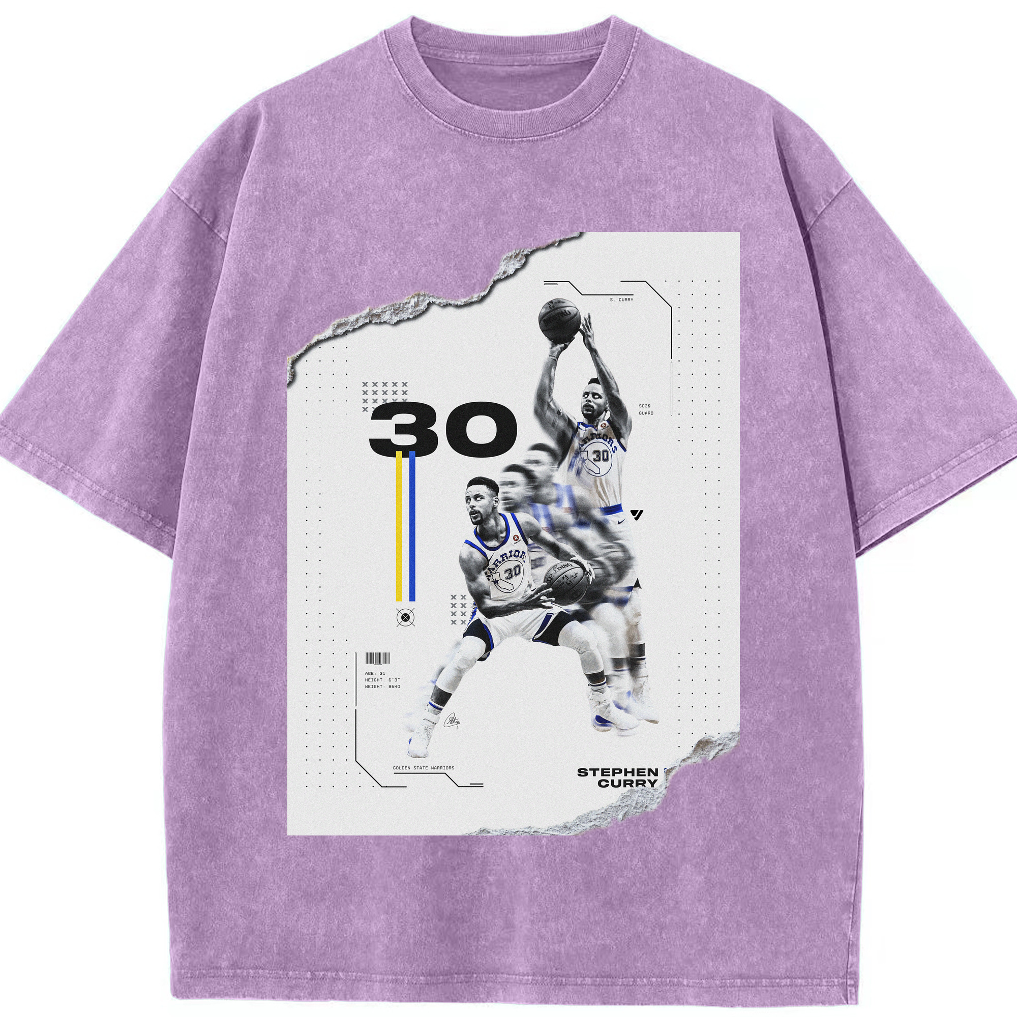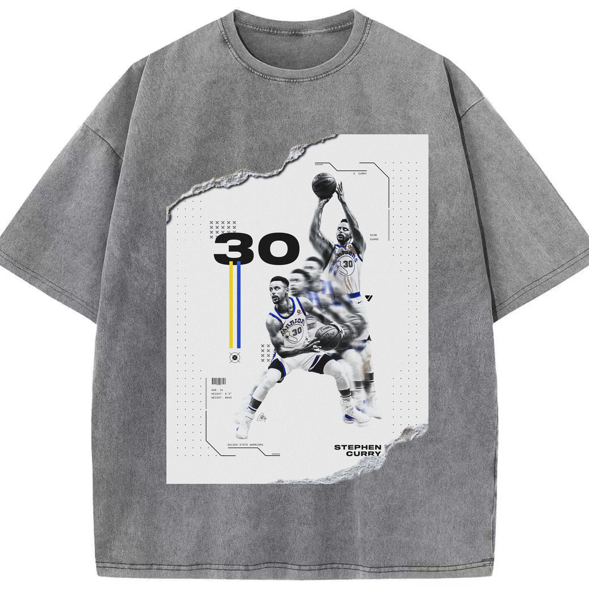 Stephen Curry #30 Shred Art Shirt - Washed Vintage Look 230g Cotton Oversized T-Shirt With Front Heat Transfer Print – Soft, Lightweight, Stylish Fit – Comfortable Casual Wear For Sports & Everyday Use