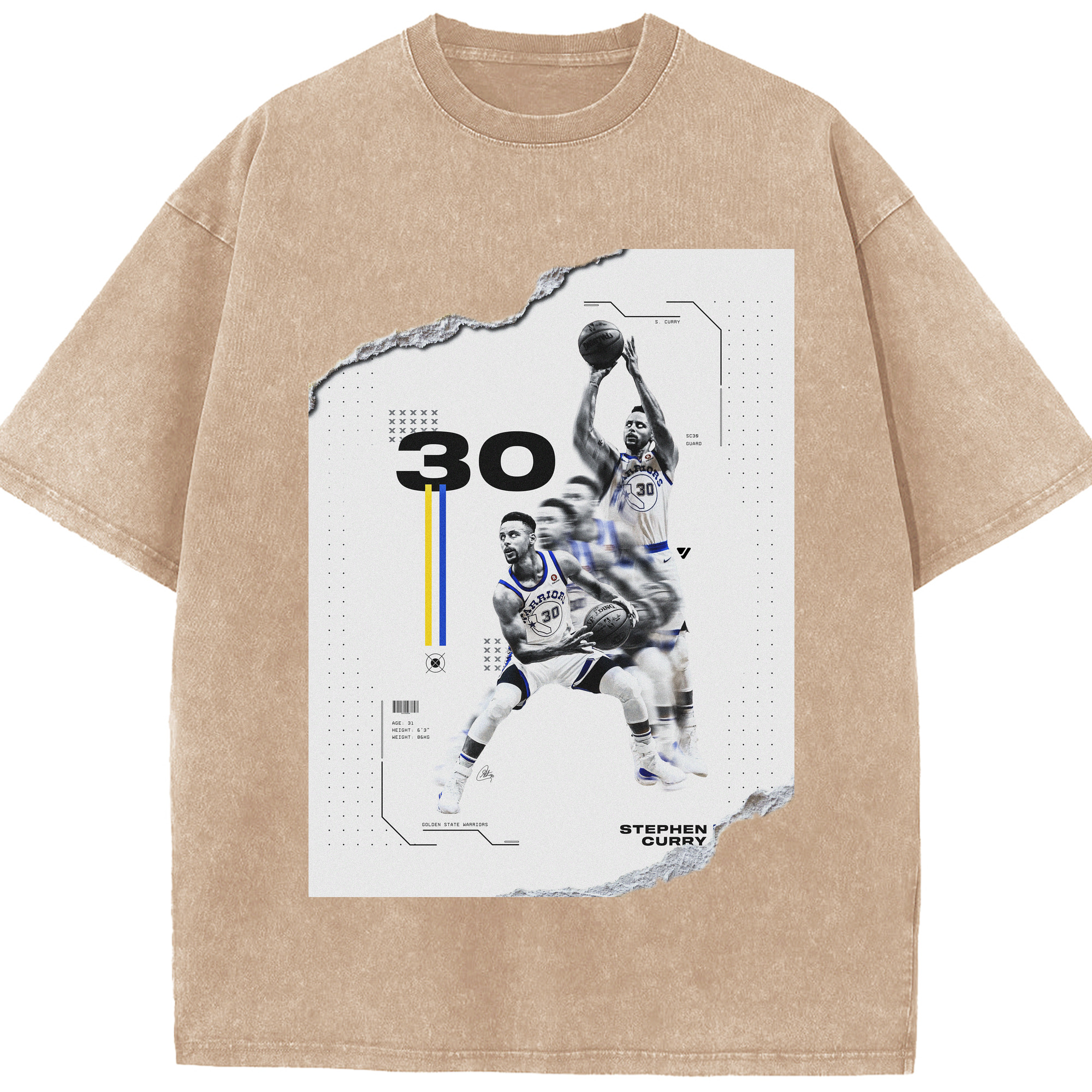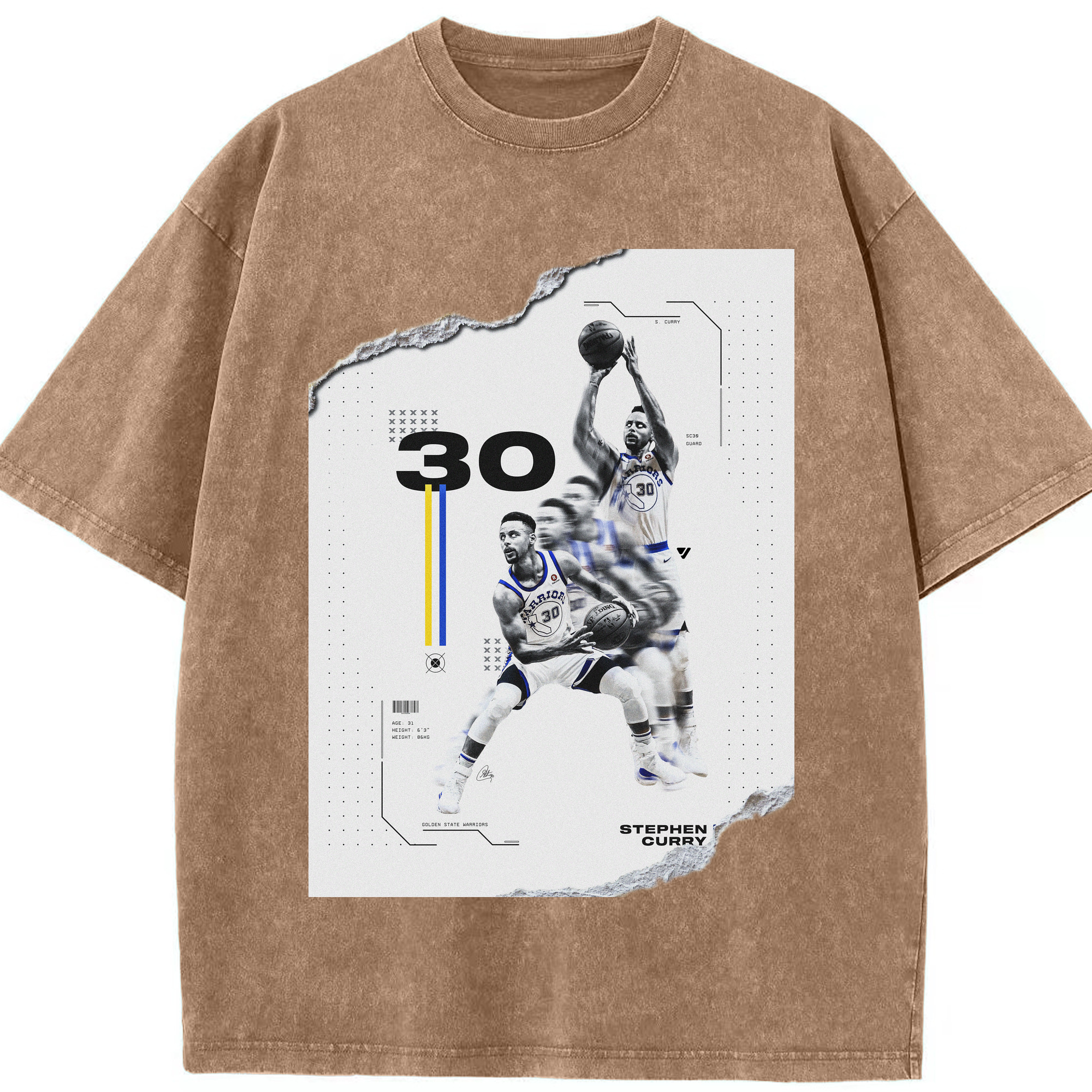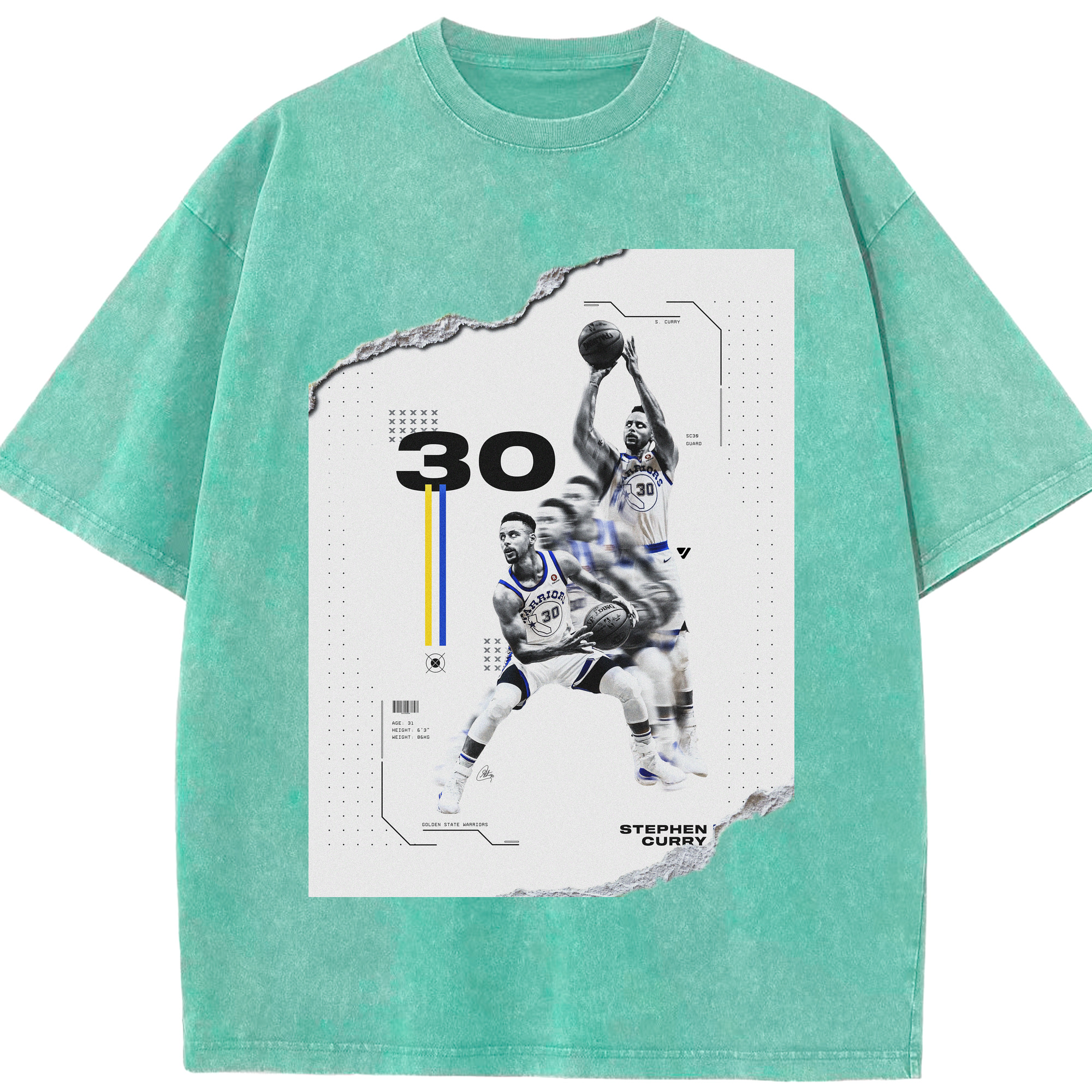 Stephen Curry #30 Shred Art Shirt - Washed Vintage Look 230g Cotton Oversized T-Shirt With Front Heat Transfer Print – Soft, Lightweight, Stylish Fit – Comfortable Casual Wear For Sports & Everyday Use