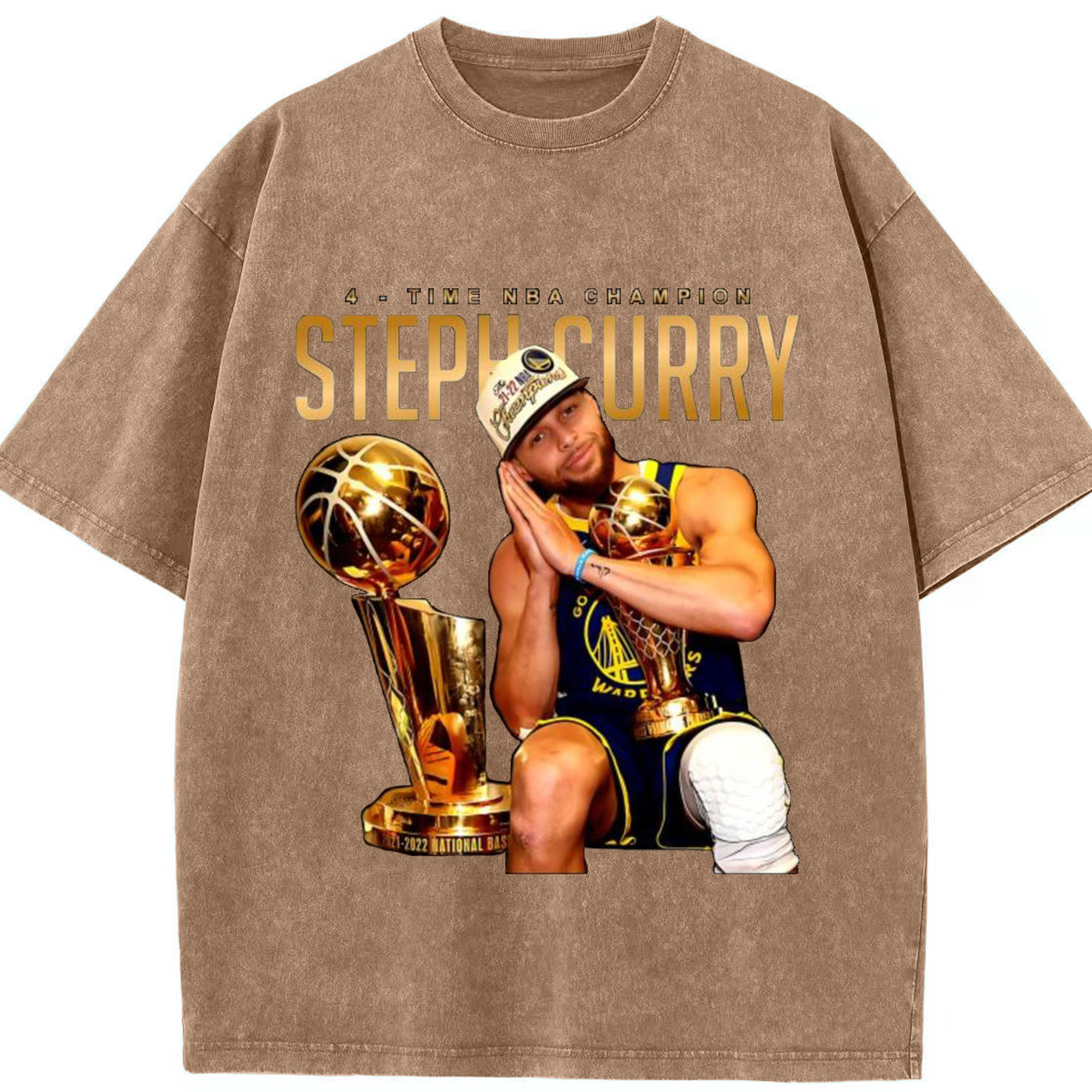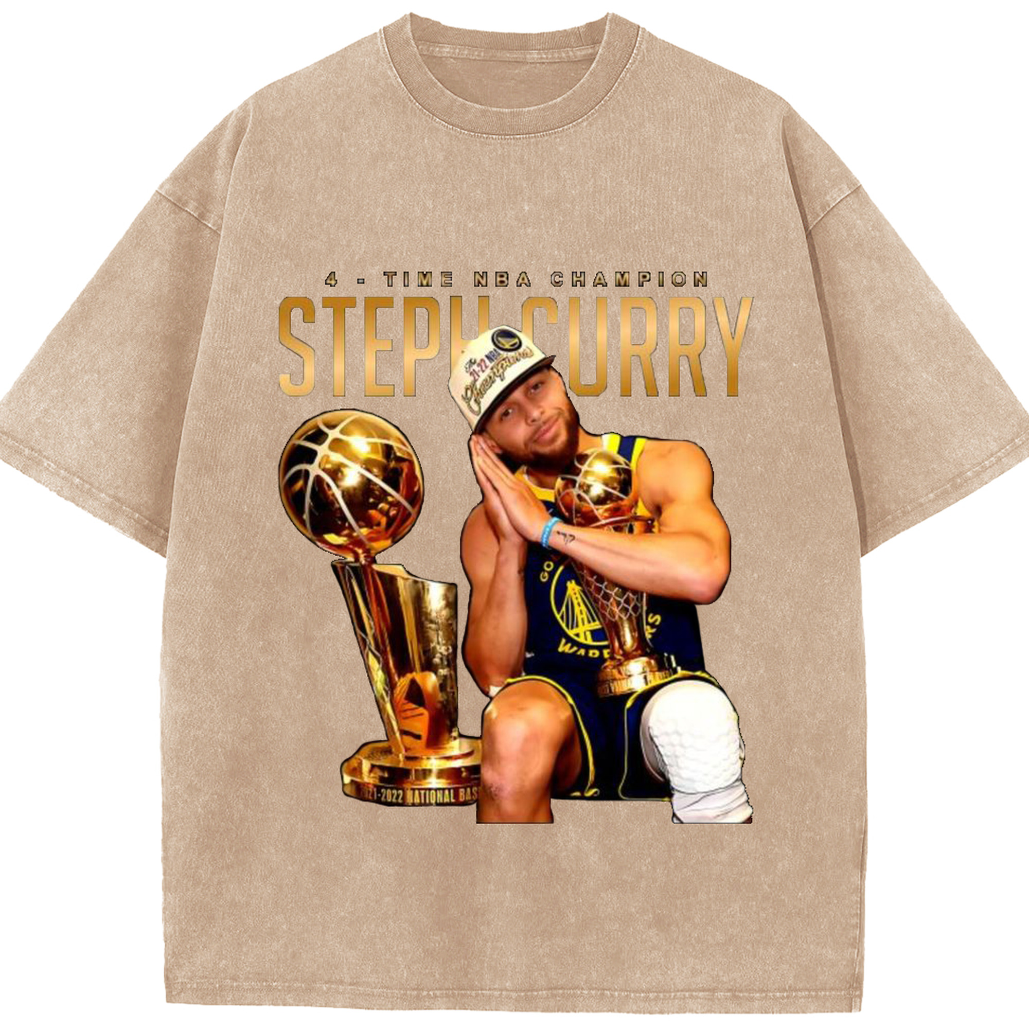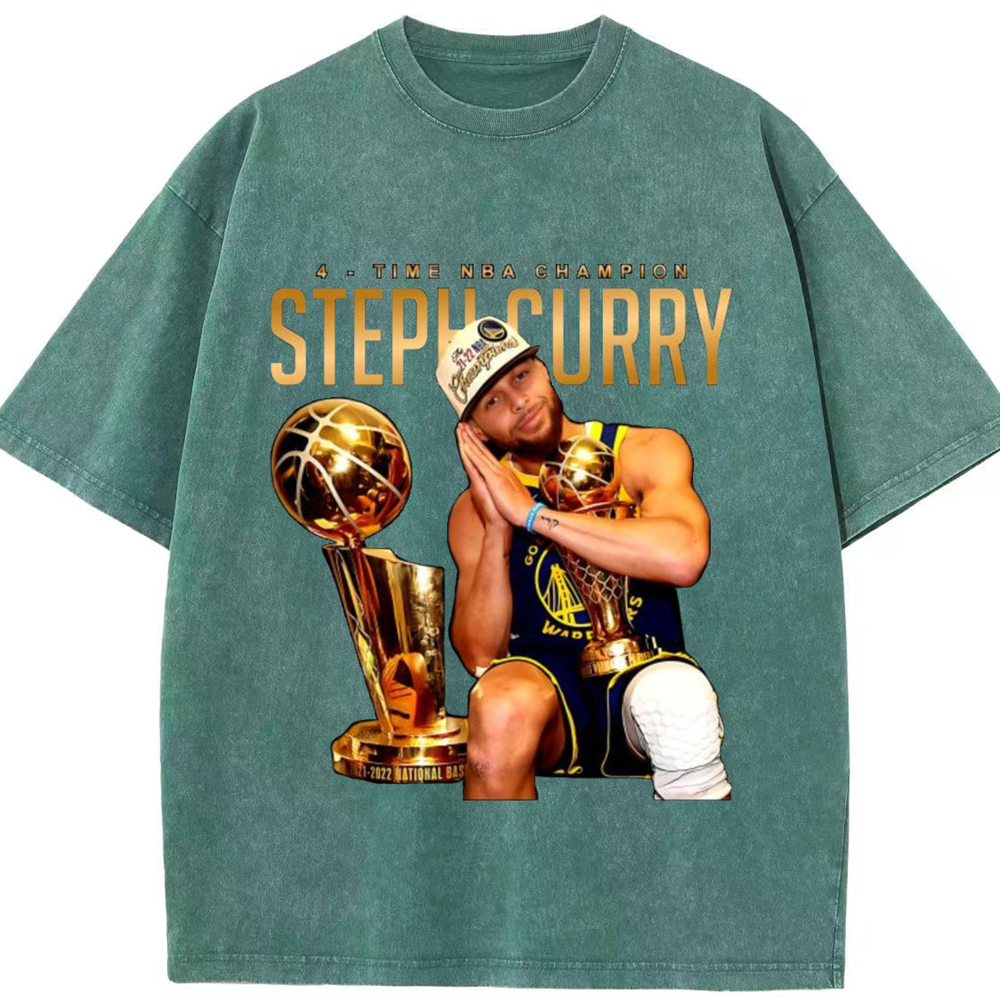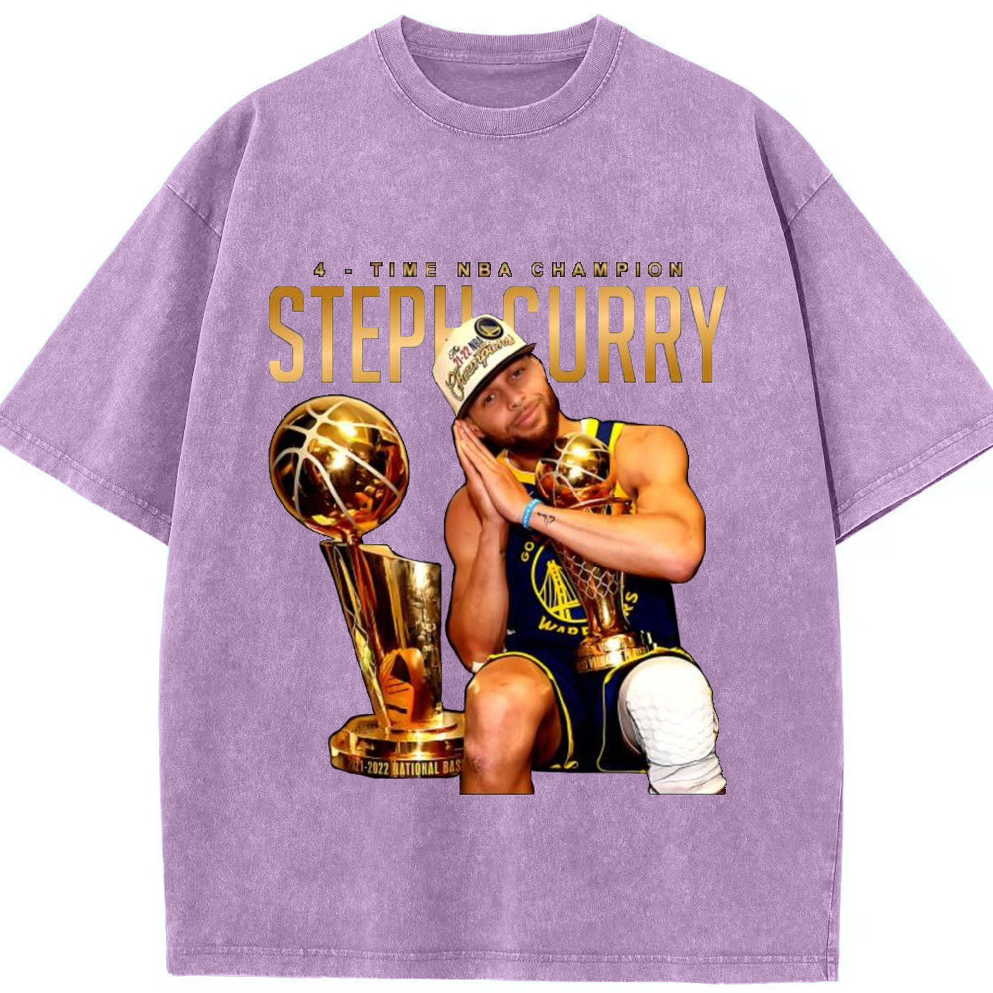 Stephen Curry 4-Time NBA Champion Shirt - Washed Vintage Look 230g Cotton Oversized T-Shirt With Front Heat Transfer Print – Soft, Lightweight, Stylish Fit – Comfortable Casual Wear For Sports & Everyday Use