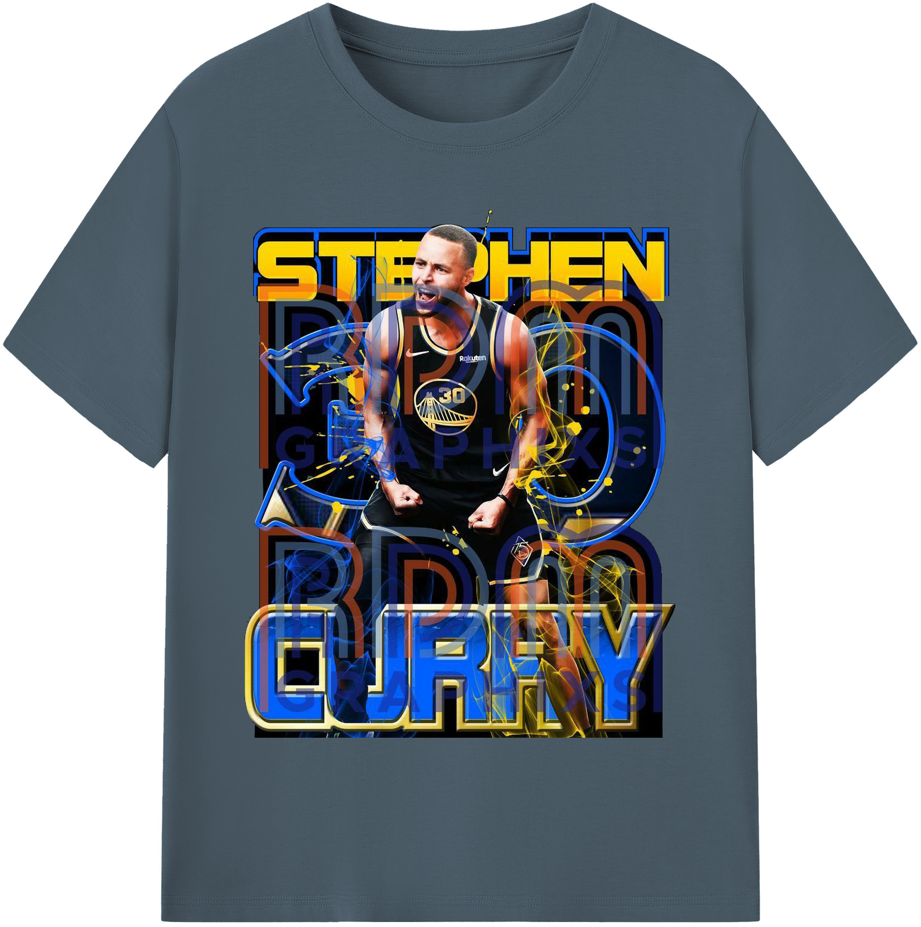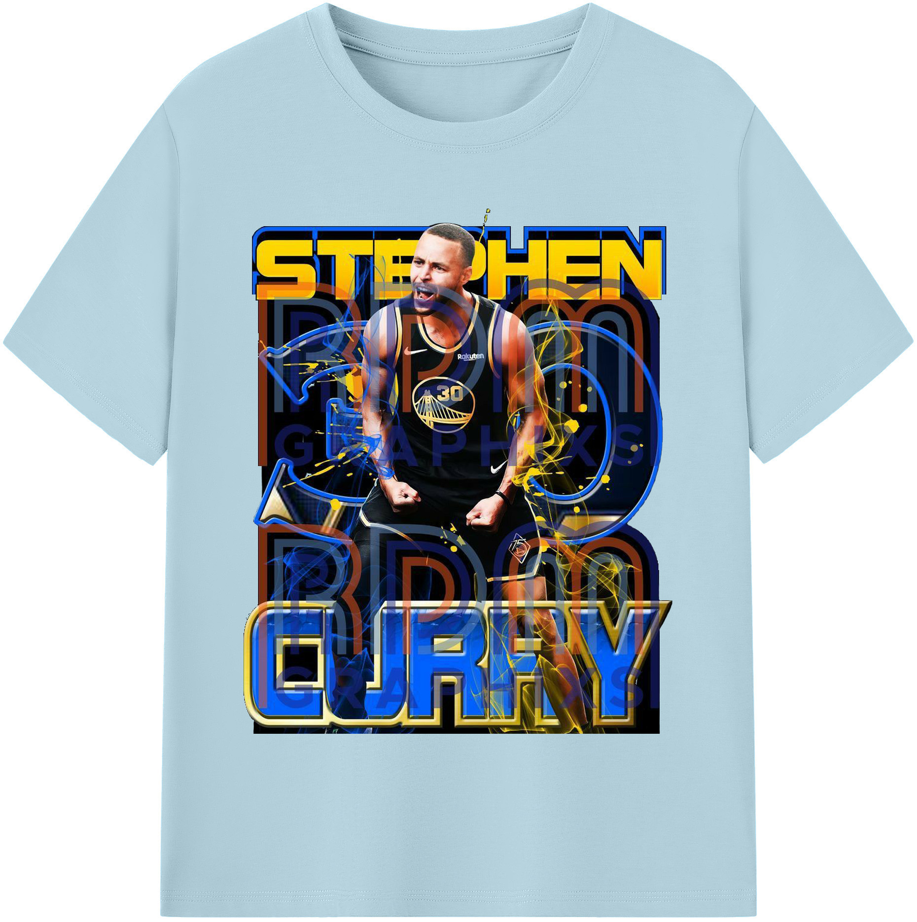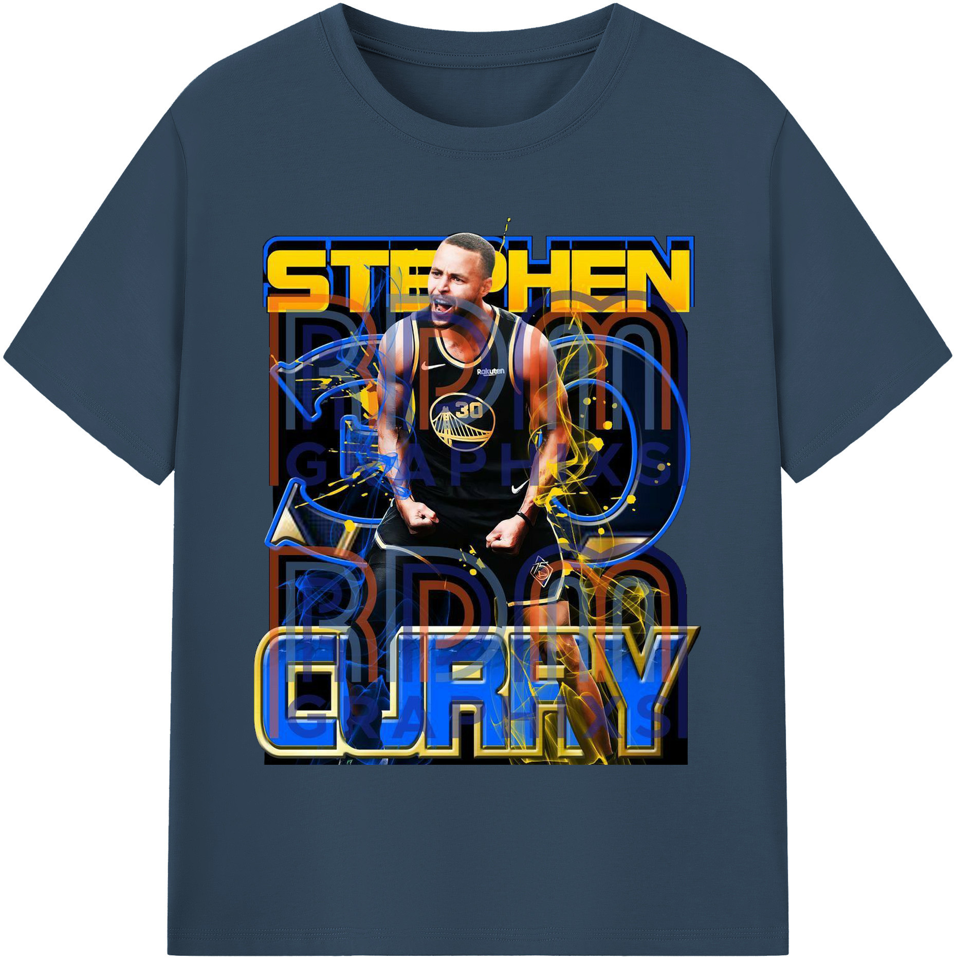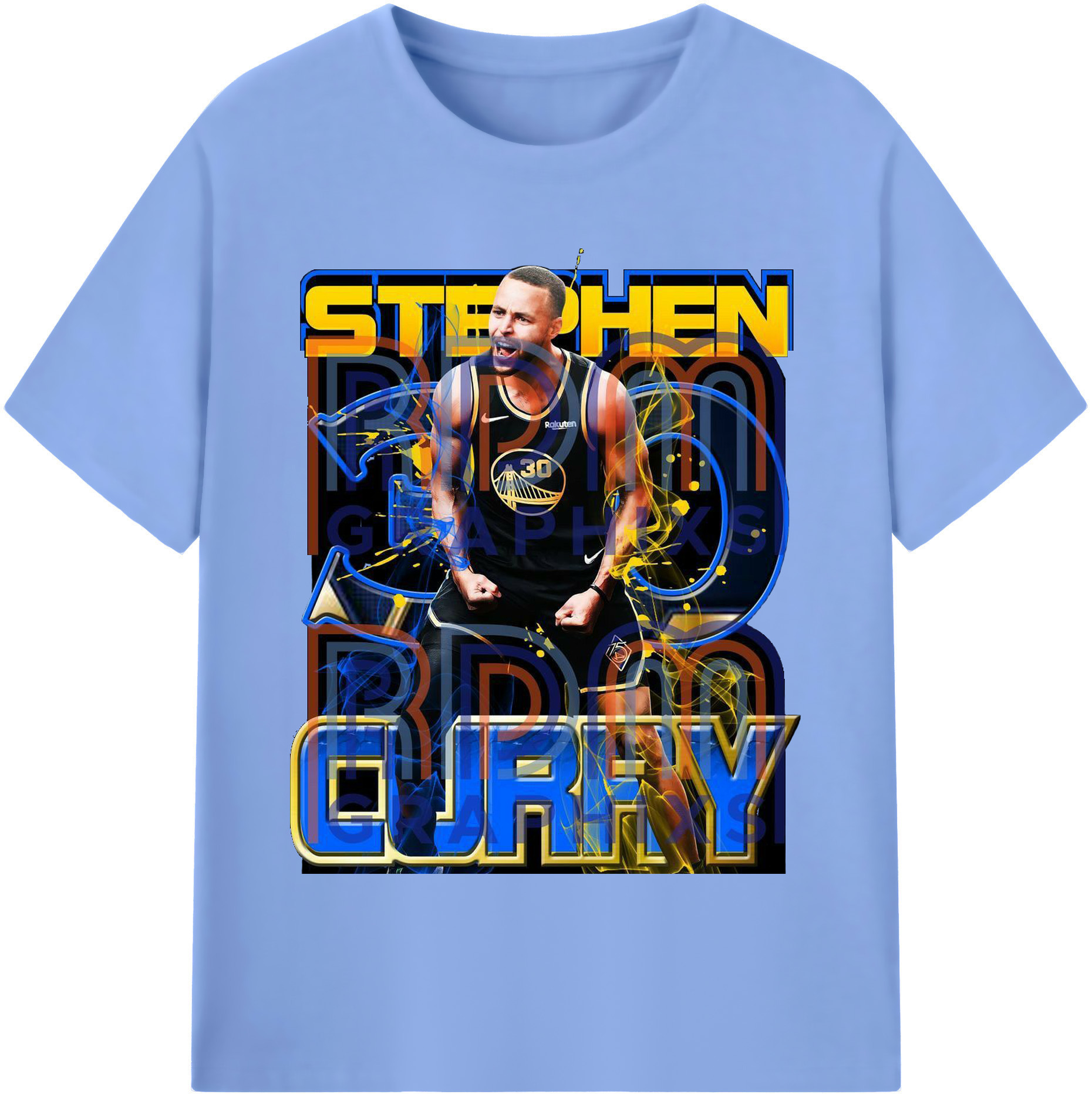 Stephen Curry Electric Blue Gold Streetwear Victory Roar Shirt - 180g Cotton T-Shirt With Front Heat Transfer Print – Soft, Lightweight, Fitted Design – Comfortable Casual Wear For Sports & Everyday Use