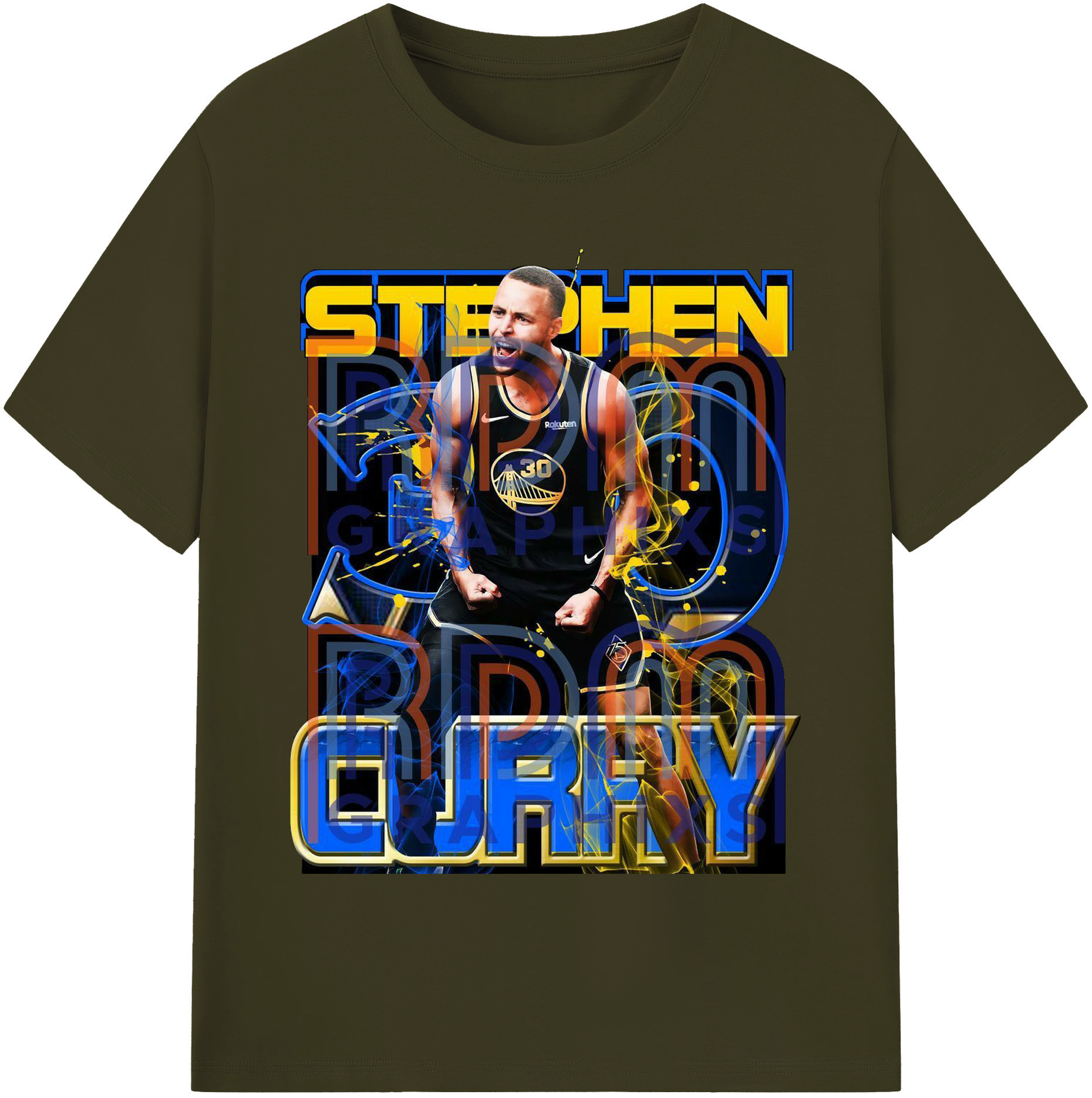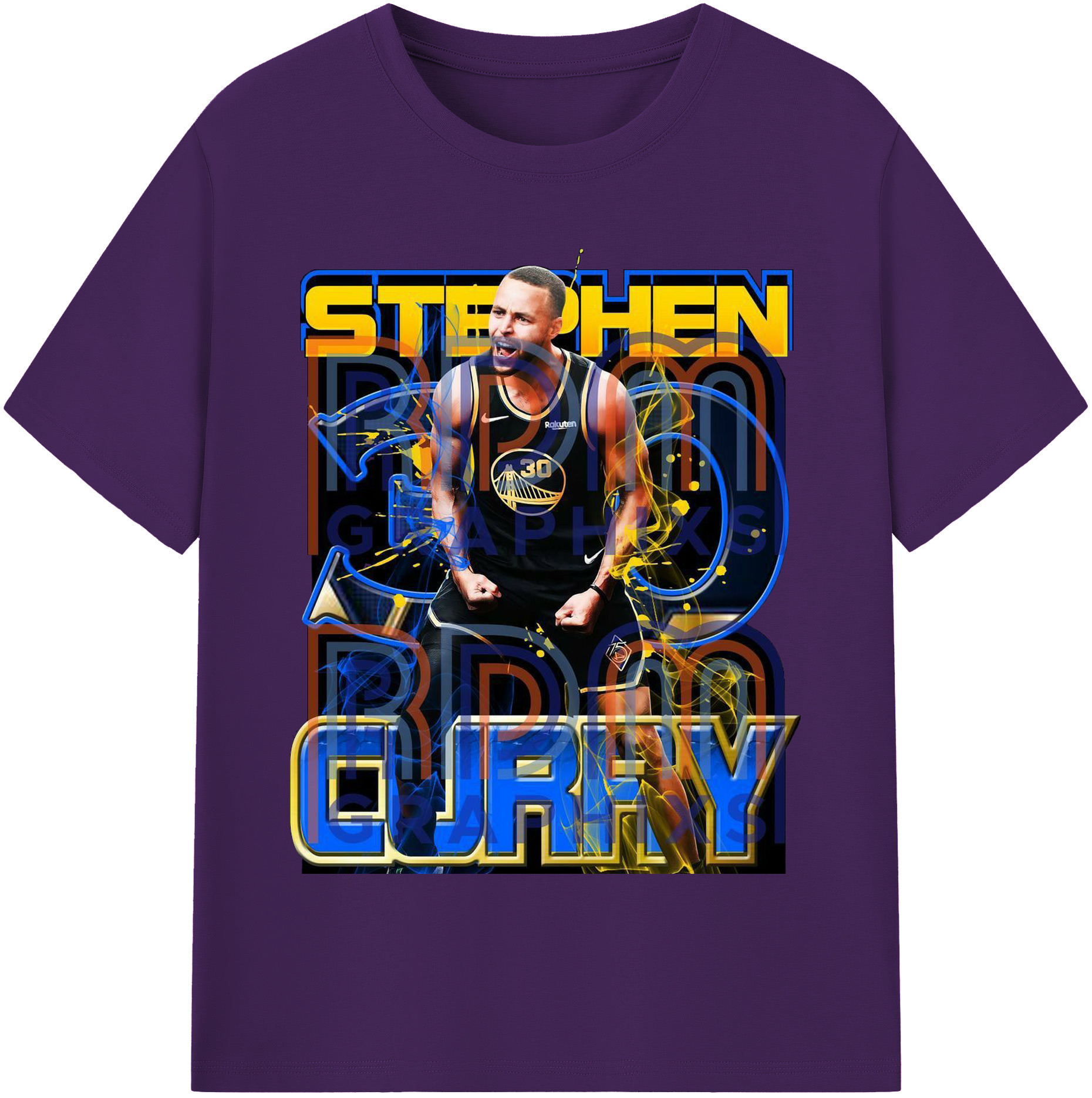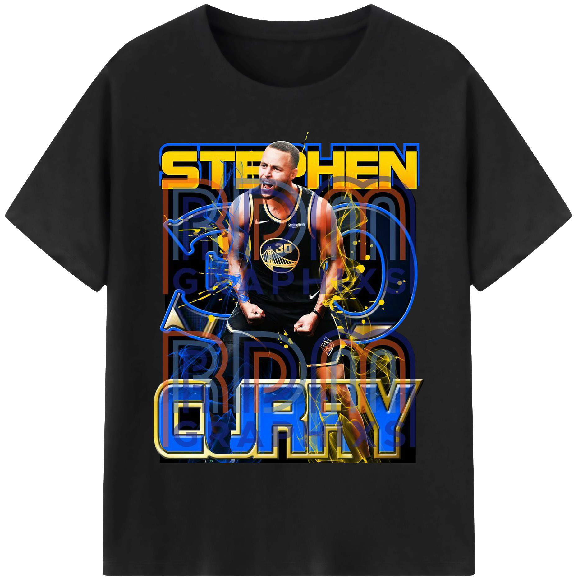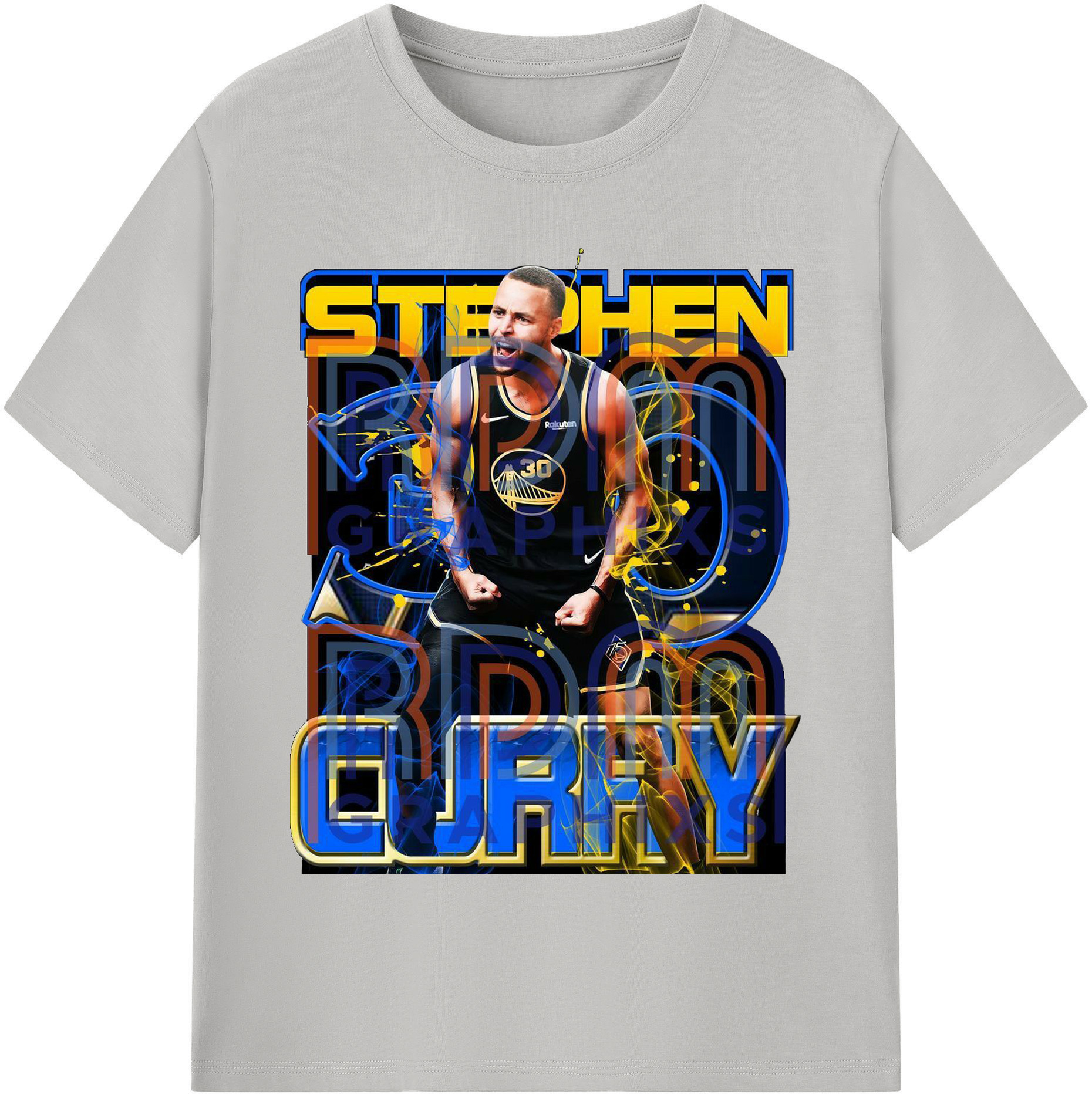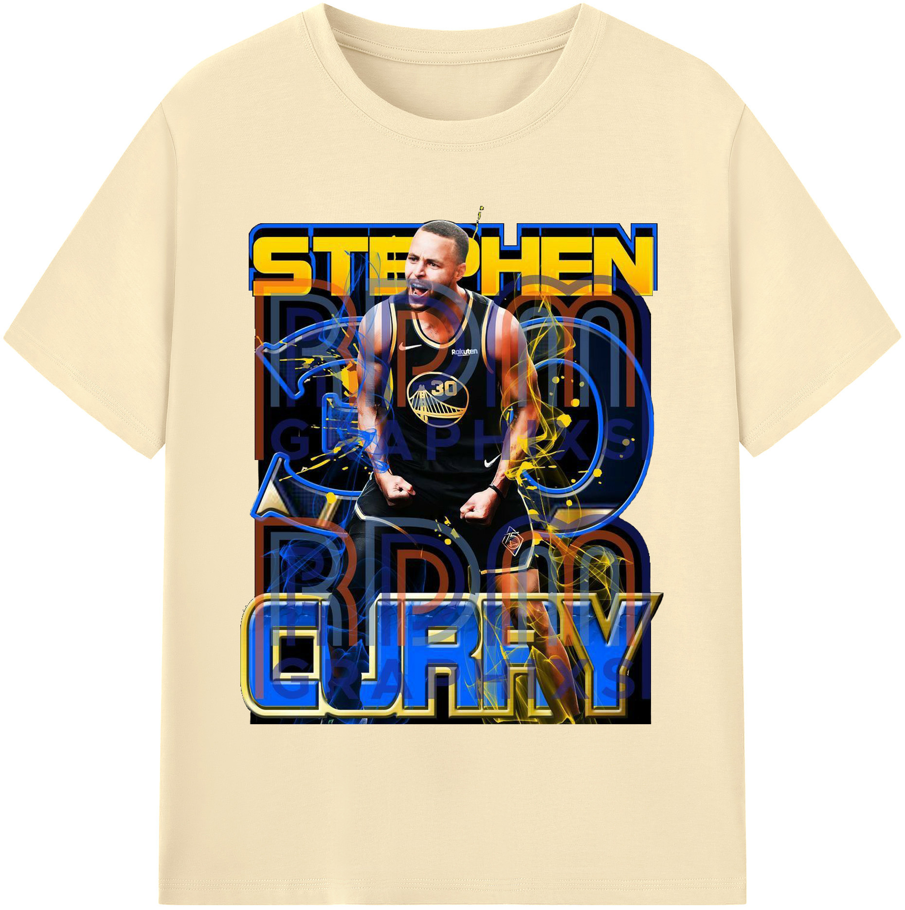 Stephen Curry Electric Blue Gold Streetwear Victory Roar Shirt - 180g Cotton T-Shirt With Front Heat Transfer Print – Soft, Lightweight, Fitted Design – Comfortable Casual Wear For Sports & Everyday Use