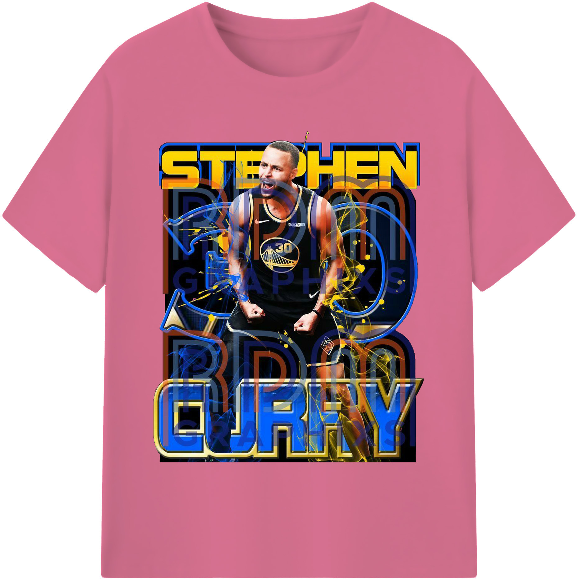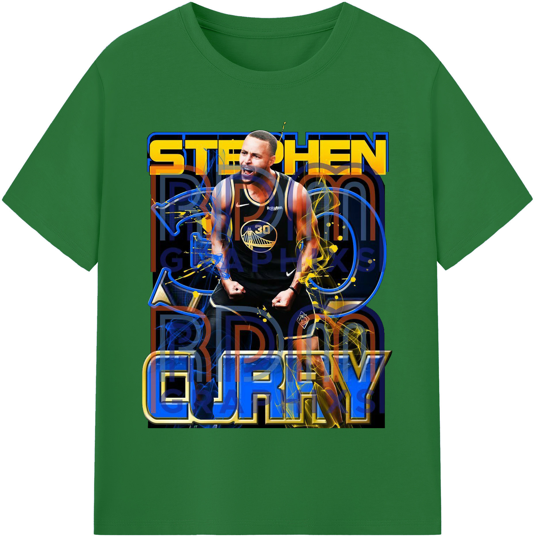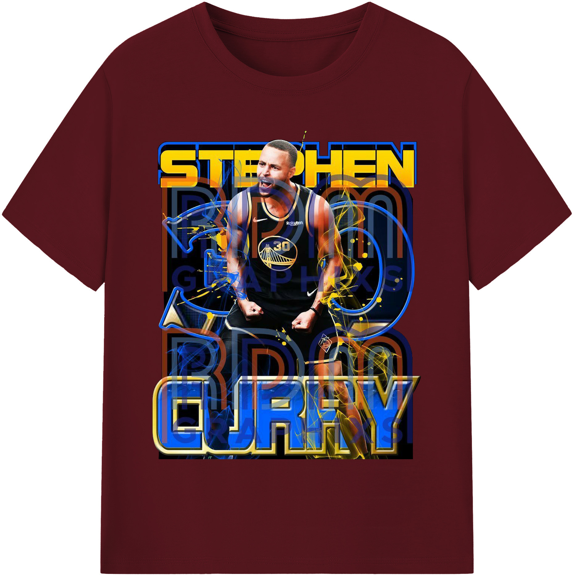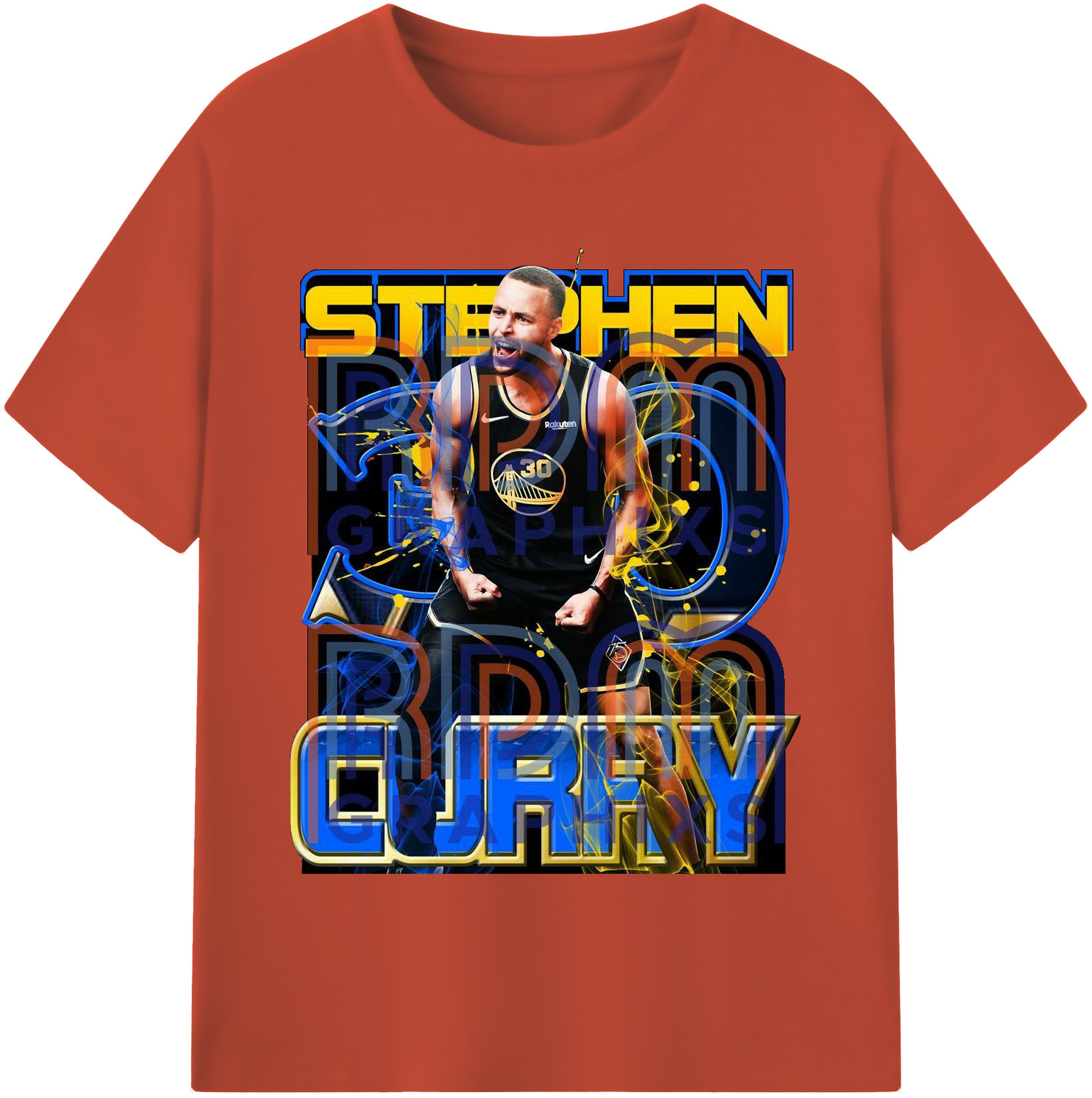 Stephen Curry Electric Blue Gold Streetwear Victory Roar Shirt - 180g Cotton T-Shirt With Front Heat Transfer Print – Soft, Lightweight, Fitted Design – Comfortable Casual Wear For Sports & Everyday Use