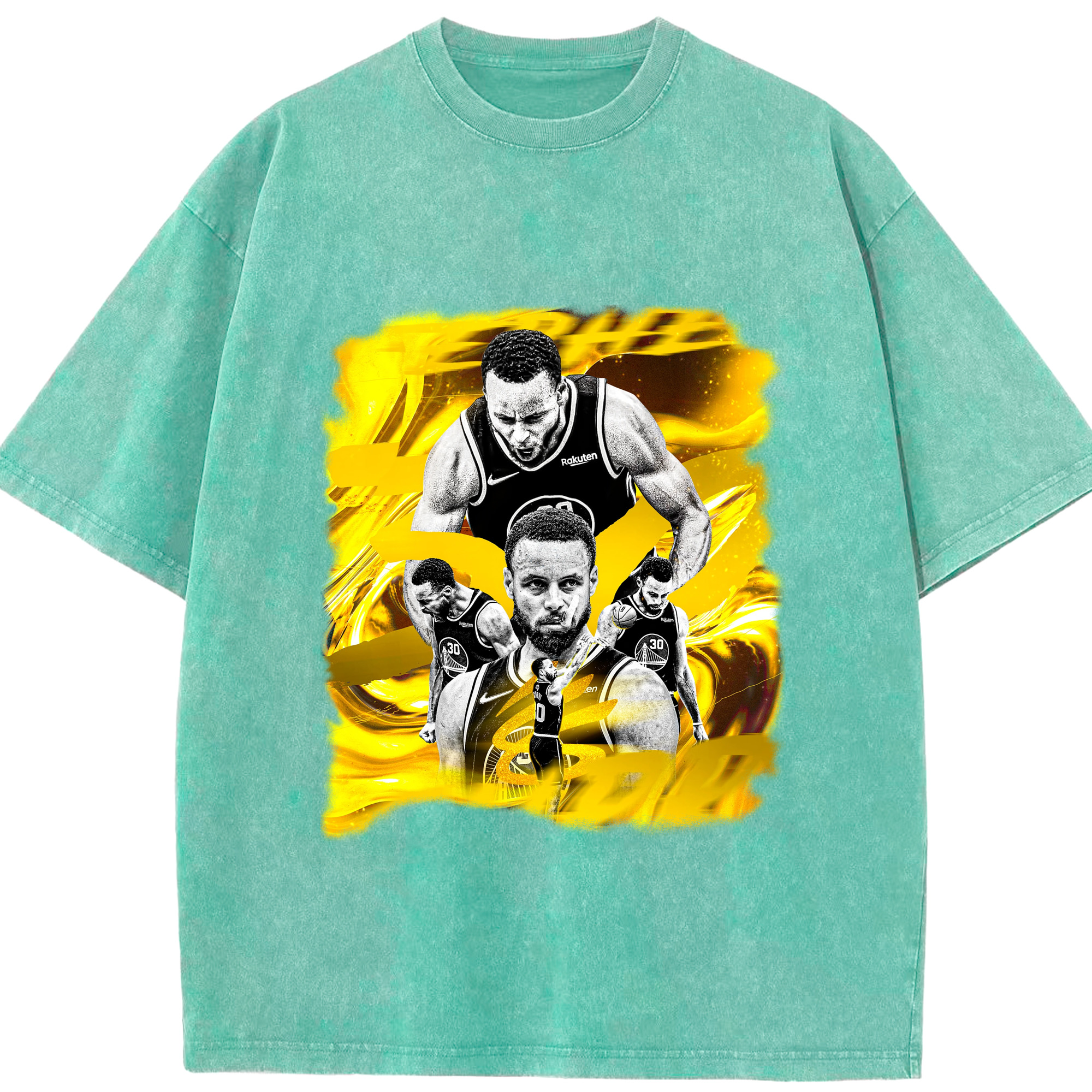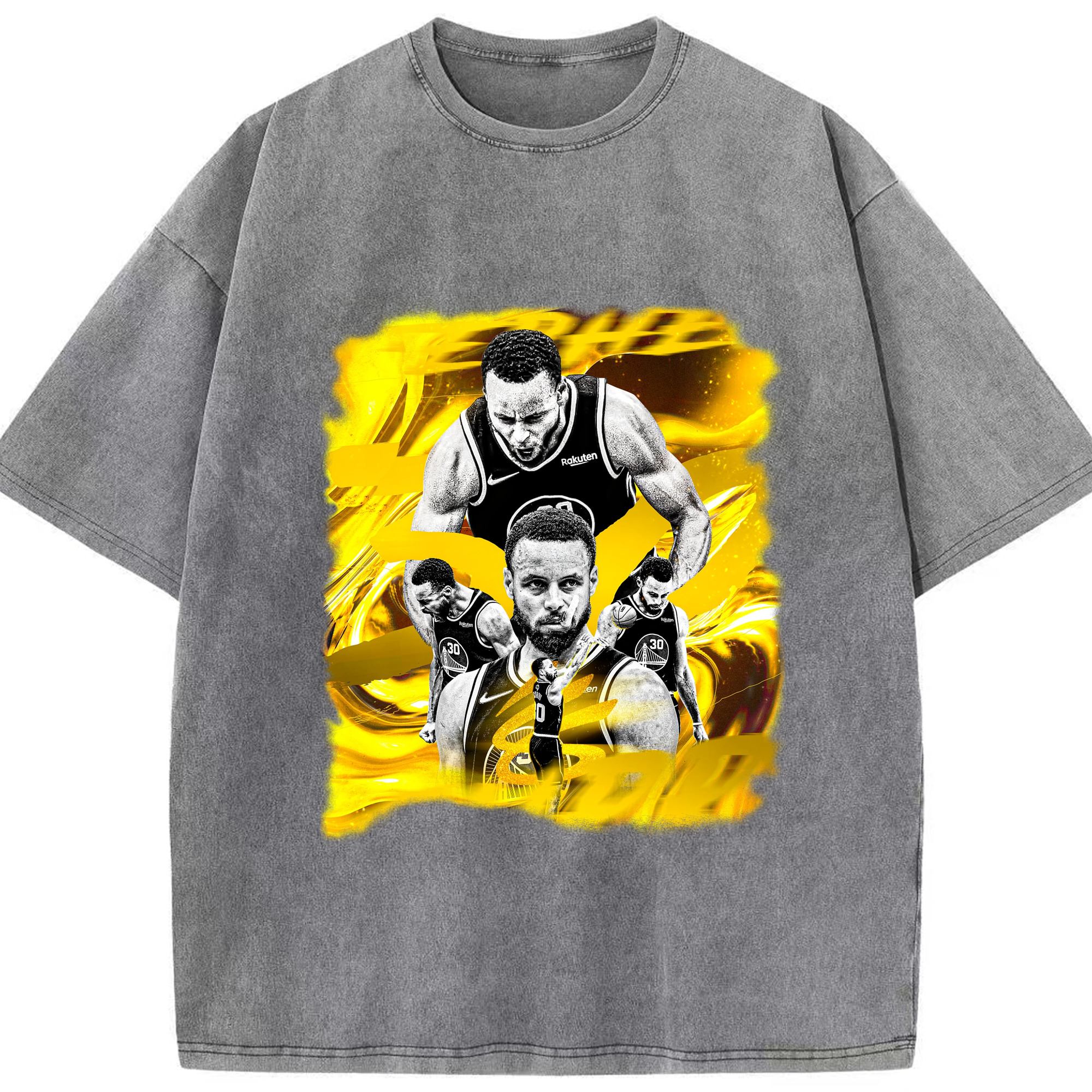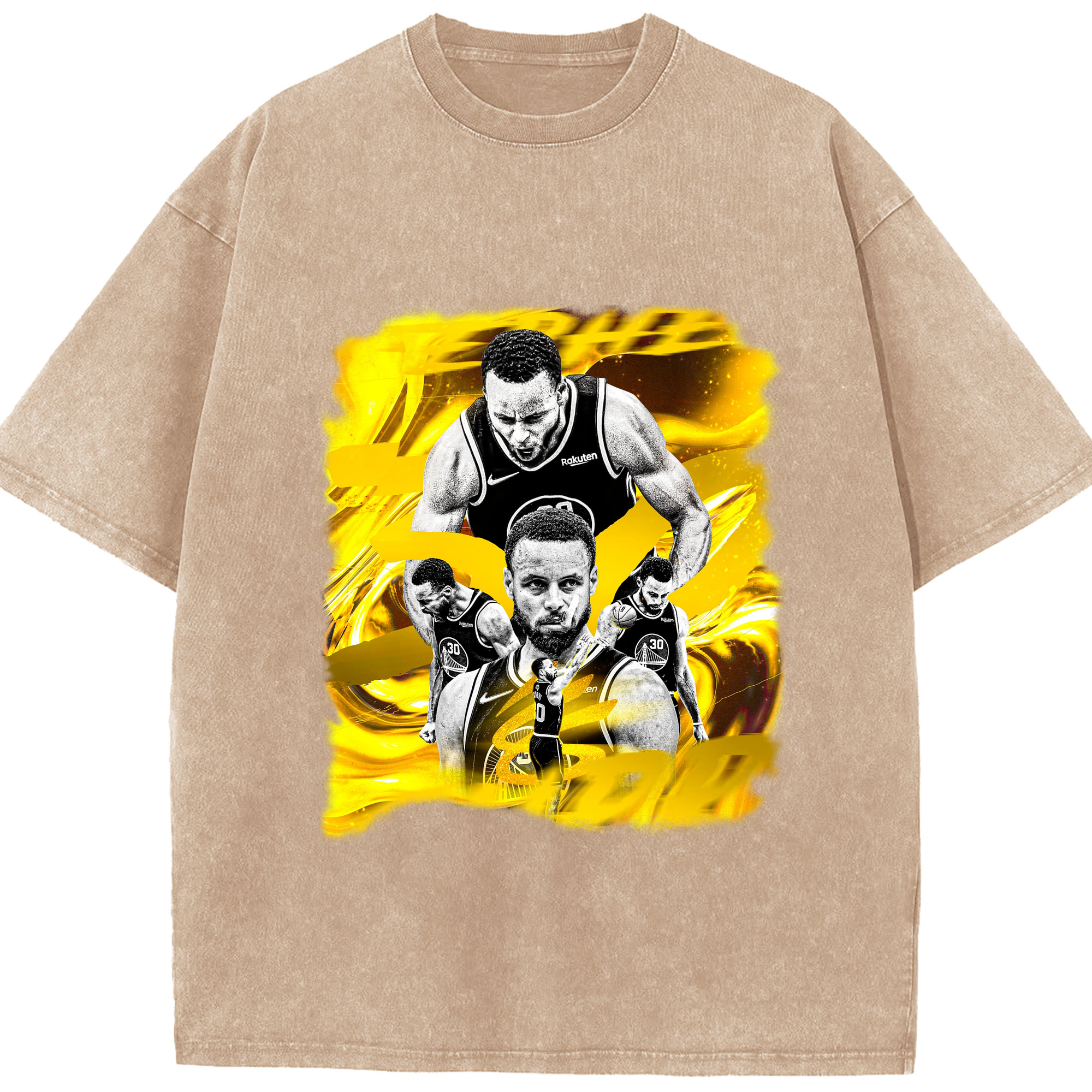 Stephen Curry Golden Swirl Art Shirt - Washed Vintage Look 230g Cotton Oversized T-Shirt With Front Heat Transfer Print – Soft, Lightweight, Stylish Fit – Comfortable Casual Wear For Sports & Everyday Use