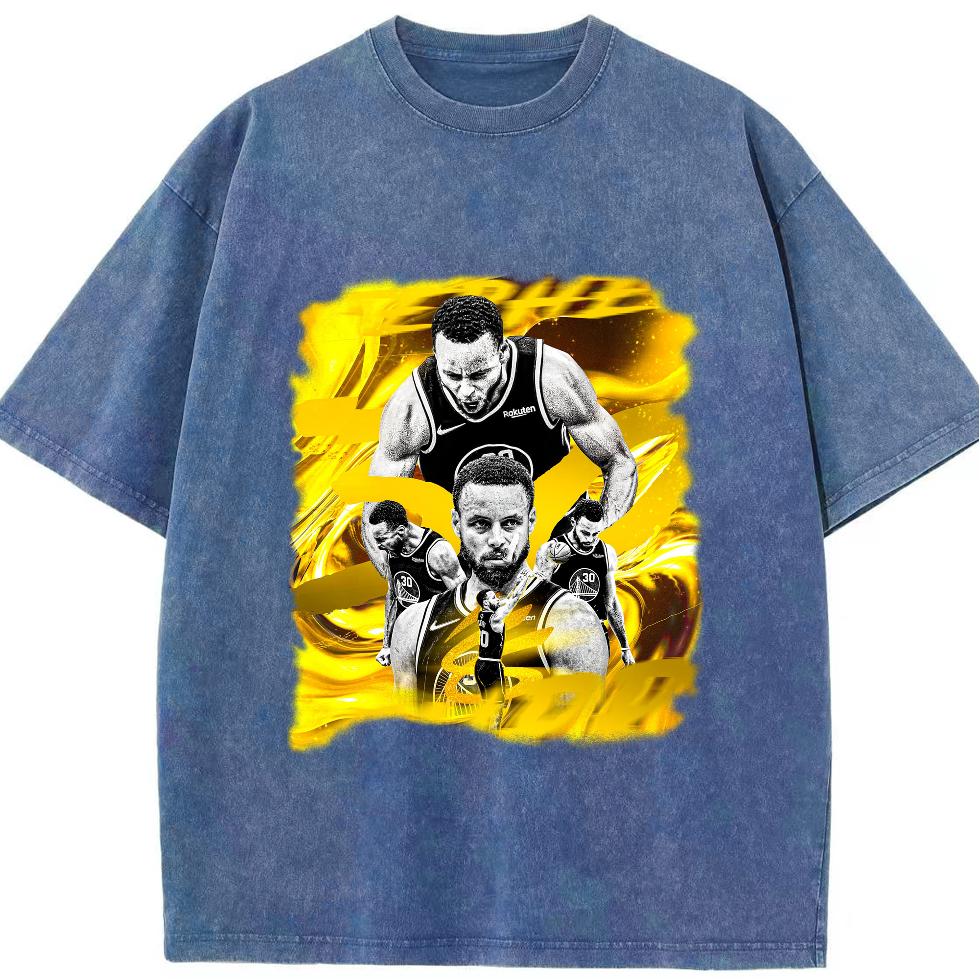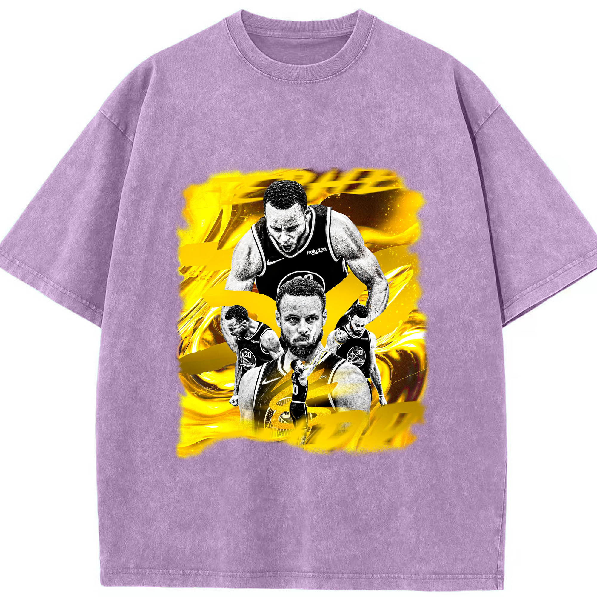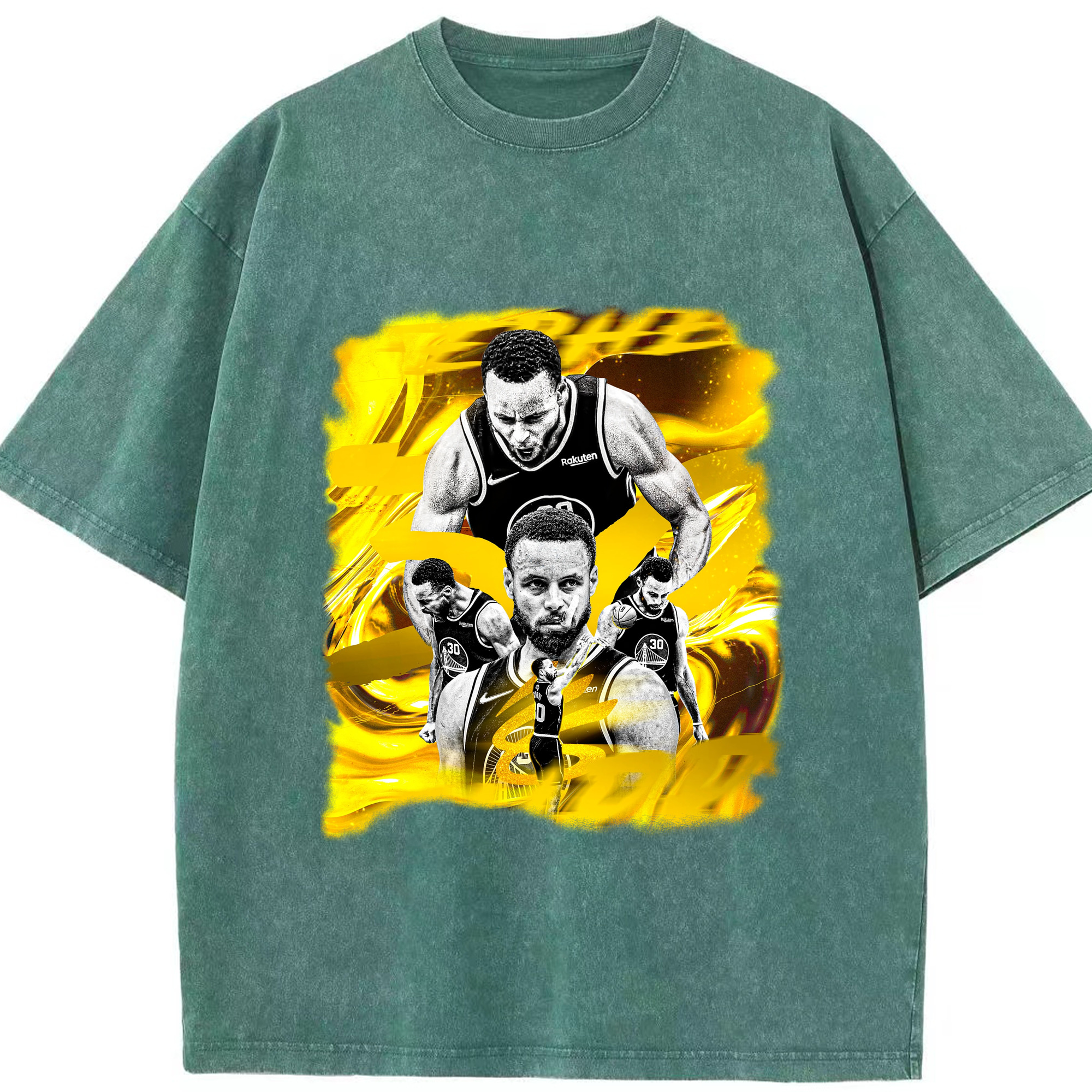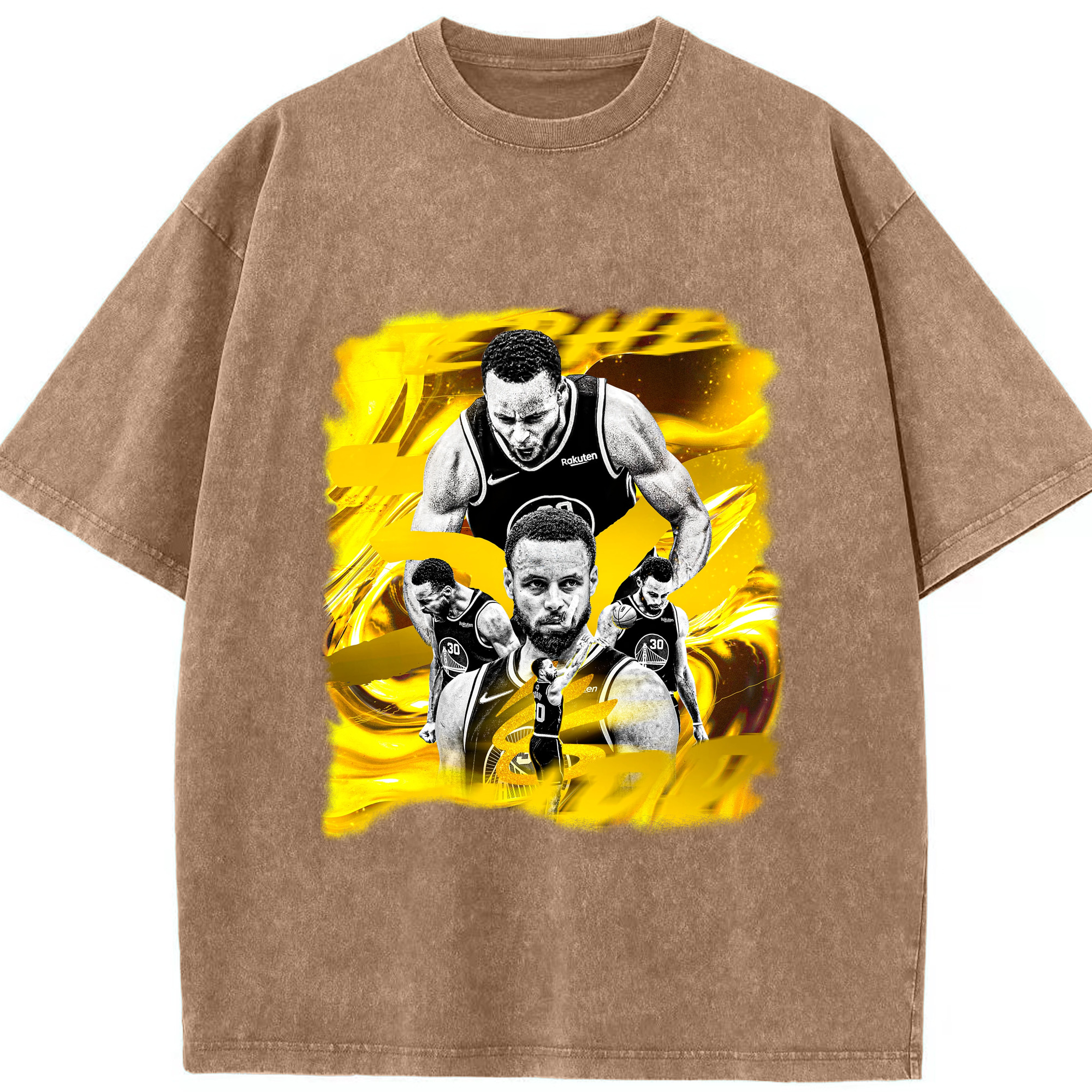 Stephen Curry Golden Swirl Art Shirt - Washed Vintage Look 230g Cotton Oversized T-Shirt With Front Heat Transfer Print – Soft, Lightweight, Stylish Fit – Comfortable Casual Wear For Sports & Everyday Use