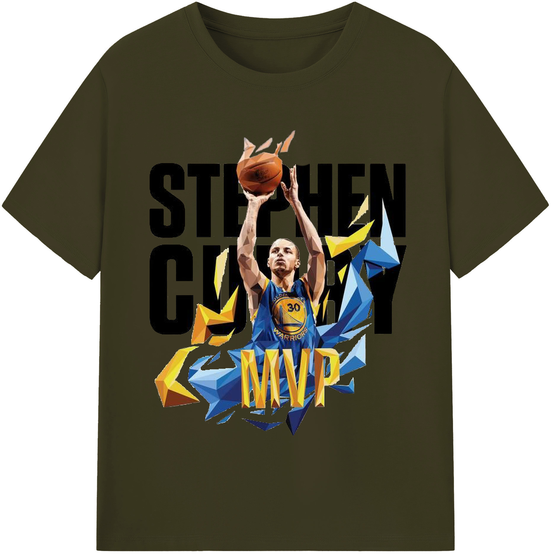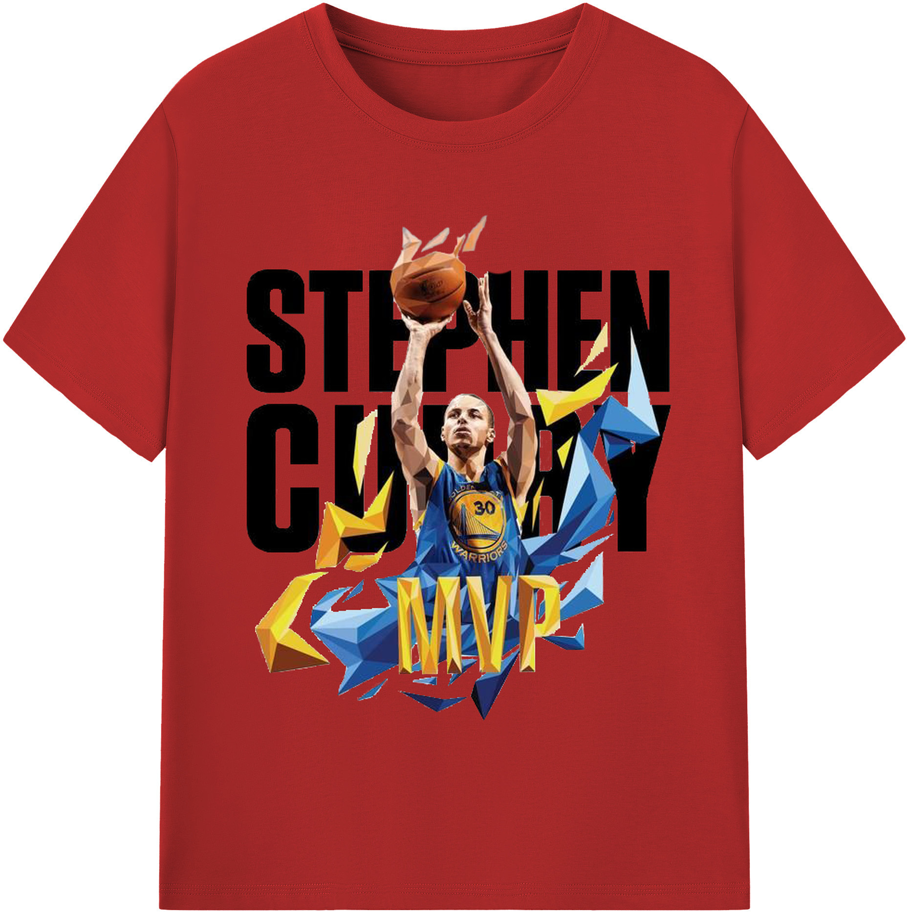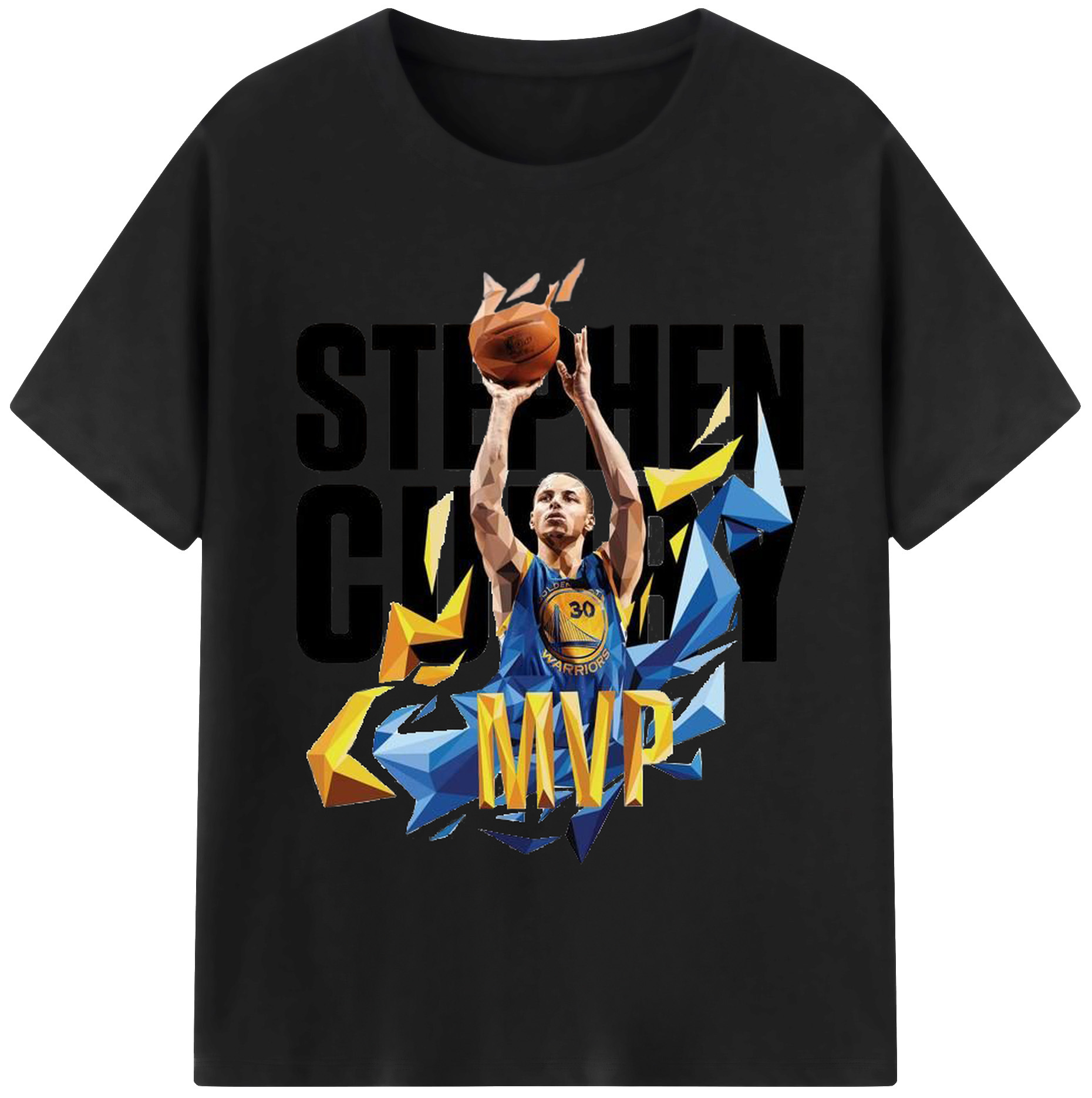Stephen Curry MVP Polygon Art Shirt - 180g Cotton T-Shirt With Front Heat Transfer Print – Soft, Lightweight, Fitted Design – Comfortable Casual Wear For Sports & Everyday Use