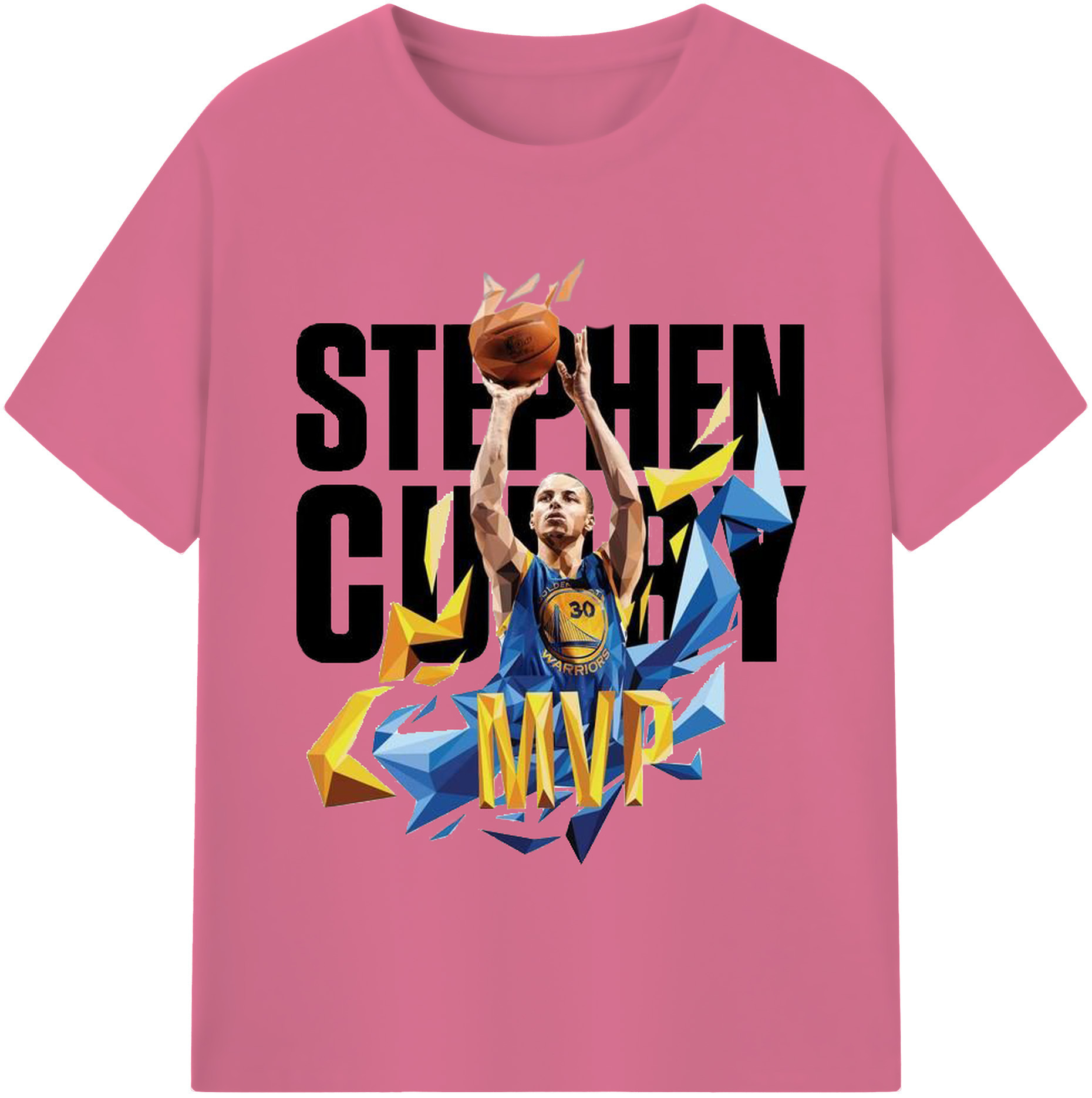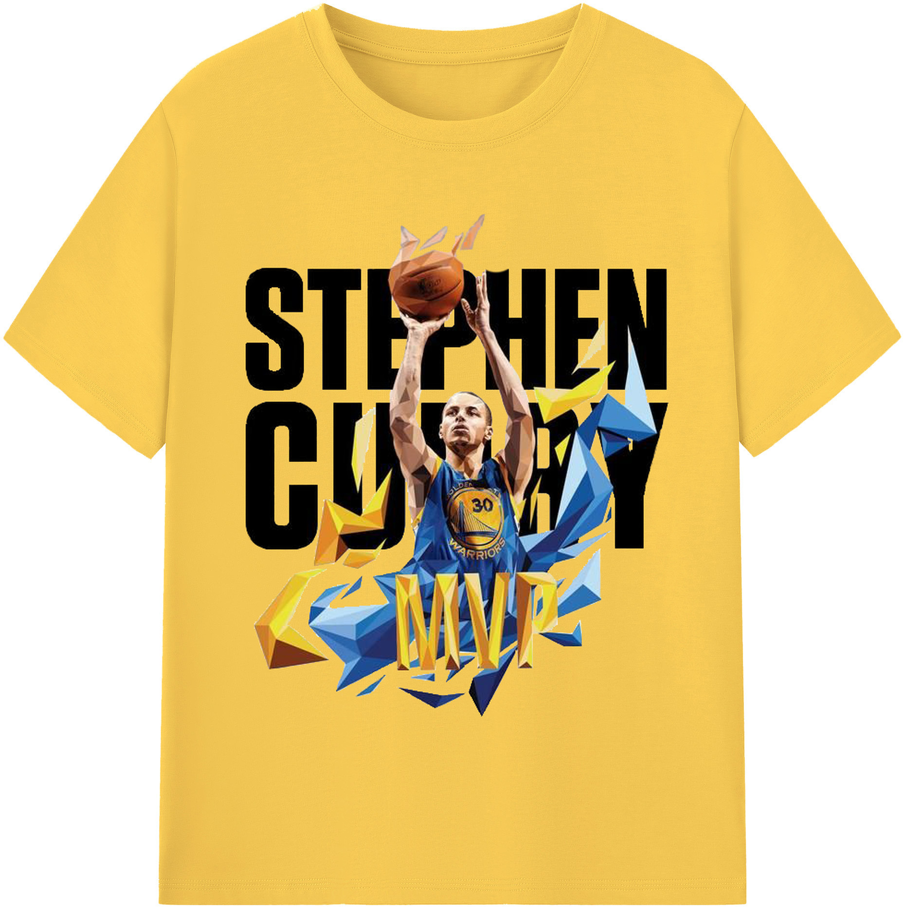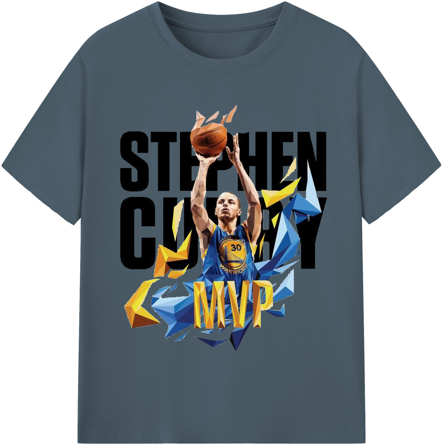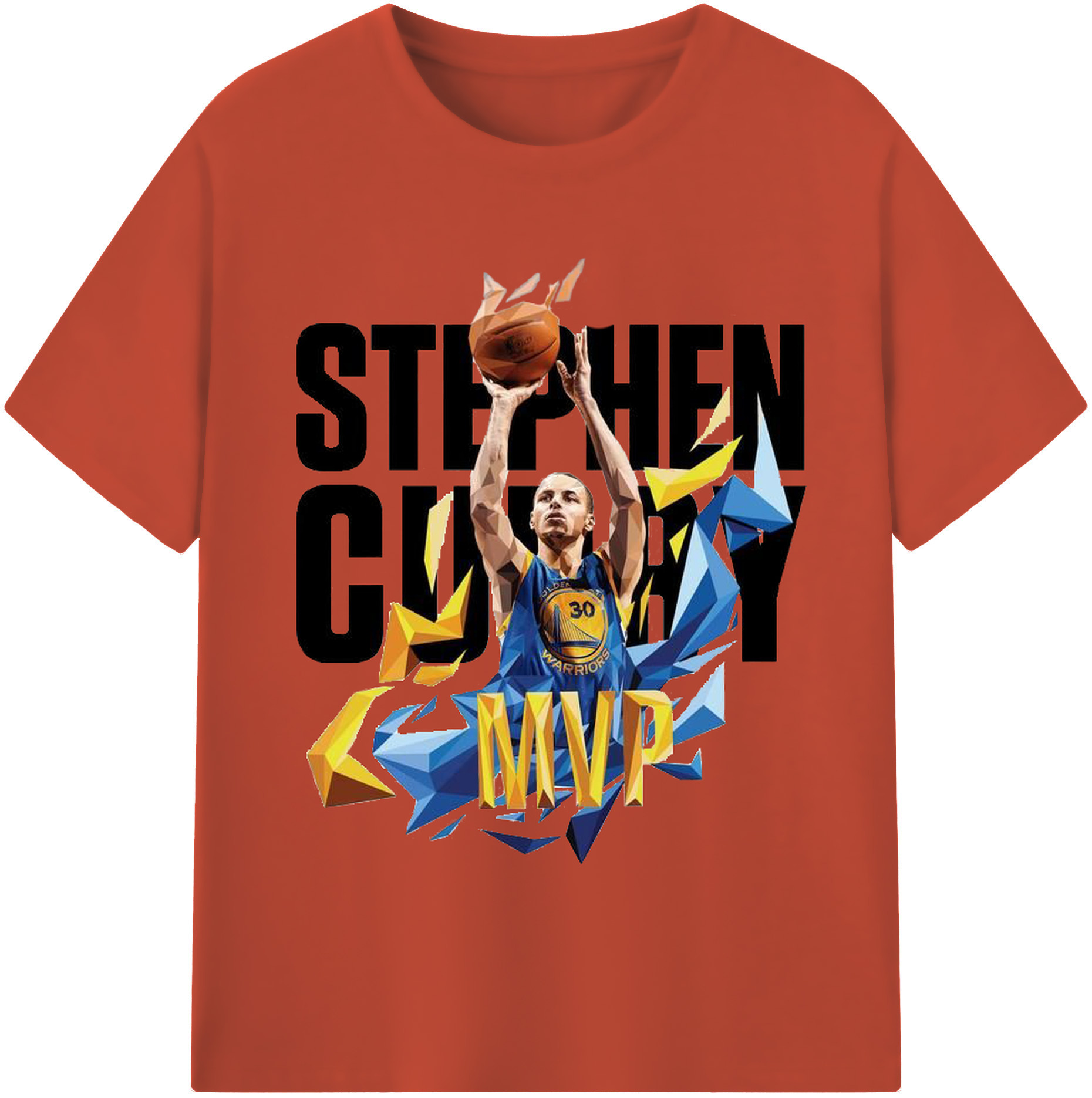Stephen Curry MVP Polygon Art Shirt - 180g Cotton T-Shirt With Front Heat Transfer Print – Soft, Lightweight, Fitted Design – Comfortable Casual Wear For Sports & Everyday Use