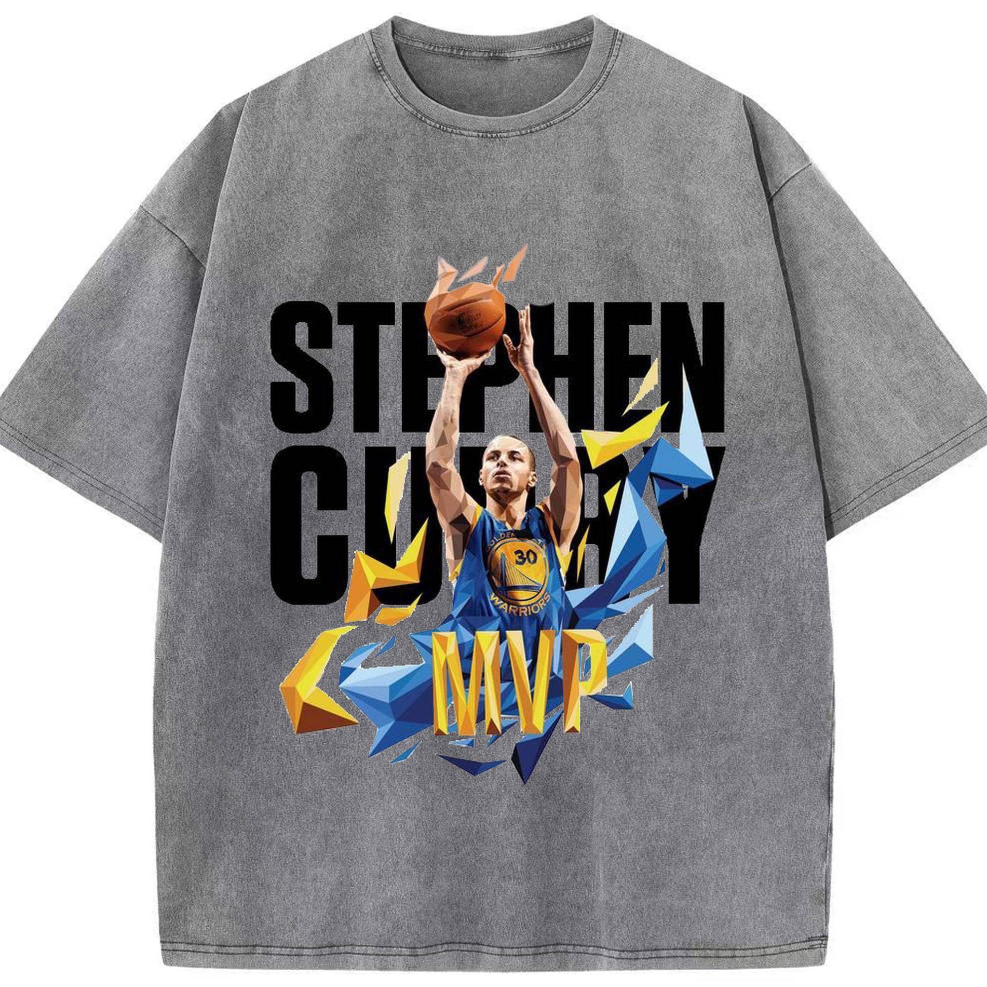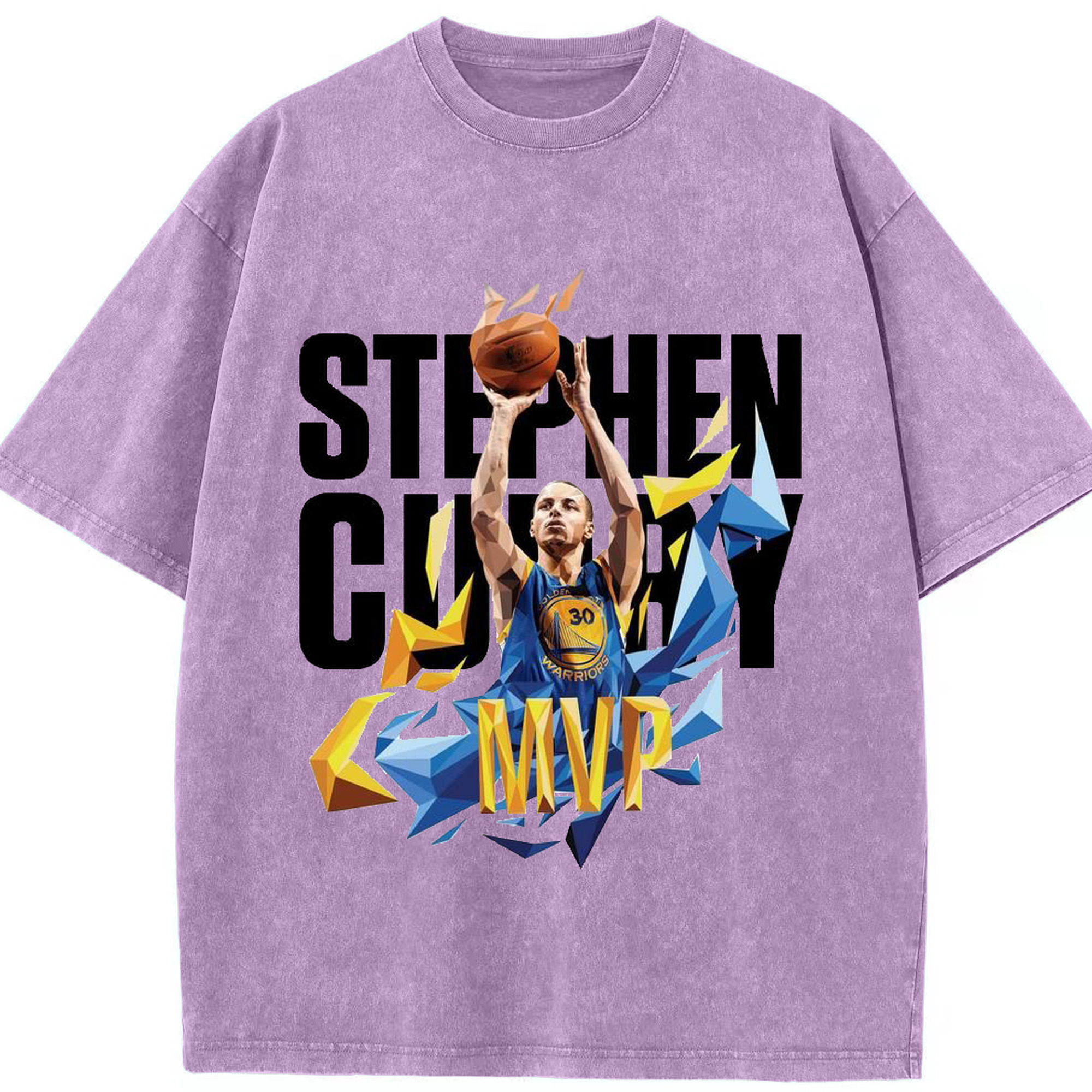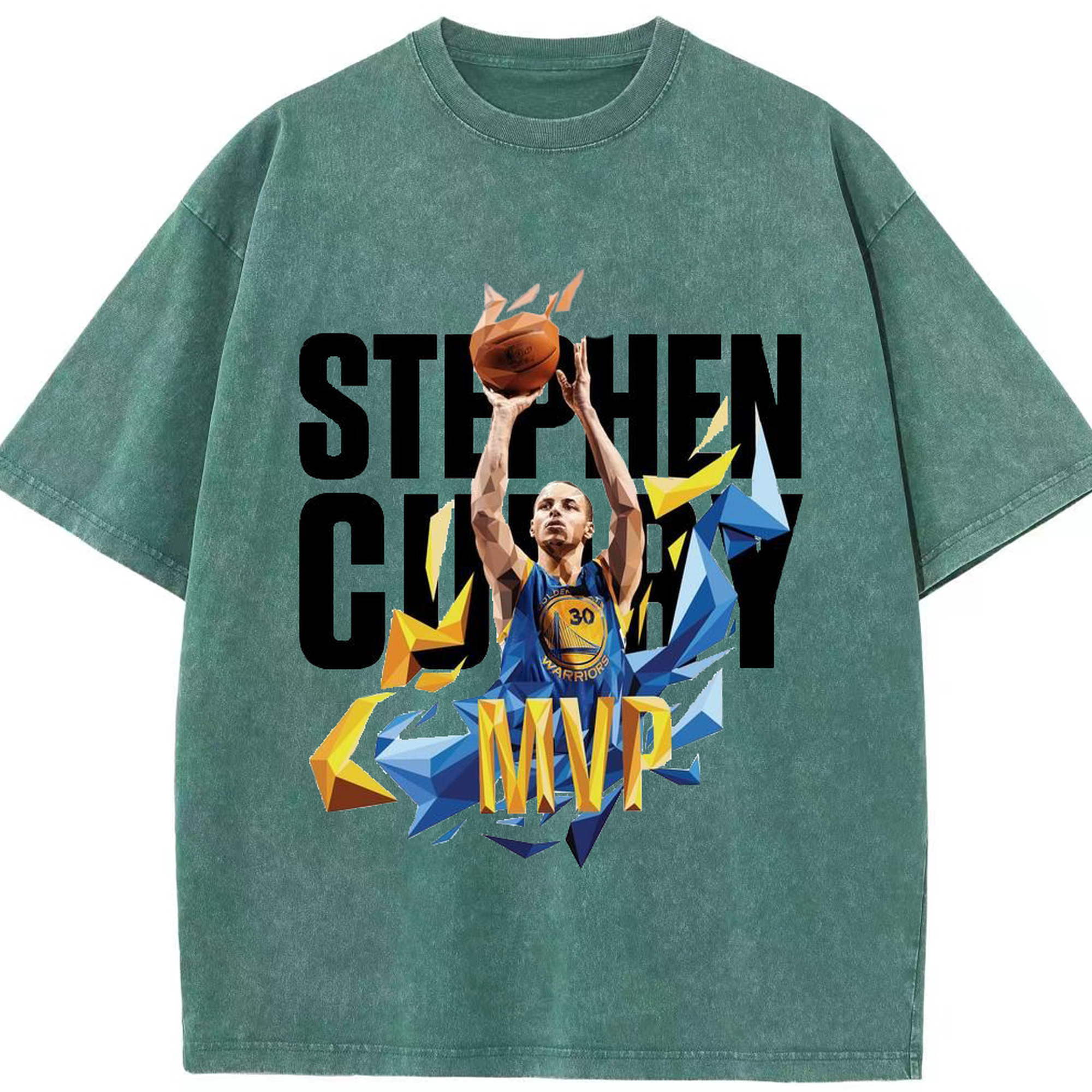 Stephen Curry MVP Polygon Art Shirt - Washed Vintage Look 230g Cotton Oversized T-Shirt With Front Heat Transfer Print – Soft, Lightweight, Stylish Fit – Comfortable Casual Wear For Sports & Everyday Use