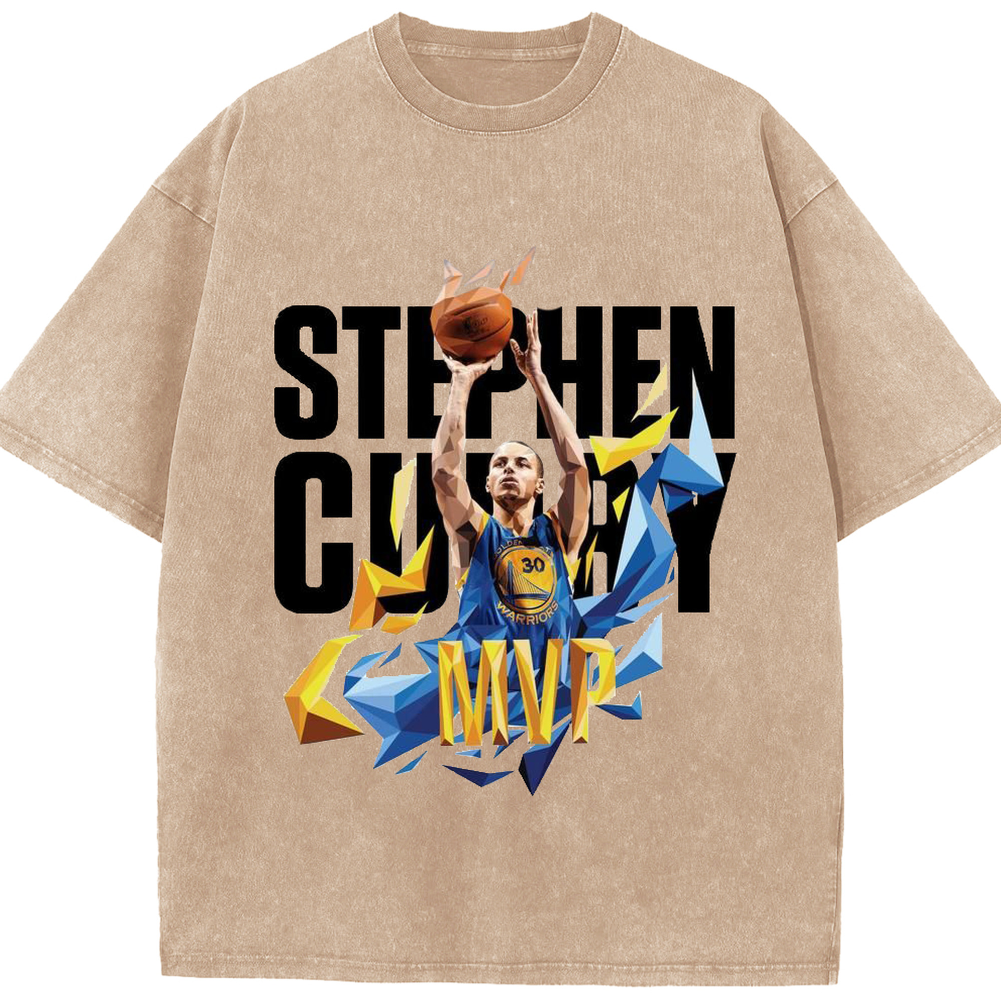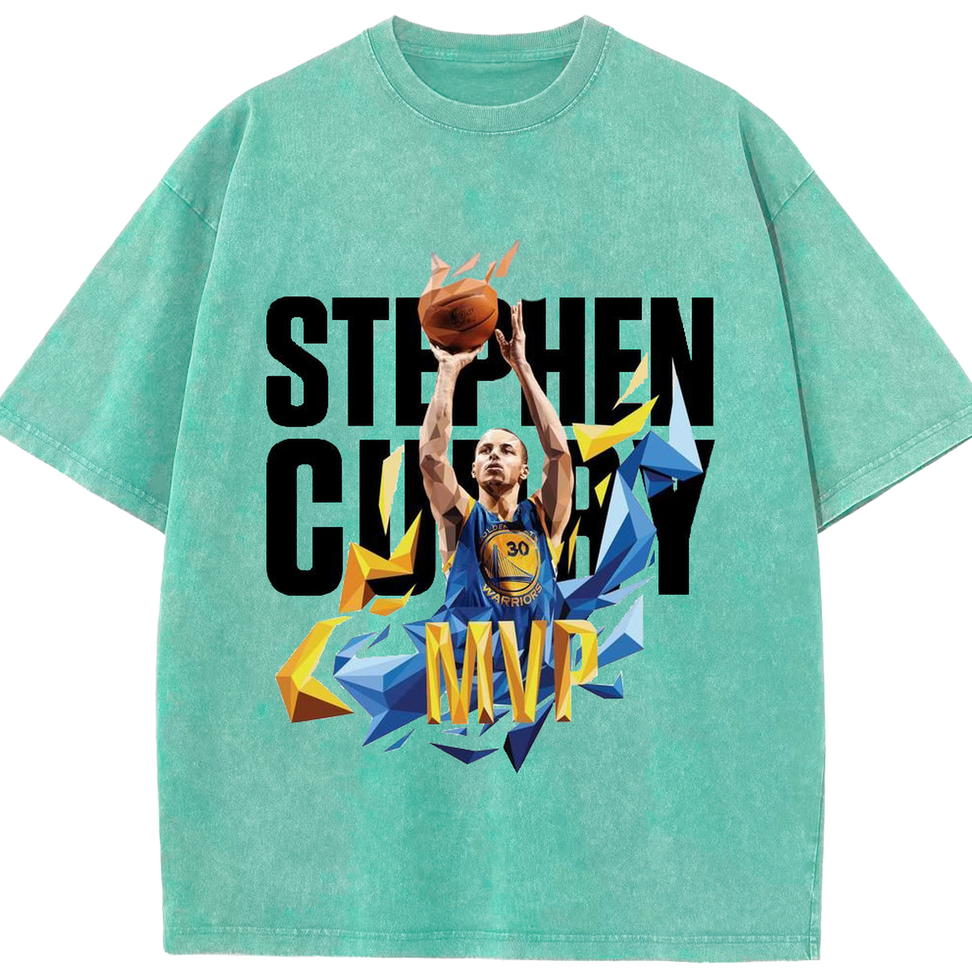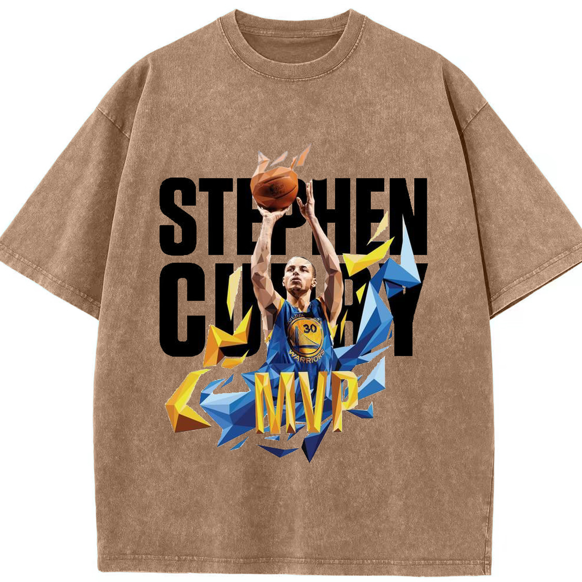 Stephen Curry MVP Polygon Art Shirt - Washed Vintage Look 230g Cotton Oversized T-Shirt With Front Heat Transfer Print – Soft, Lightweight, Stylish Fit – Comfortable Casual Wear For Sports & Everyday Use