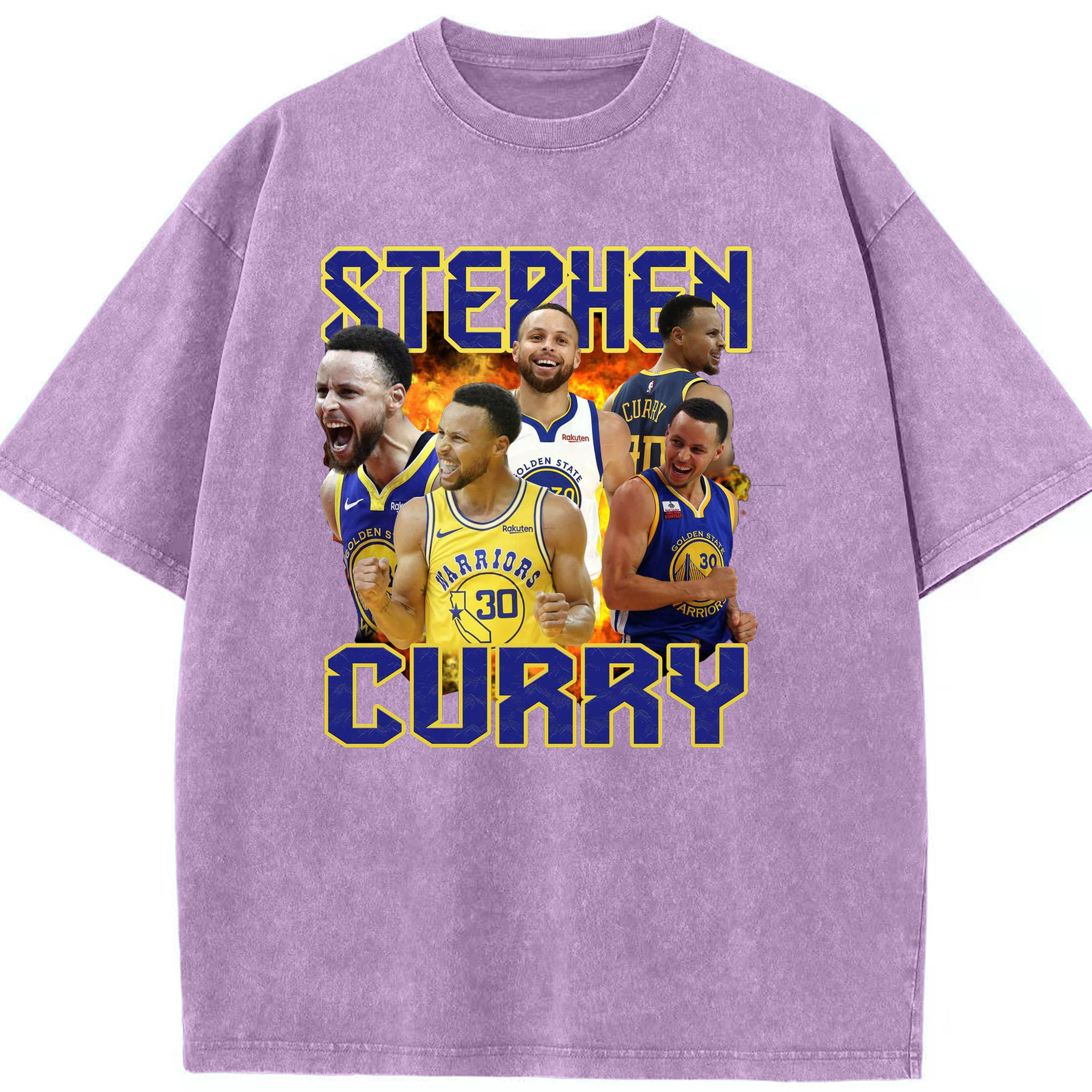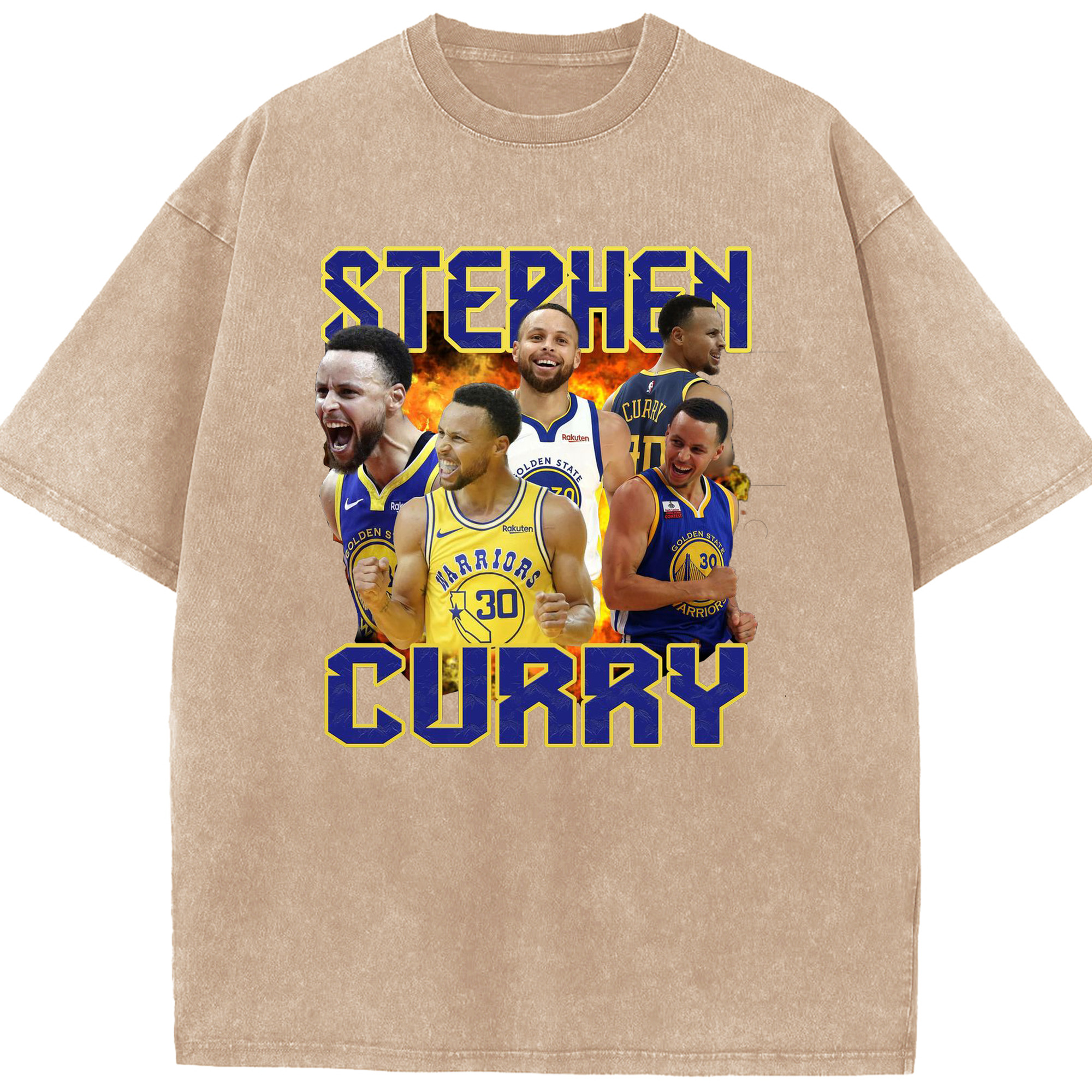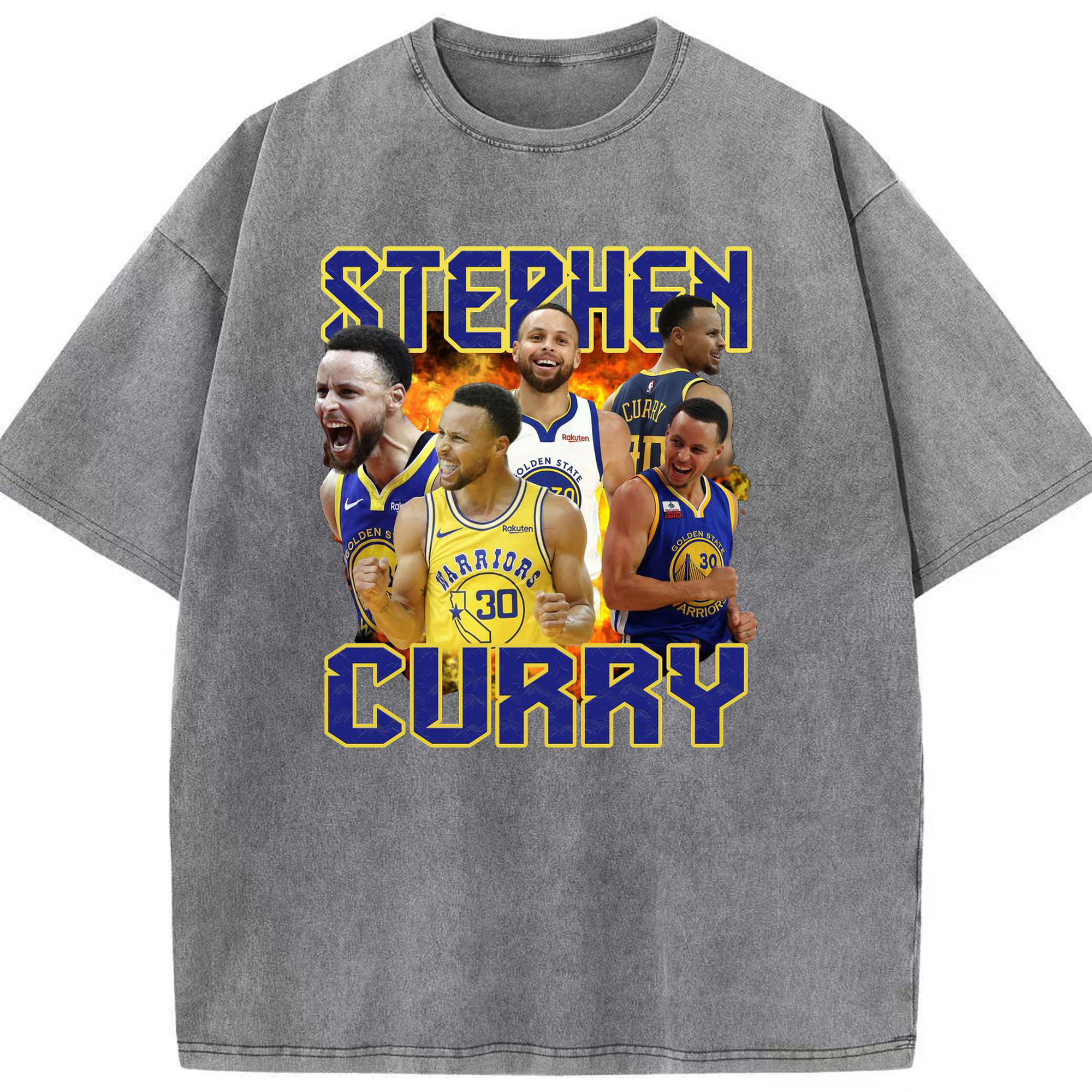 Stephen Curry Warrior Fire Shirt - Washed Vintage Look 230g Cotton Oversized T-Shirt With Front Heat Transfer Print – Soft, Lightweight, Stylish Fit – Comfortable Casual Wear For Sports & Everyday Use