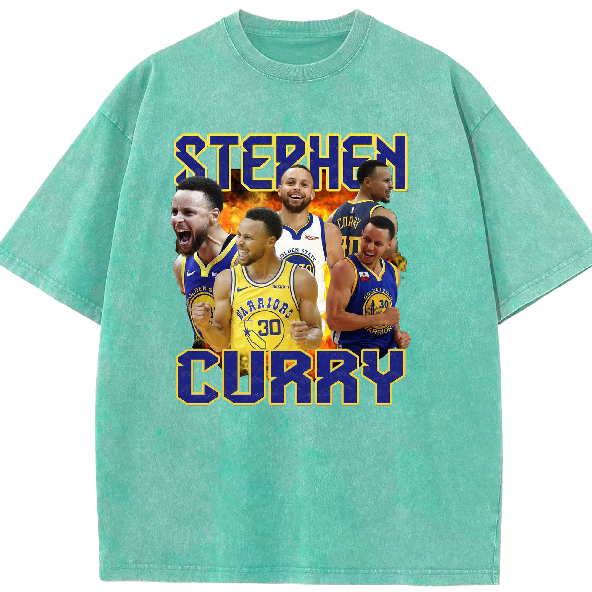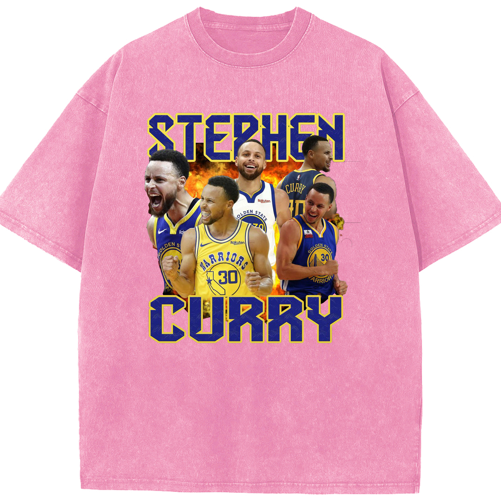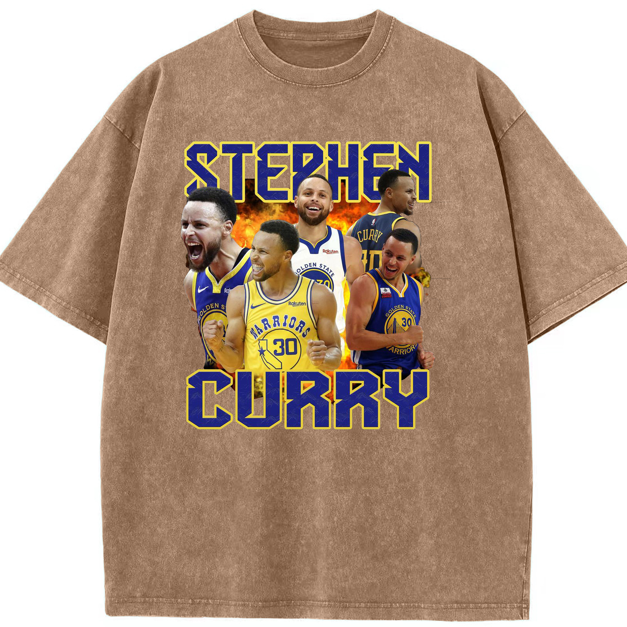 Stephen Curry Warrior Fire Shirt - Washed Vintage Look 230g Cotton Oversized T-Shirt With Front Heat Transfer Print – Soft, Lightweight, Stylish Fit – Comfortable Casual Wear For Sports & Everyday Use