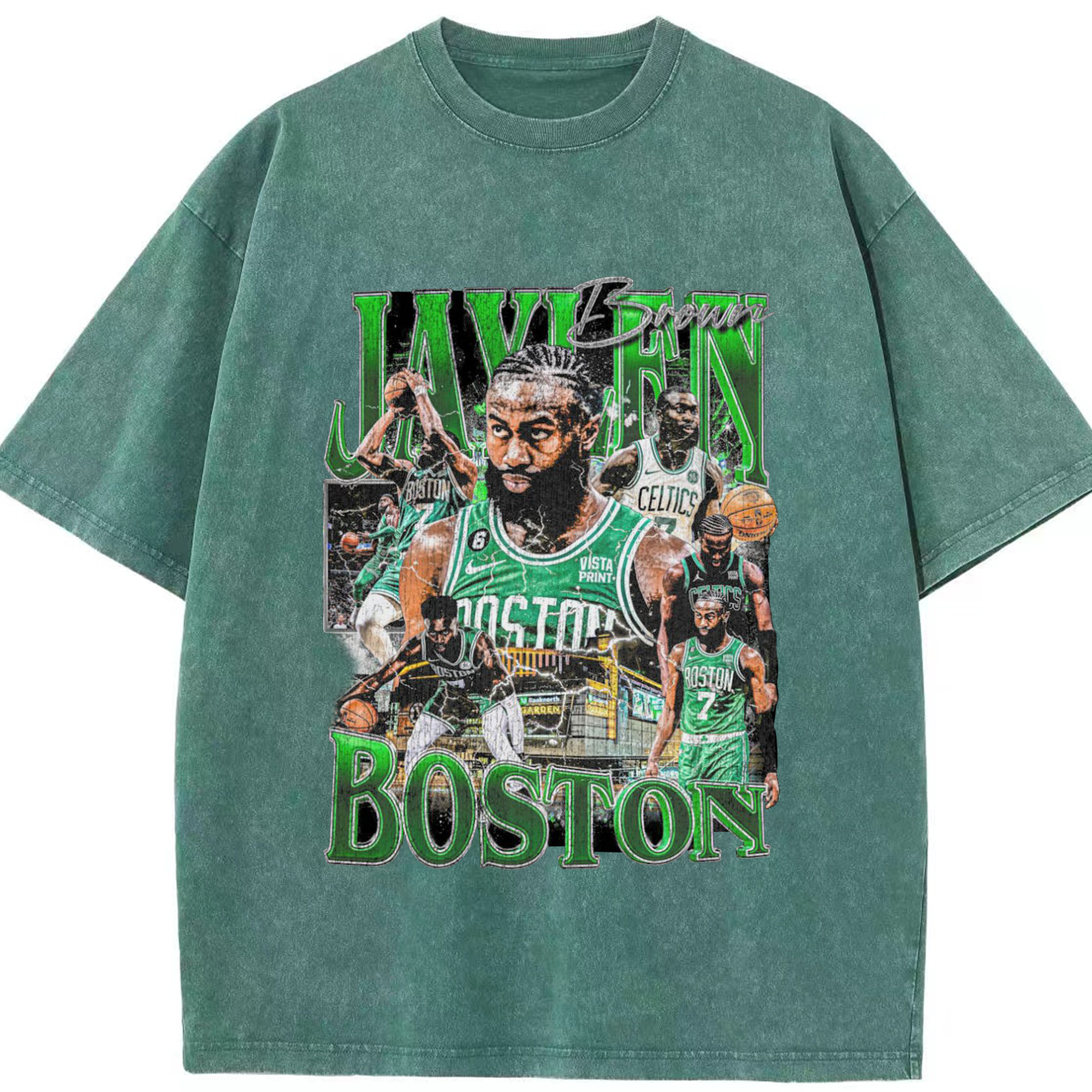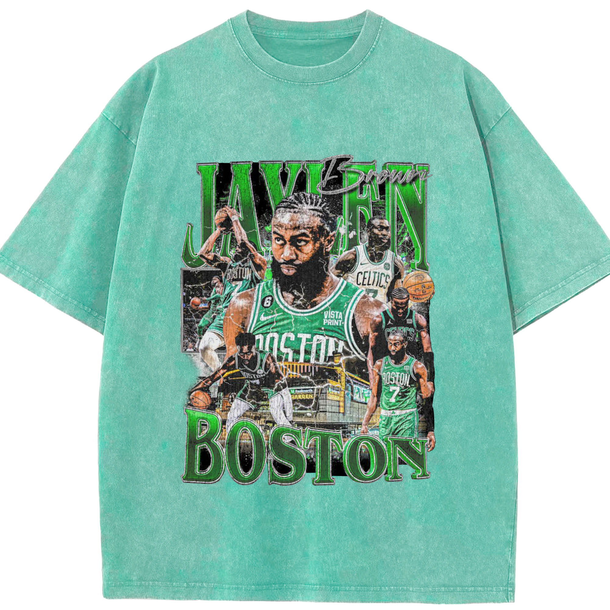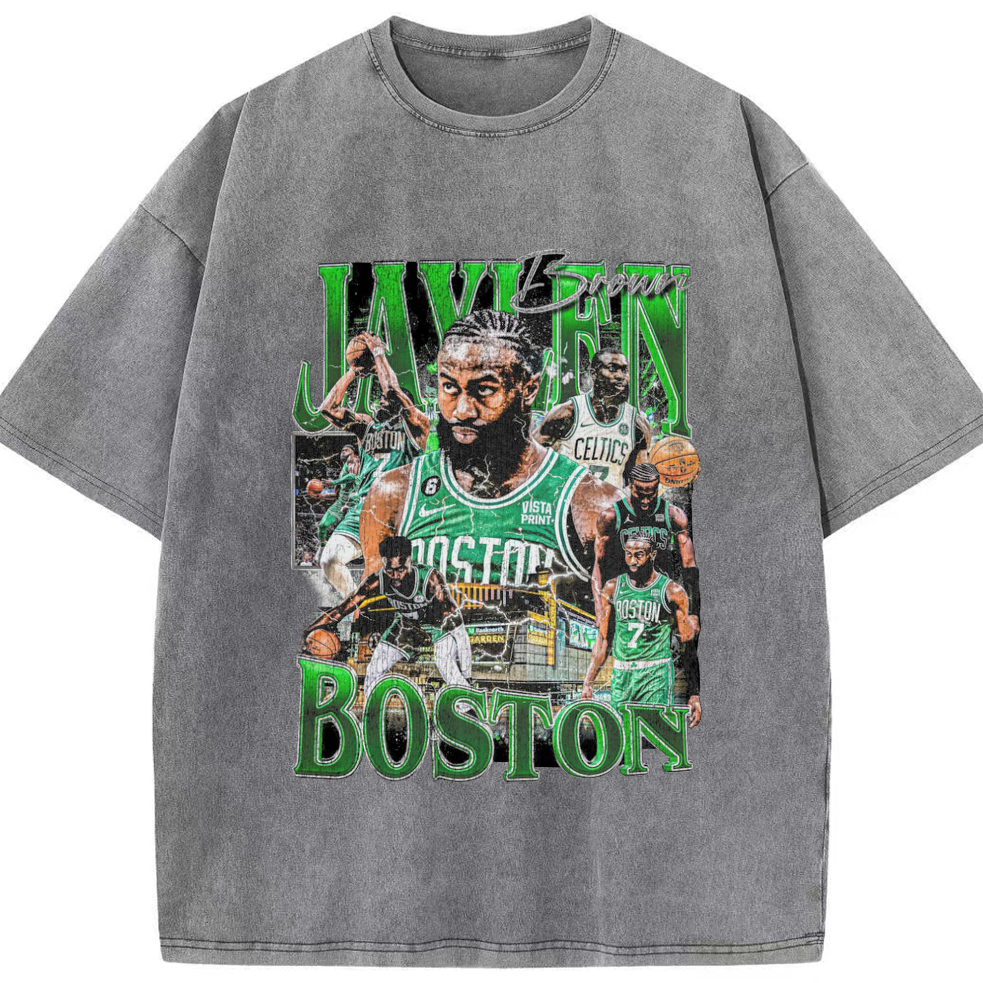 “TD Garden Demon” Jaylen Brown Vintage Shirt - Washed Vintage Look 230g Cotton Oversized T-Shirt With Front Heat Transfer Print – Soft, Lightweight, Stylish Fit – Comfortable Casual Wear For Sports & Everyday Use
