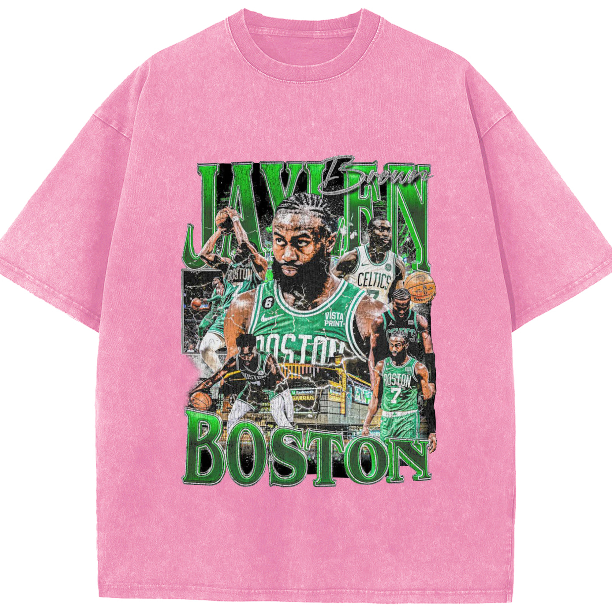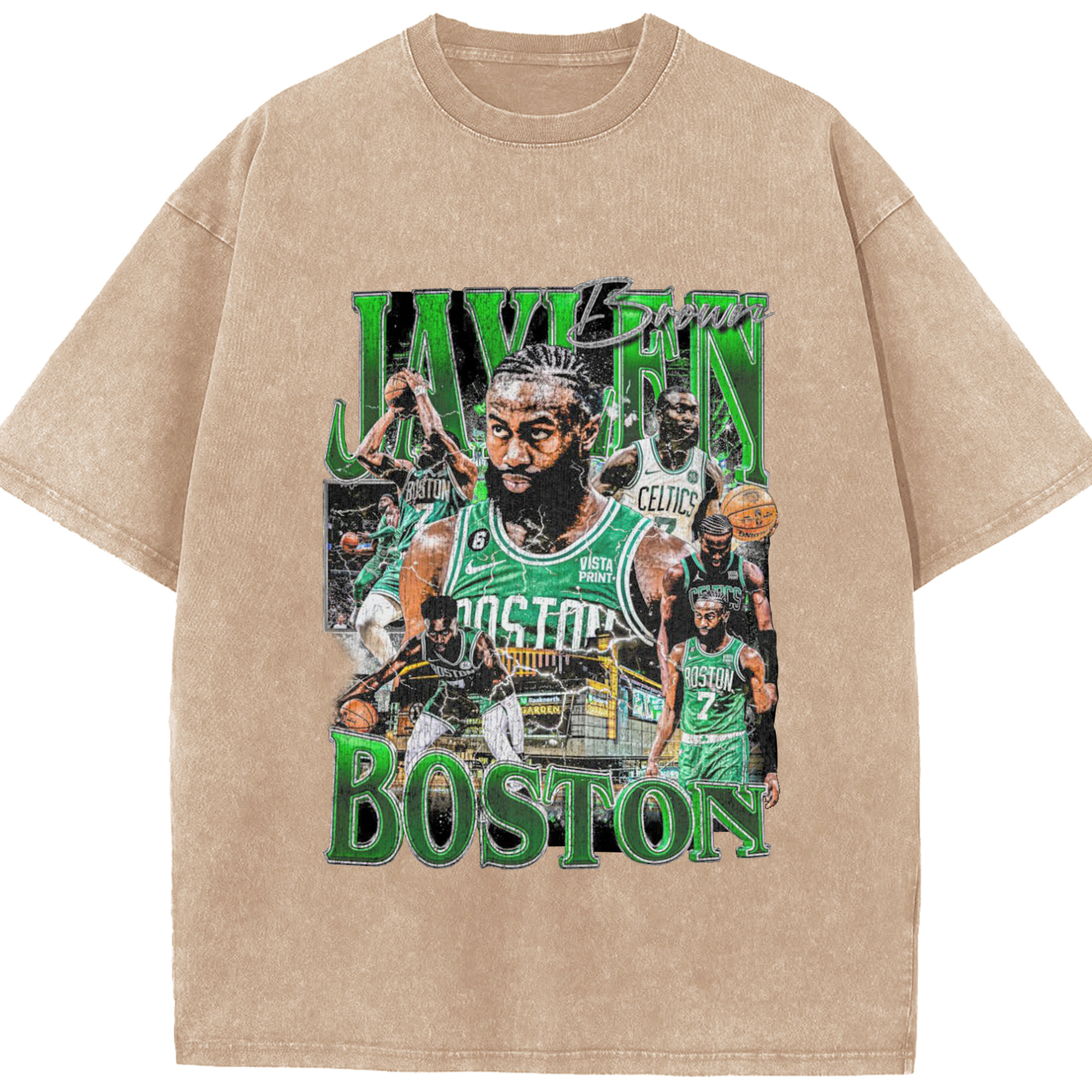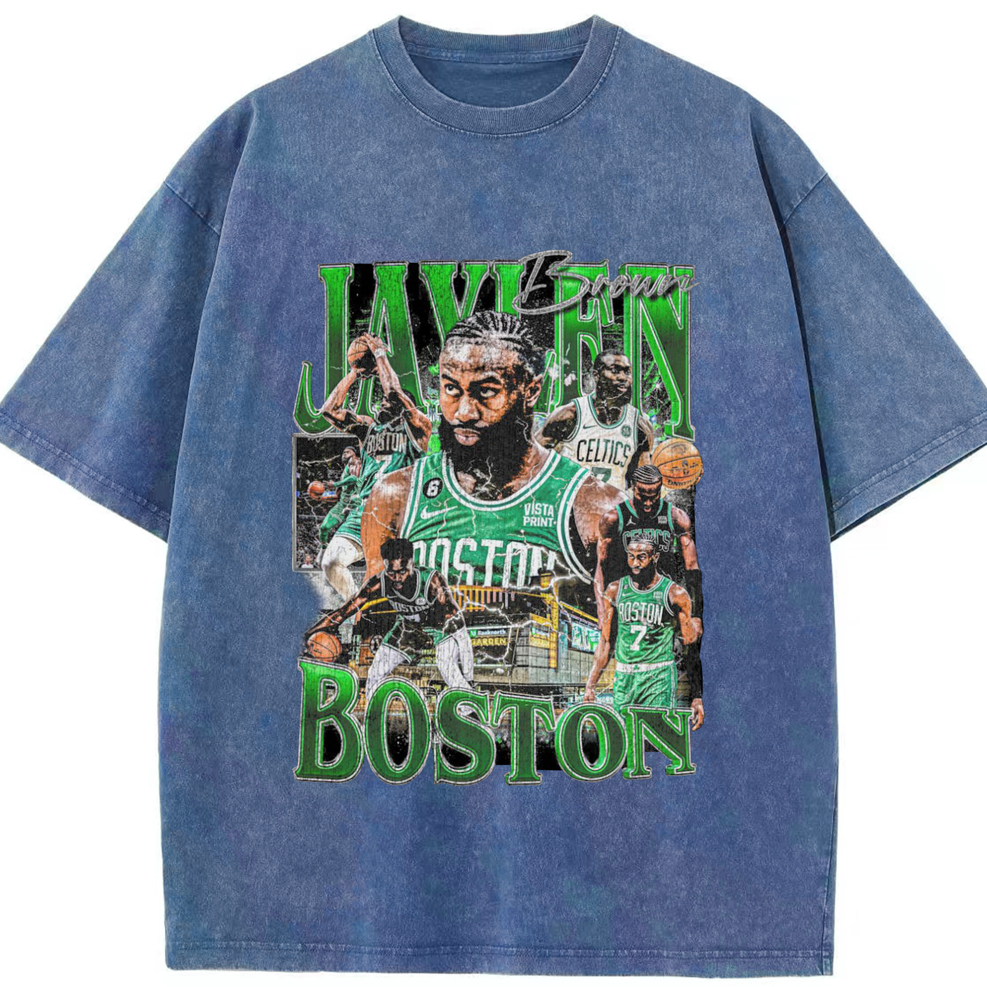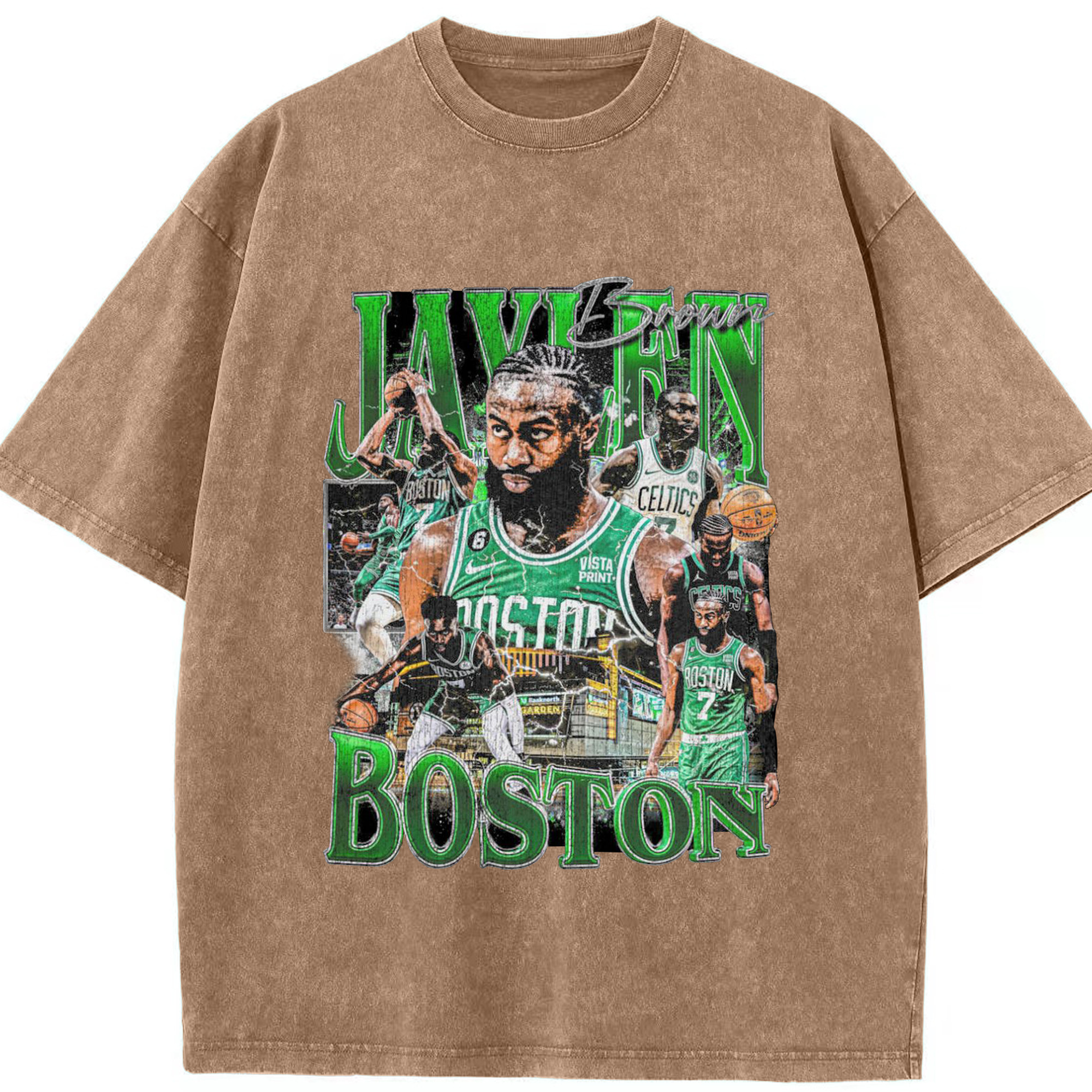 “TD Garden Demon” Jaylen Brown Vintage Shirt - Washed Vintage Look 230g Cotton Oversized T-Shirt With Front Heat Transfer Print – Soft, Lightweight, Stylish Fit – Comfortable Casual Wear For Sports & Everyday Use
