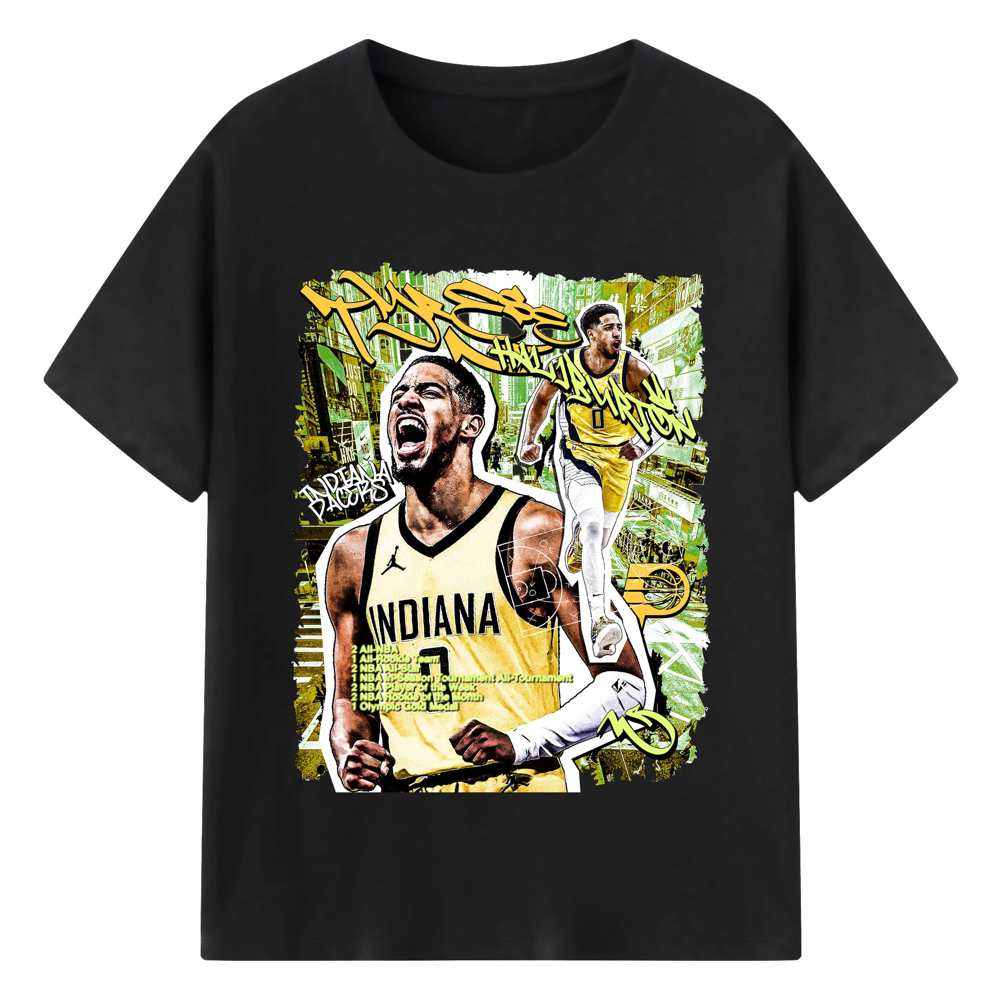 Tyrese Haliburton Career highlights Time Comic Style Shirt - 180g Cotton T-Shirt With Front Heat Transfer Print – Soft, Lightweight, Fitted Design – Comfortable Casual Wear For Sports & Everyday Use