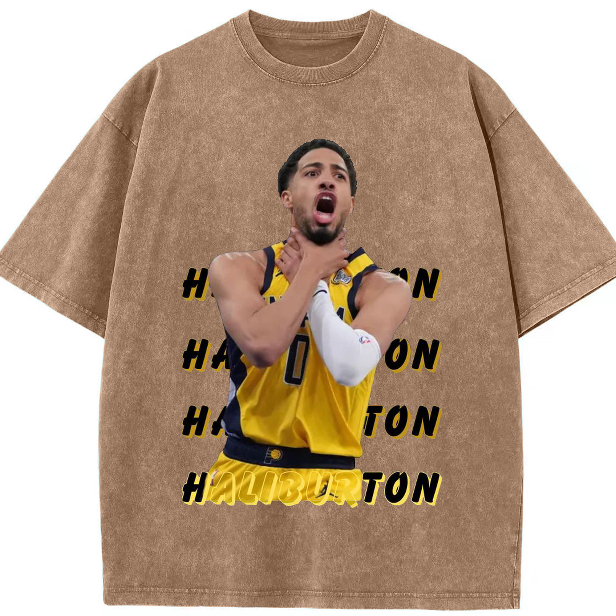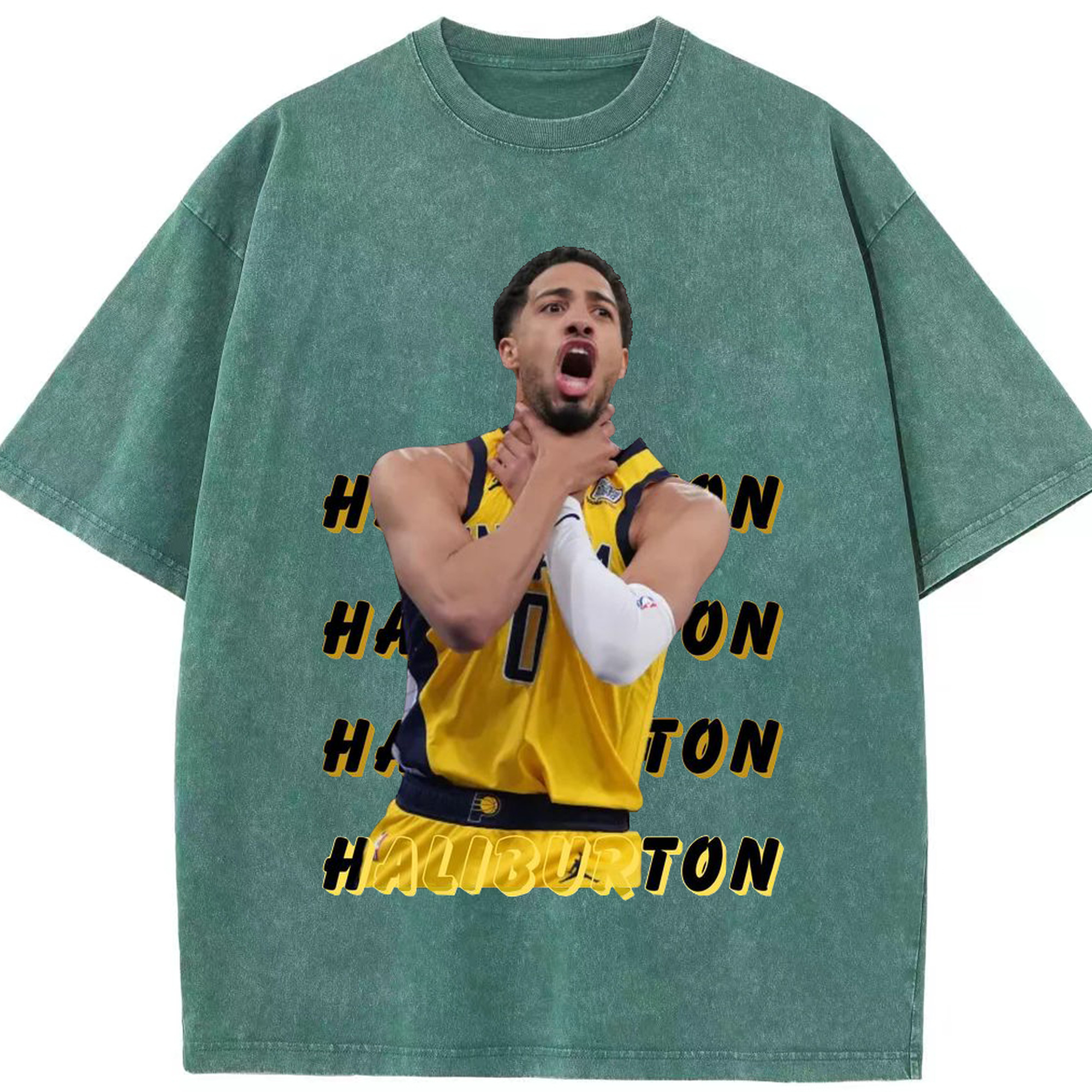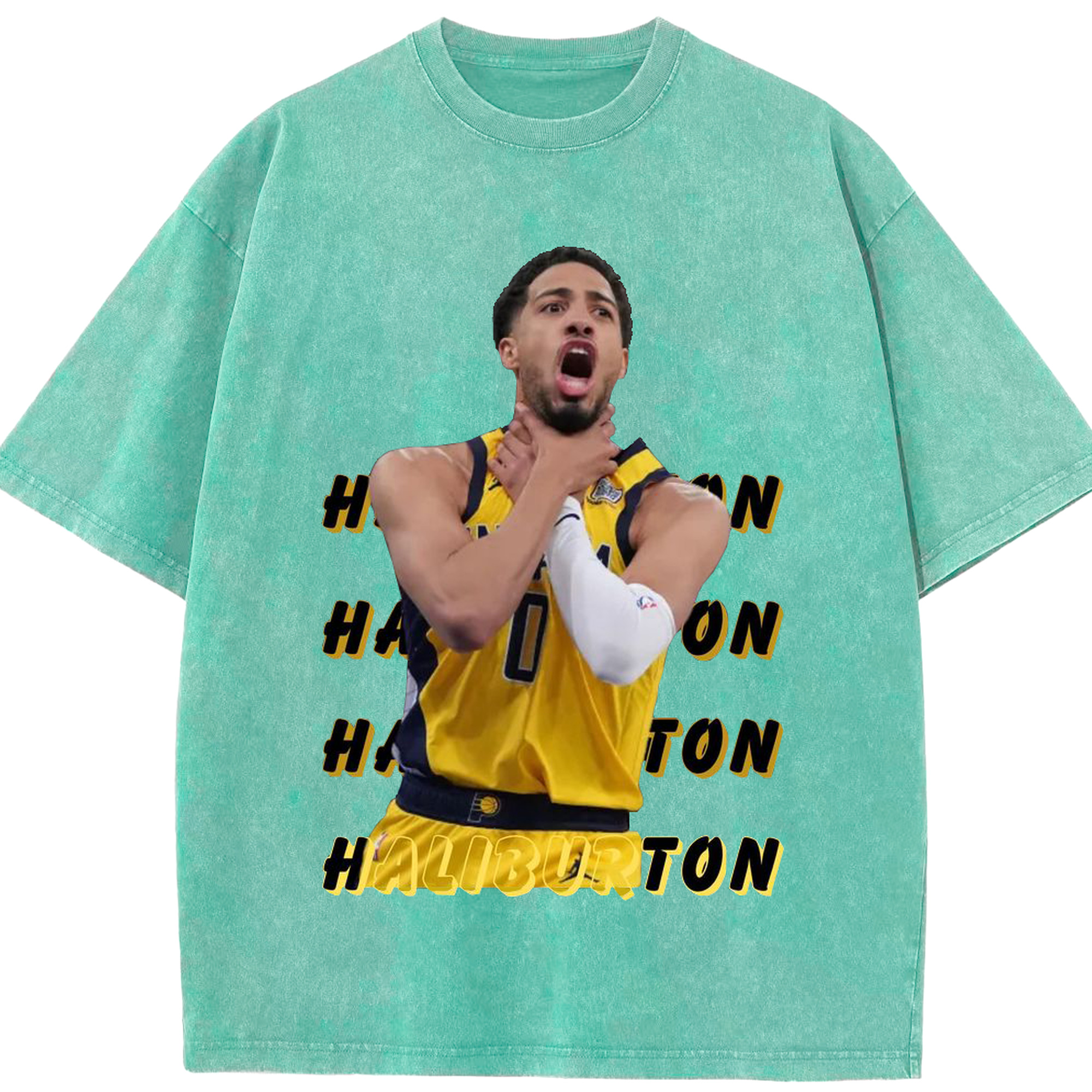 Tyrese Haliburton's neck-choking celebration - Washed Vintage Look 230g Cotton Oversized T-Shirt With Front Heat Transfer Print – Soft, Lightweight, Stylish Fit – Comfortable Casual Wear For Sports & Everyday Use