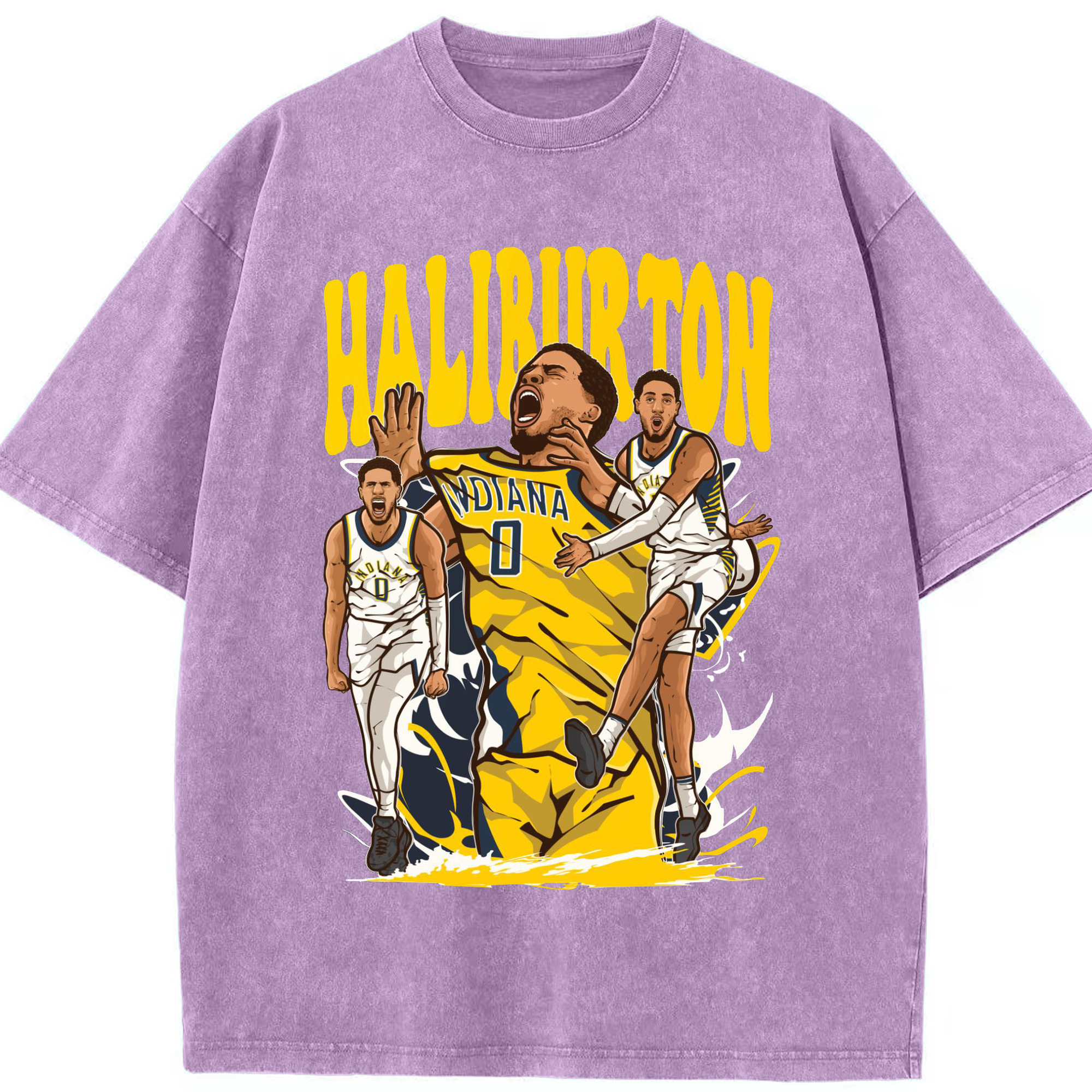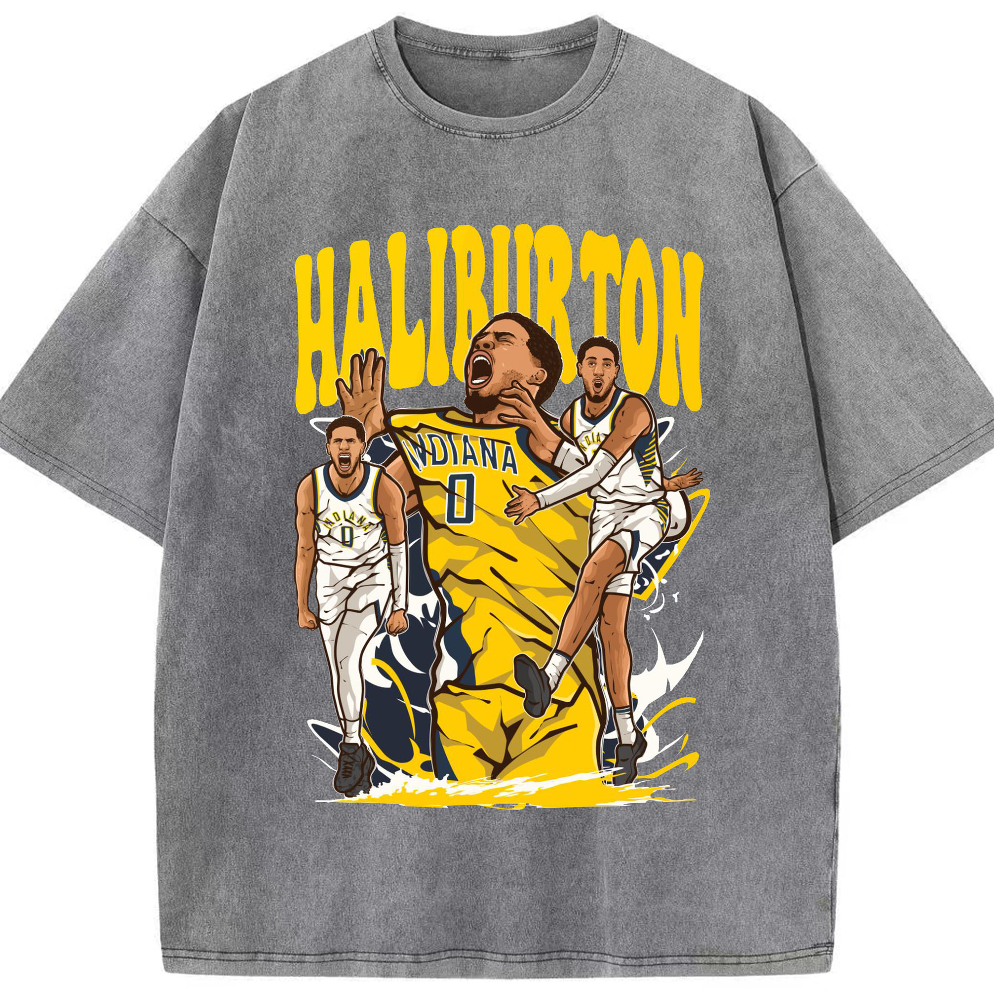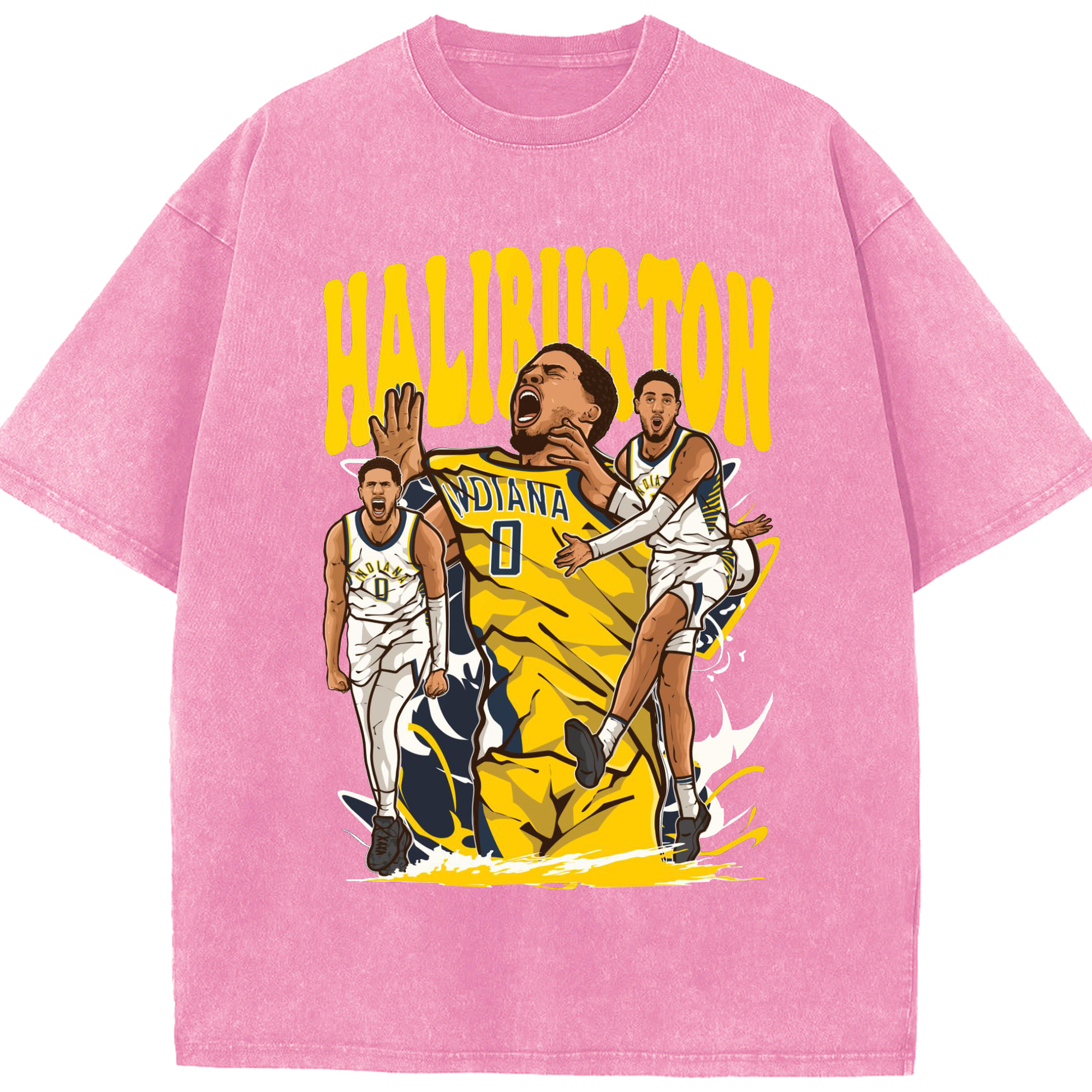 Tyrese Halliburton comic book style - Washed Vintage Look 230g Cotton Oversized T-Shirt With Front Heat Transfer Print – Soft, Lightweight, Stylish Fit – Comfortable Casual Wear For Sports & Everyday Use