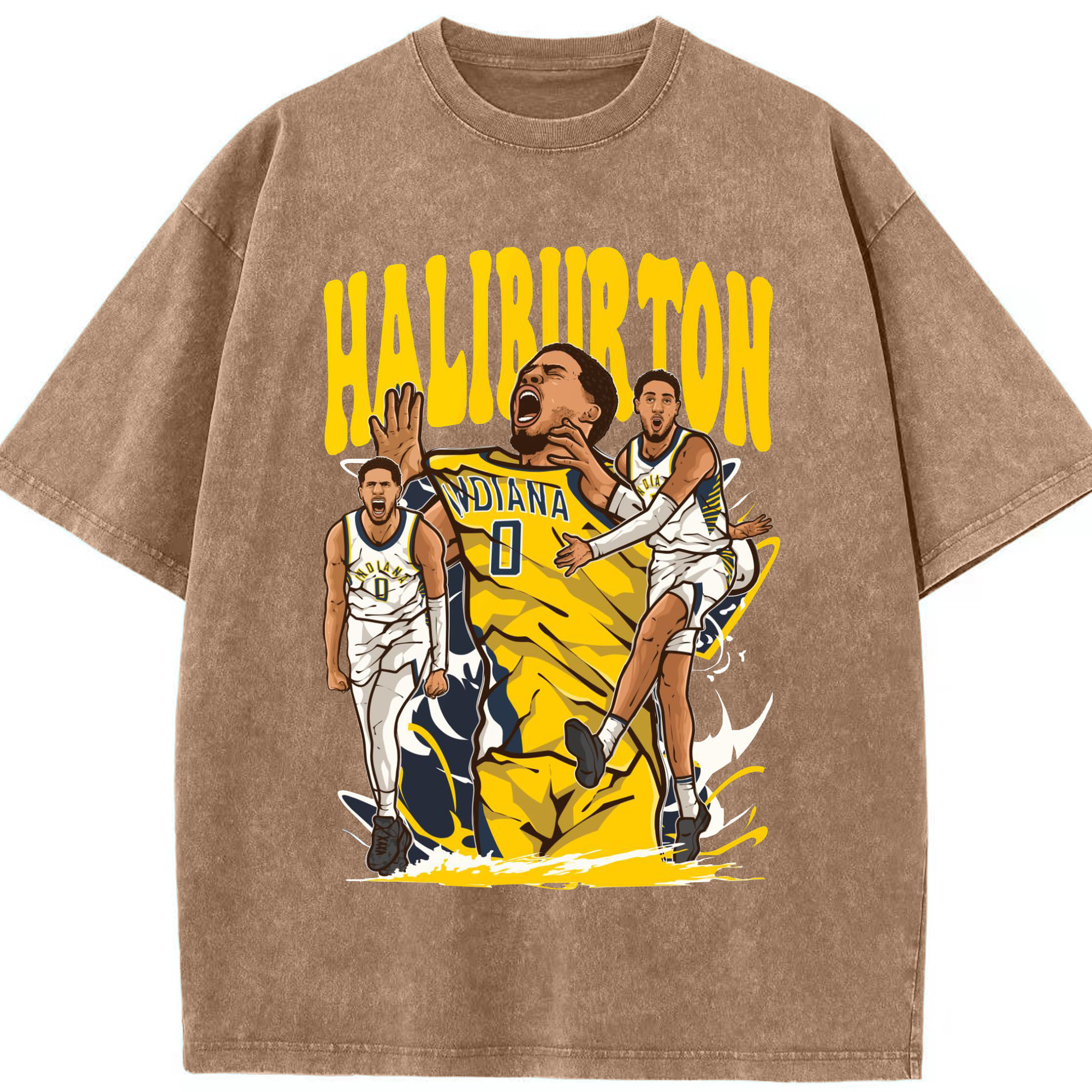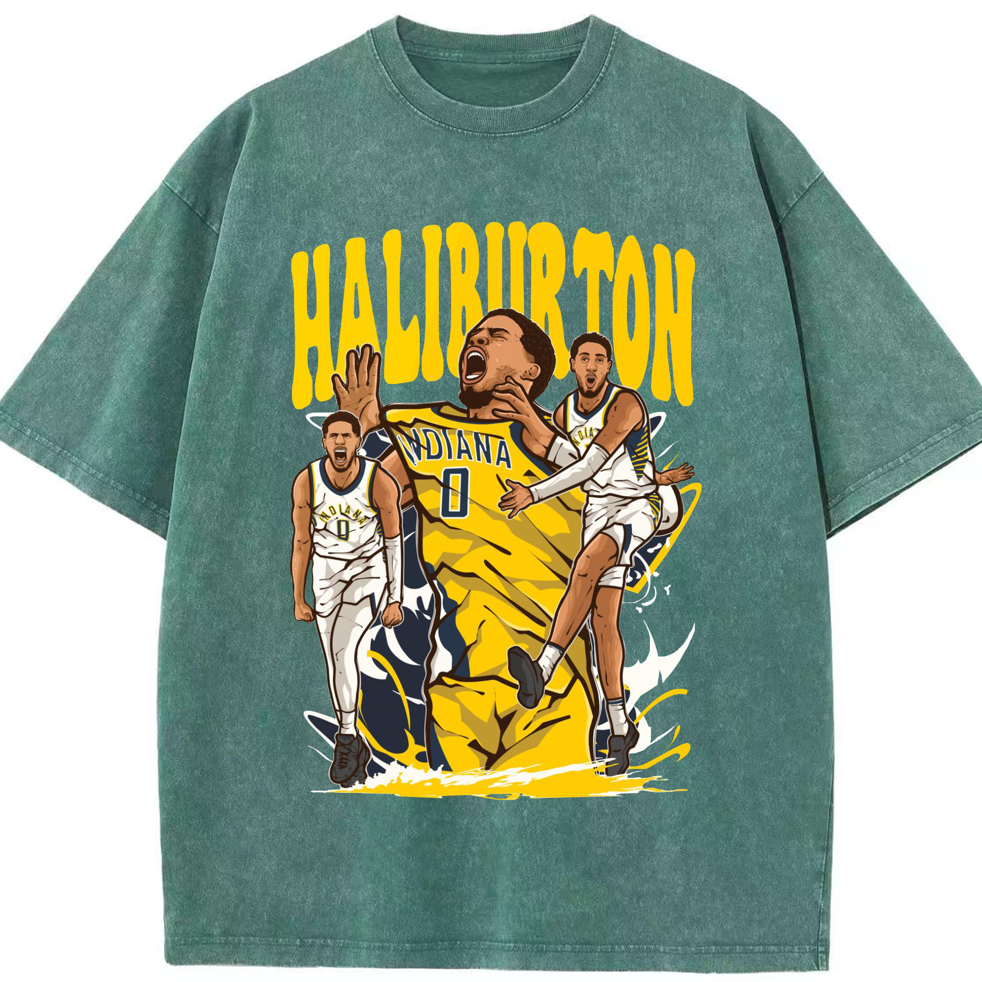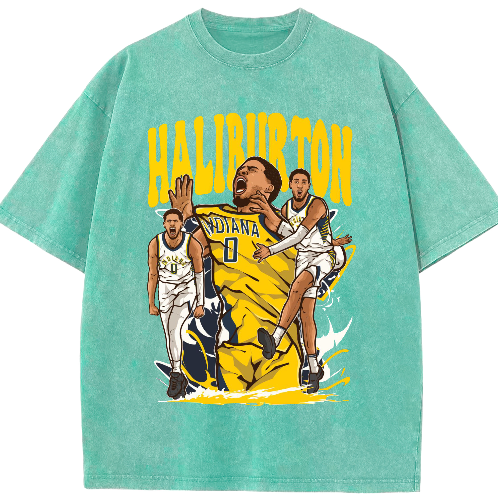 Tyrese Halliburton comic book style - Washed Vintage Look 230g Cotton Oversized T-Shirt With Front Heat Transfer Print – Soft, Lightweight, Stylish Fit – Comfortable Casual Wear For Sports & Everyday Use