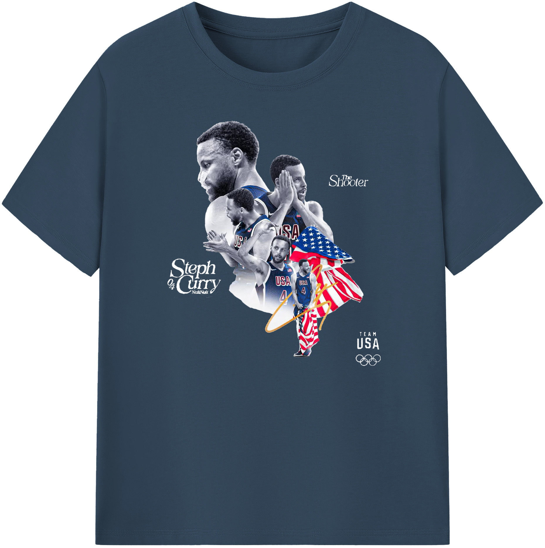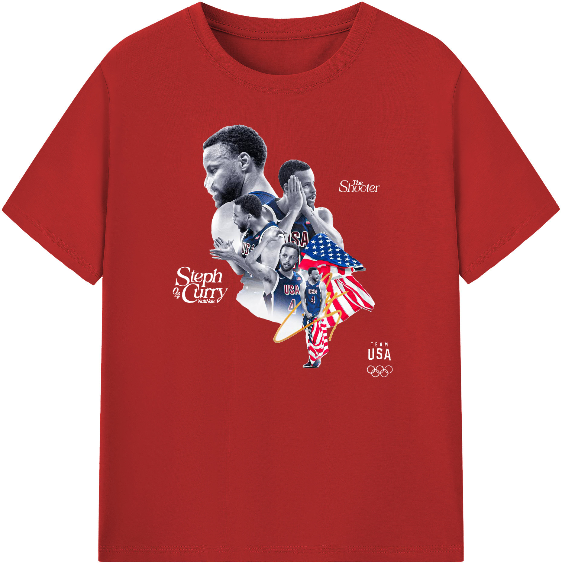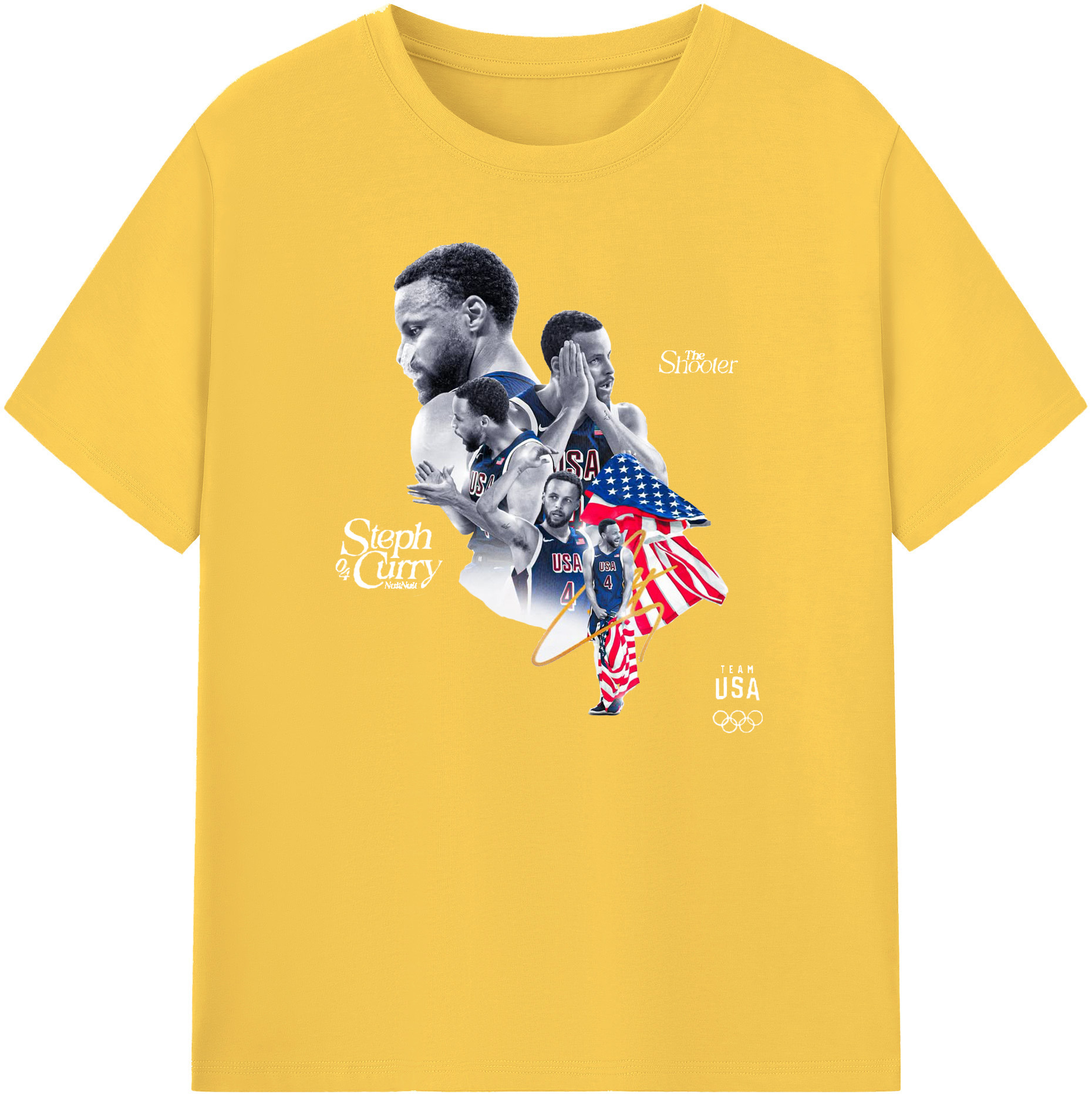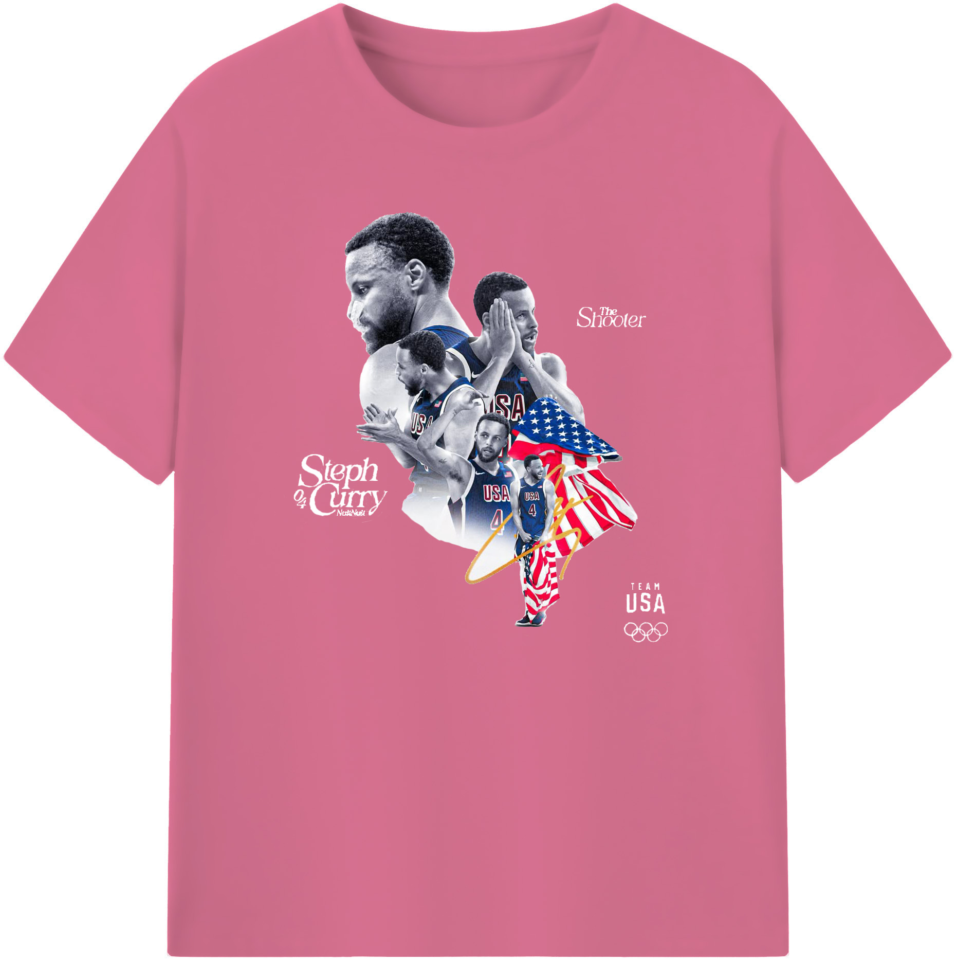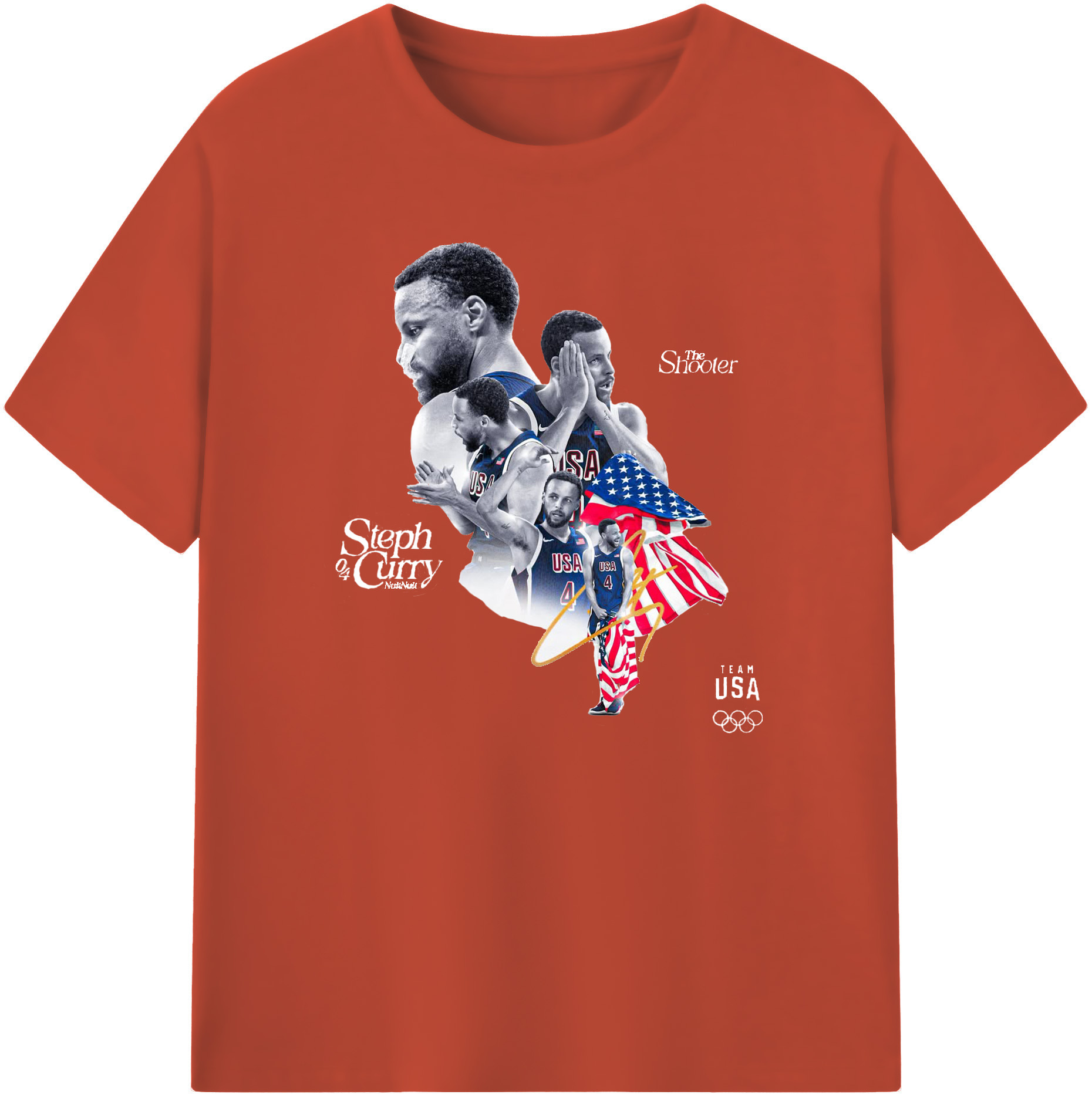 USA Basketball Curry #4 Shirt - 180g Cotton T-Shirt With Front Heat Transfer Print – Soft, Lightweight, Fitted Design – Comfortable Casual Wear For Sports & Everyday Use