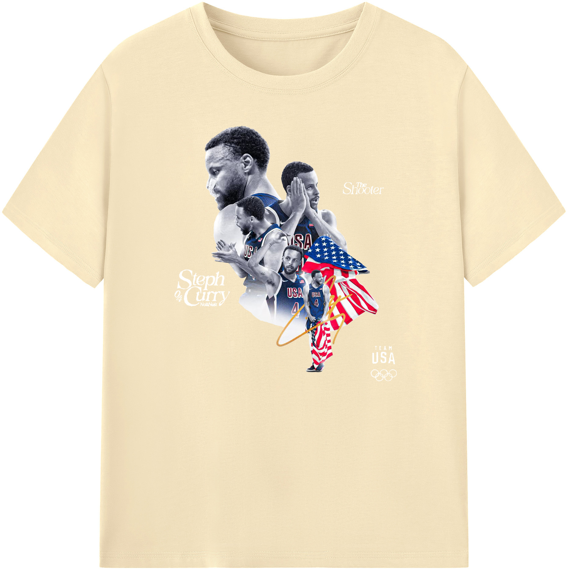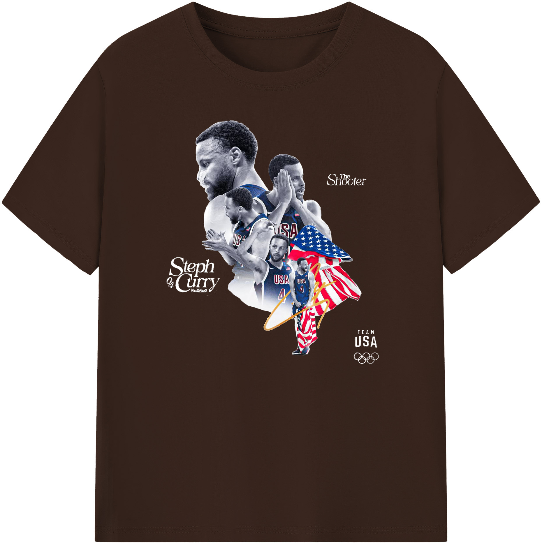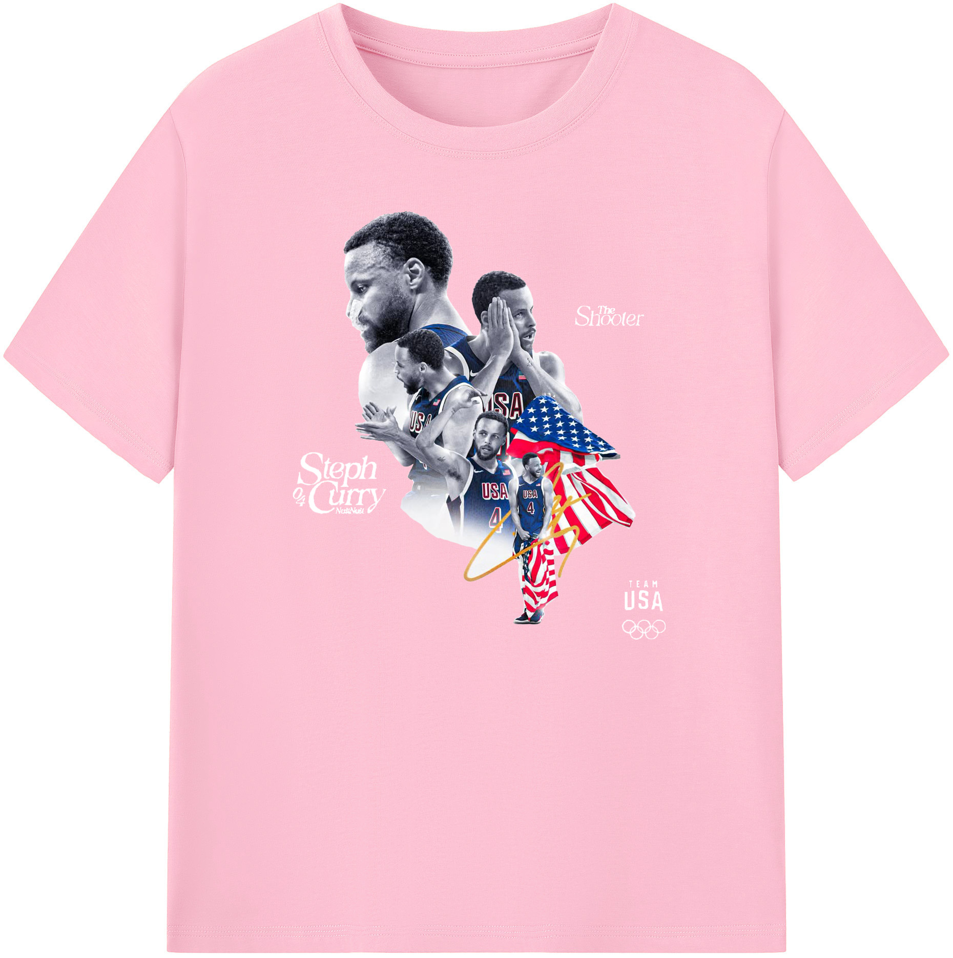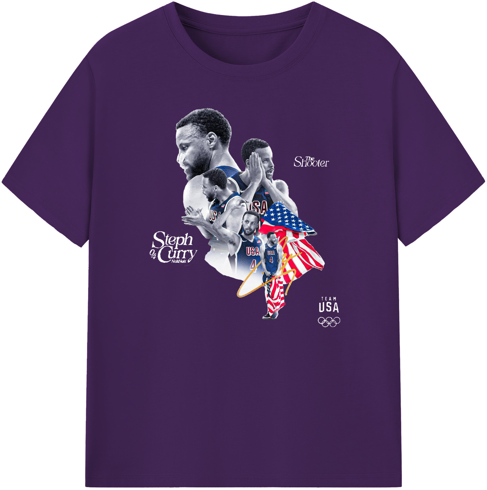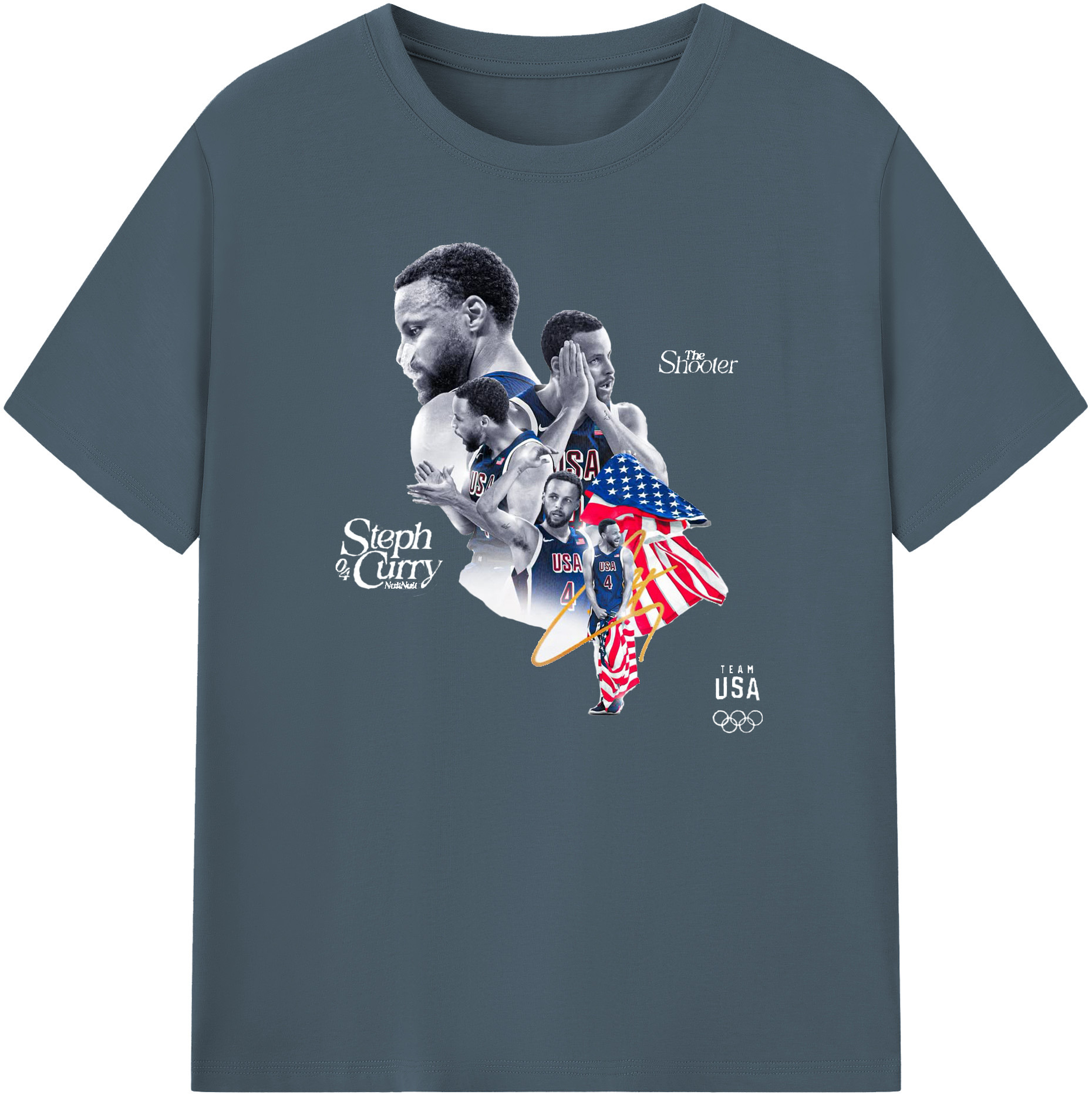 USA Basketball Curry #4 Shirt - 180g Cotton T-Shirt With Front Heat Transfer Print – Soft, Lightweight, Fitted Design – Comfortable Casual Wear For Sports & Everyday Use