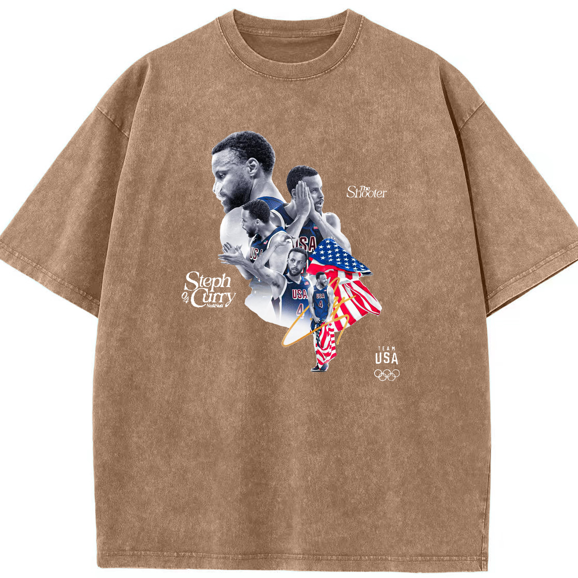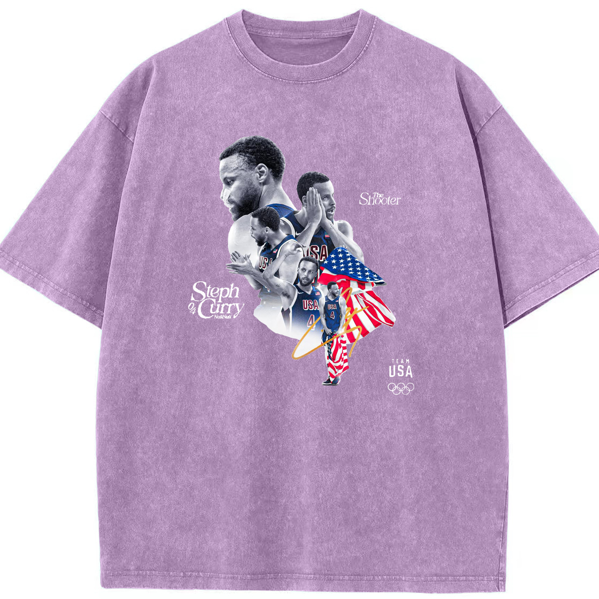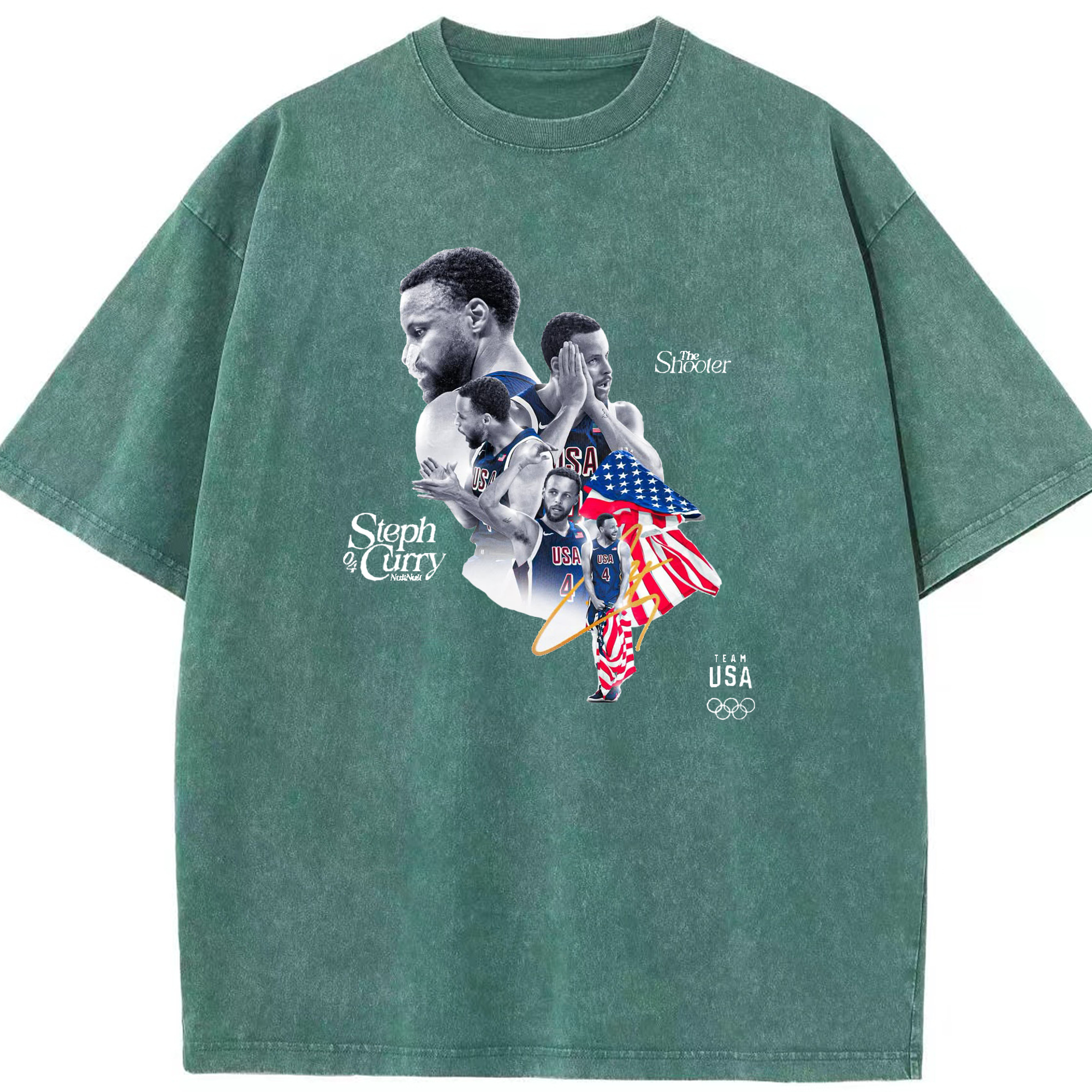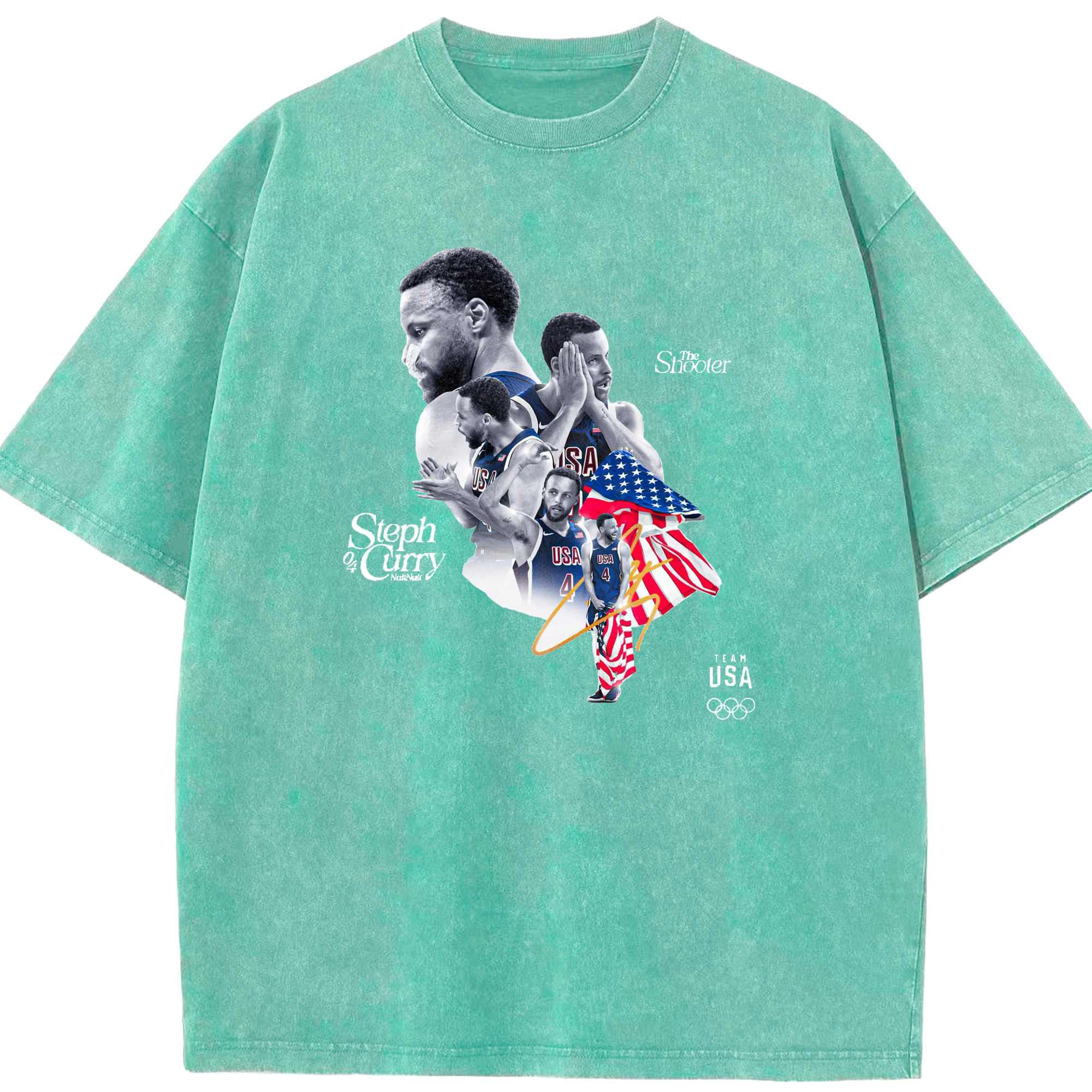 USA Basketball Curry #4 Shirt - Washed Vintage Look 230g Cotton Oversized T-Shirt With Front Heat Transfer Print – Soft, Lightweight, Stylish Fit – Comfortable Casual Wear For Sports & Everyday Use