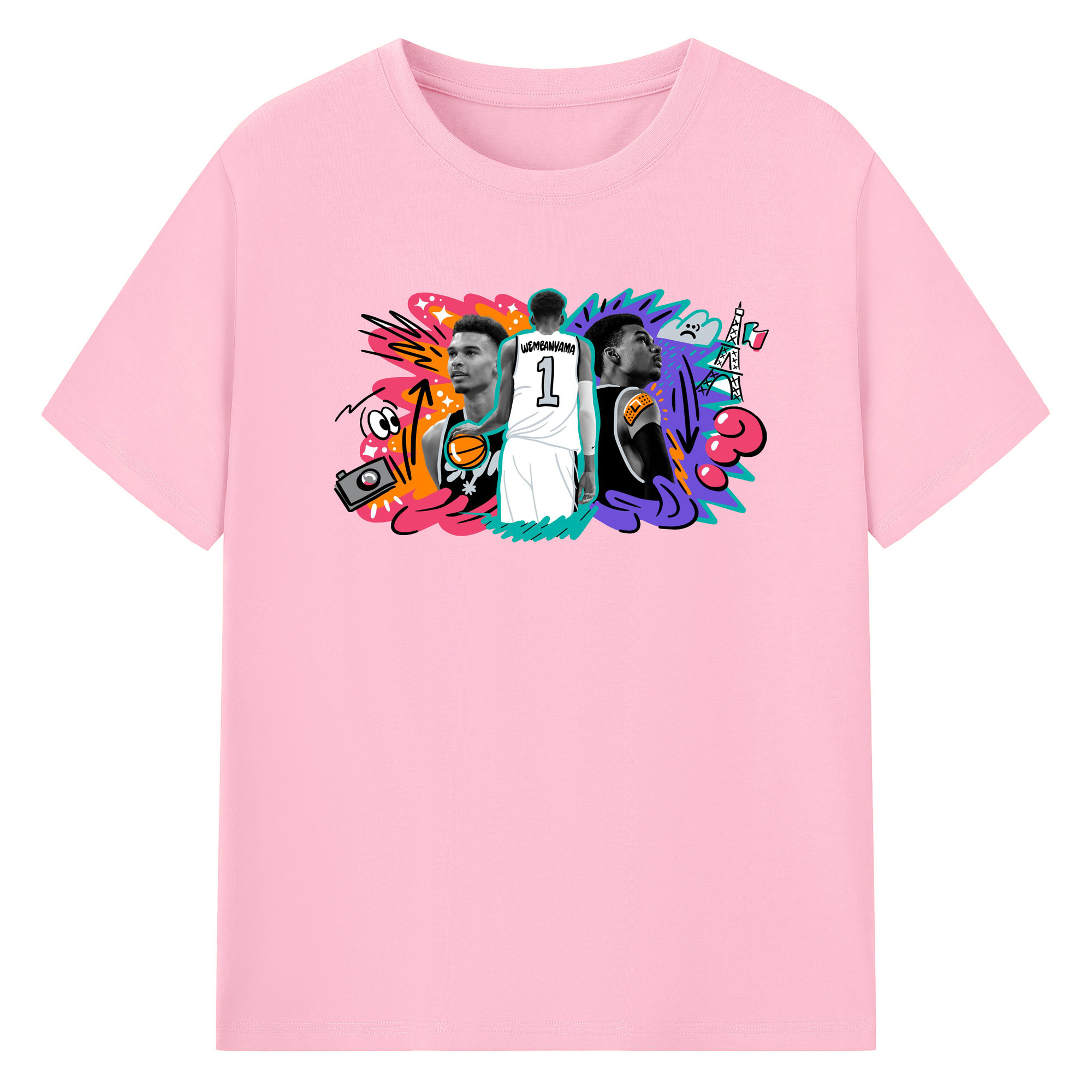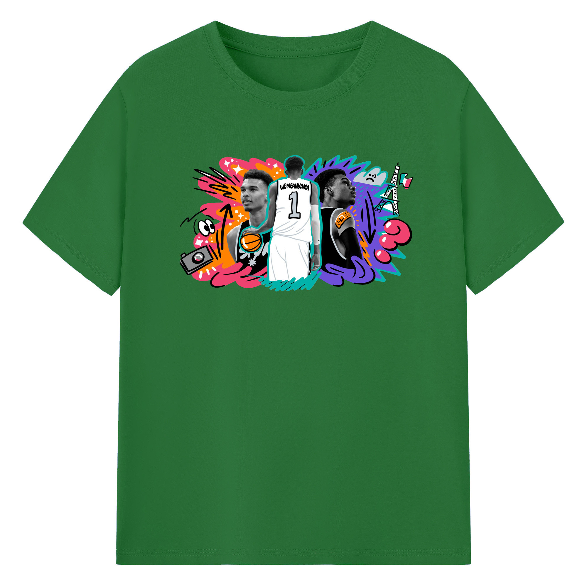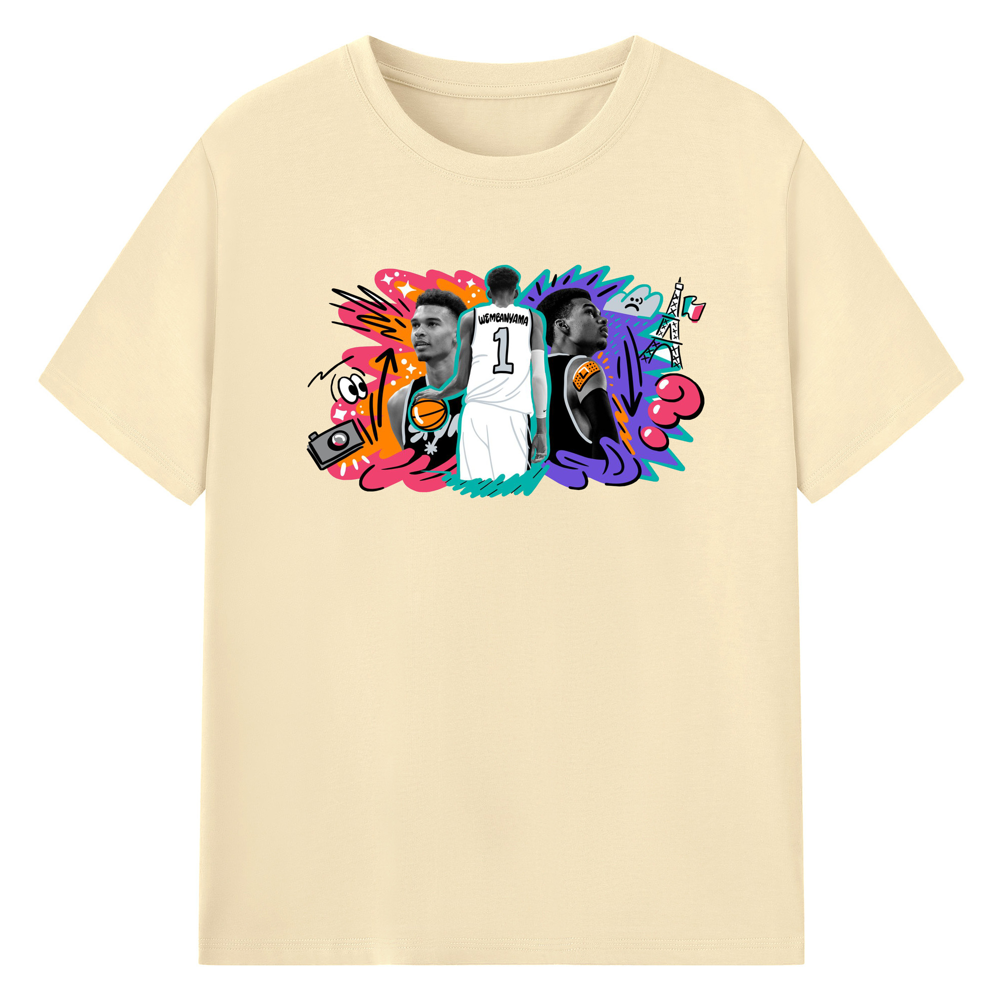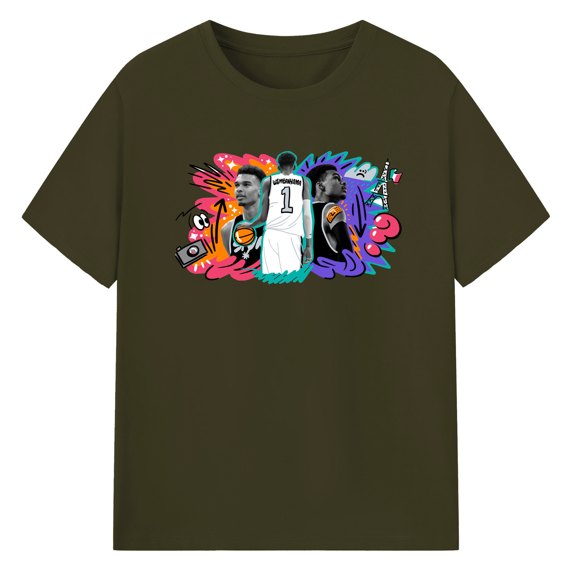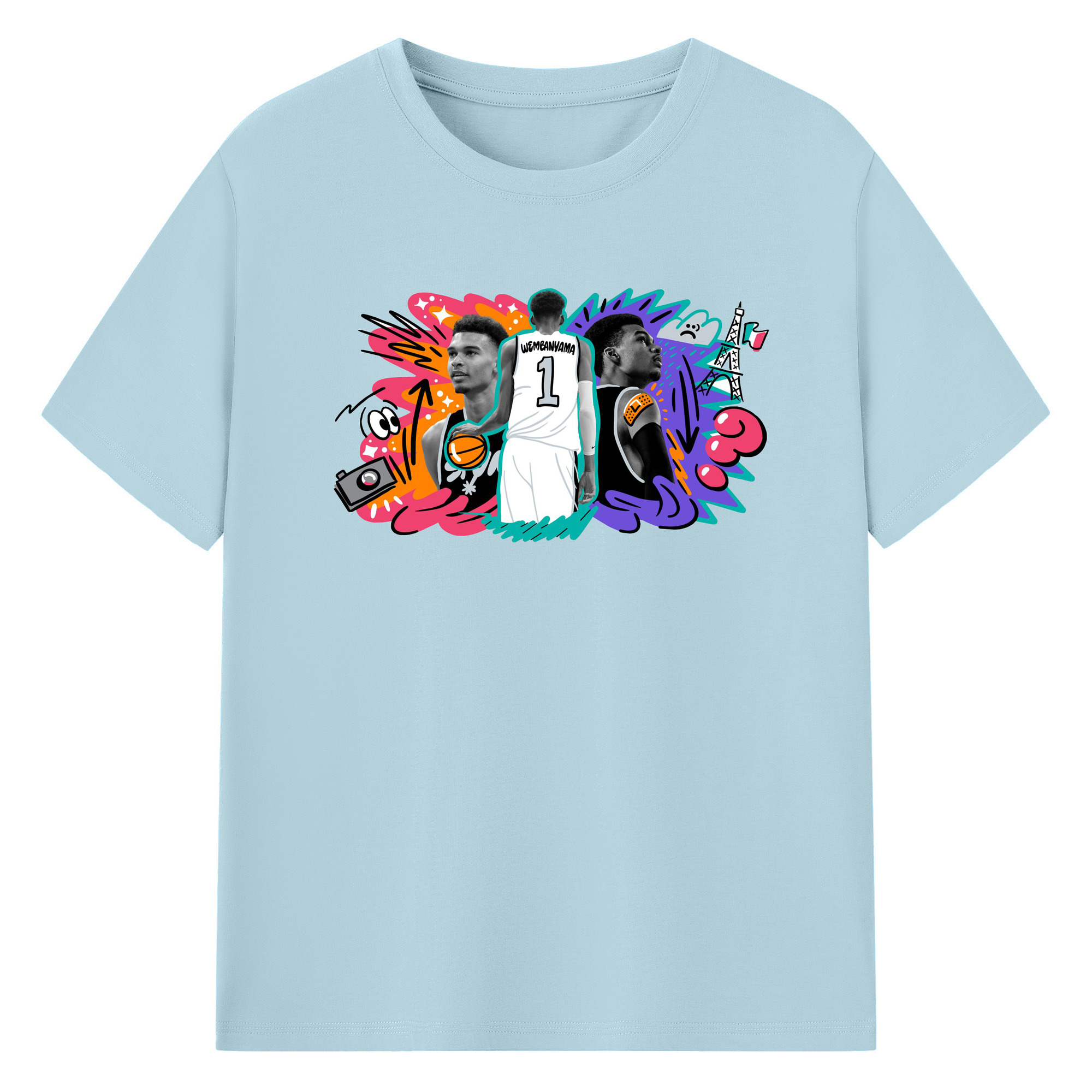 Victor Wembanyama #1 Cartoon graffiti style Shirt - 180g Cotton T-Shirt With Front Heat Transfer Print – Soft, Lightweight, Fitted Design – Comfortable Casual Wear For Sports & Everyday Use