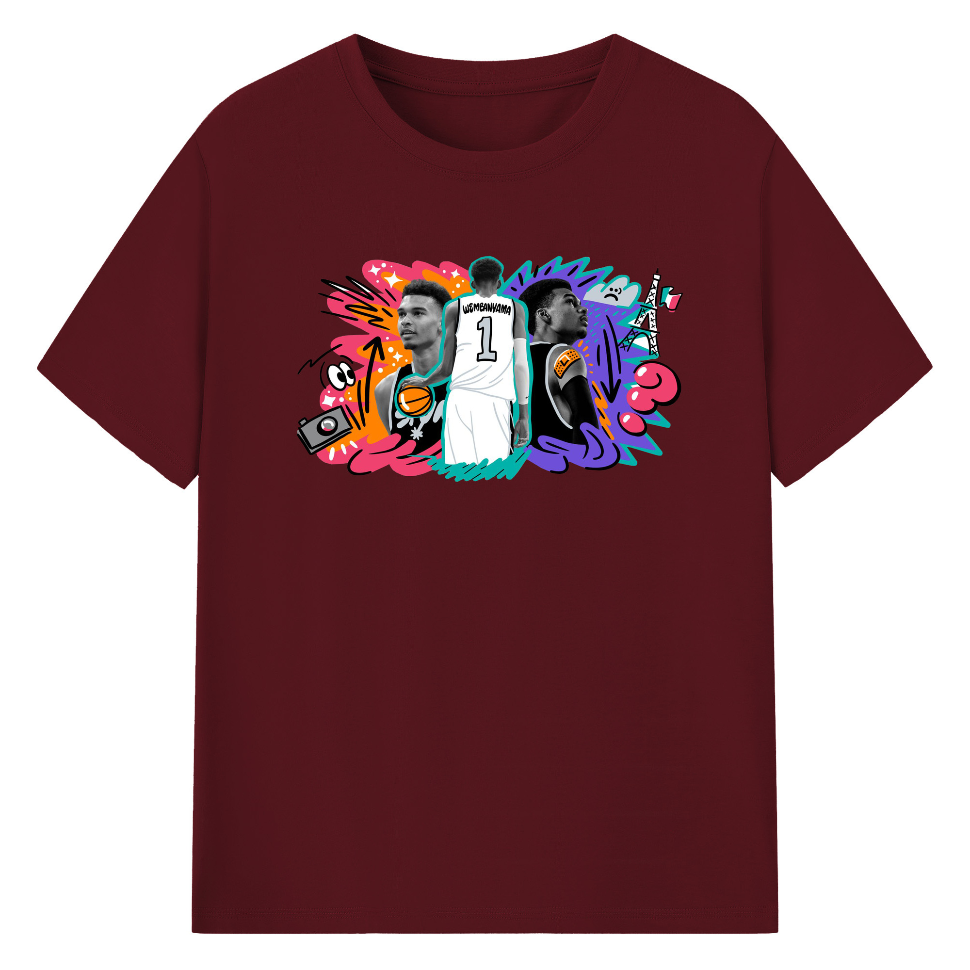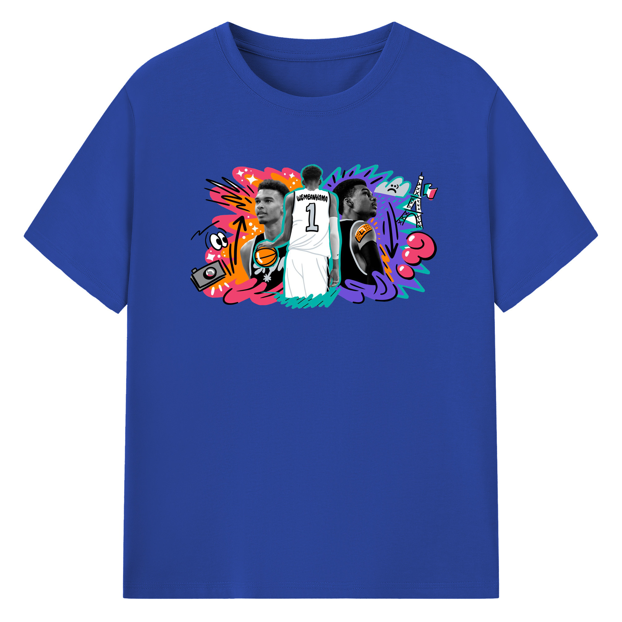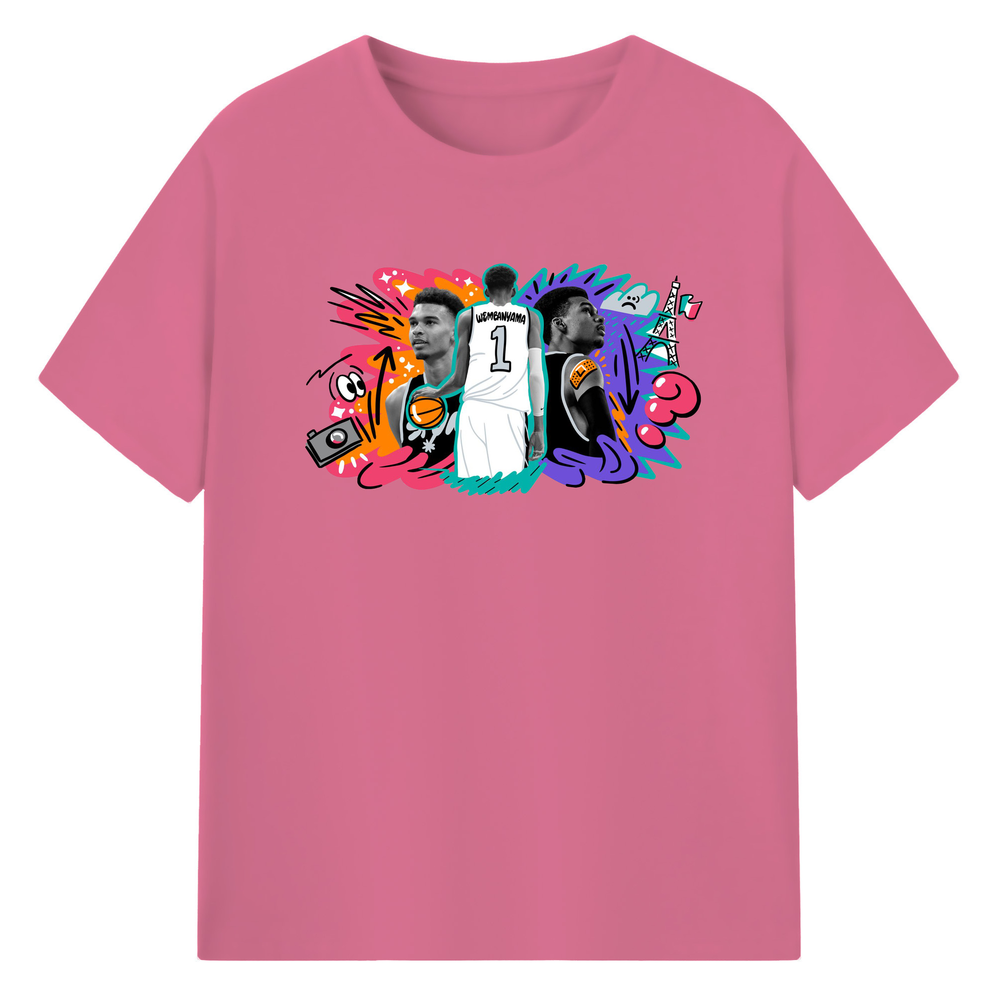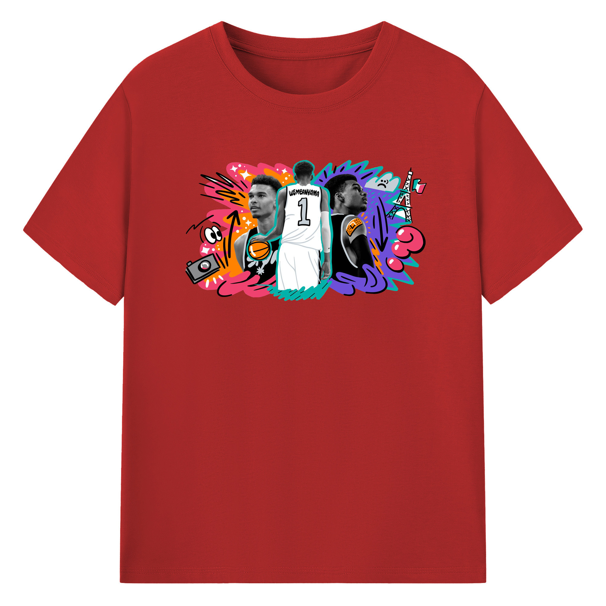 Victor Wembanyama #1 Cartoon graffiti style Shirt - 180g Cotton T-Shirt With Front Heat Transfer Print – Soft, Lightweight, Fitted Design – Comfortable Casual Wear For Sports & Everyday Use