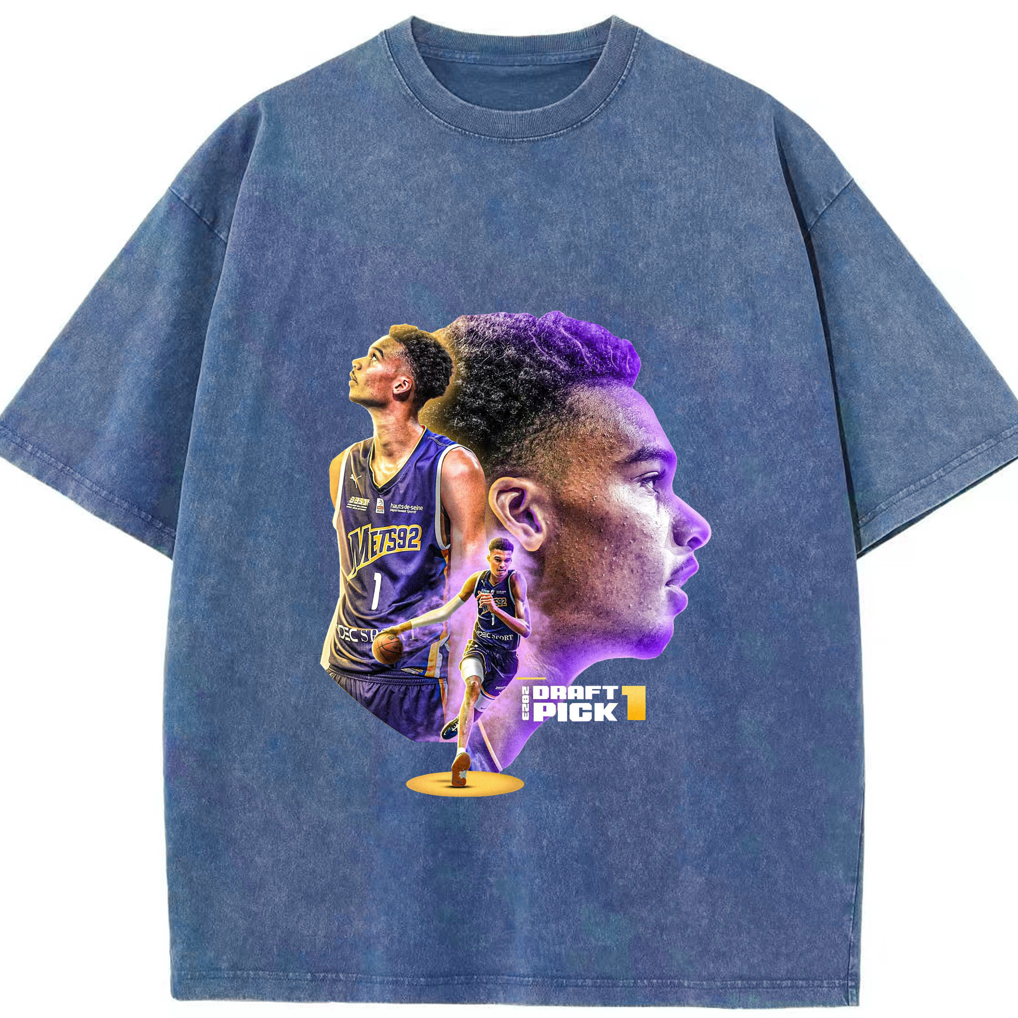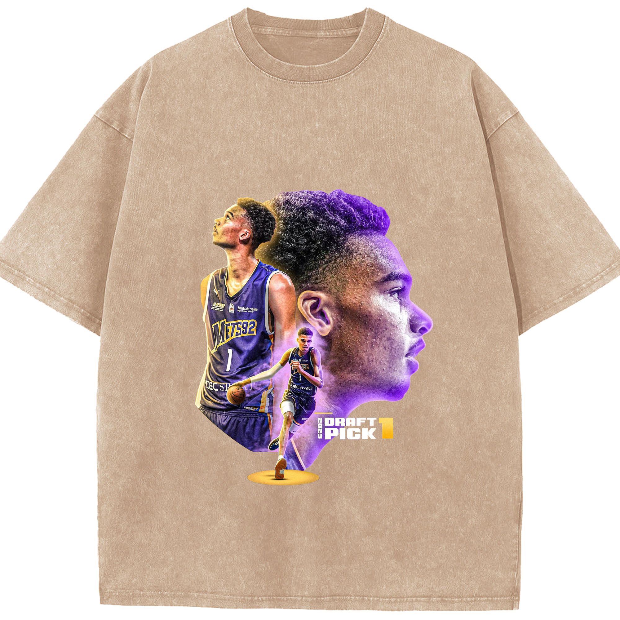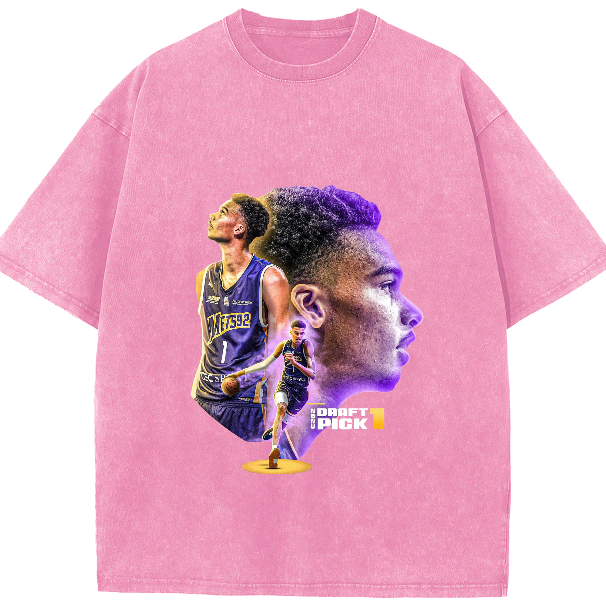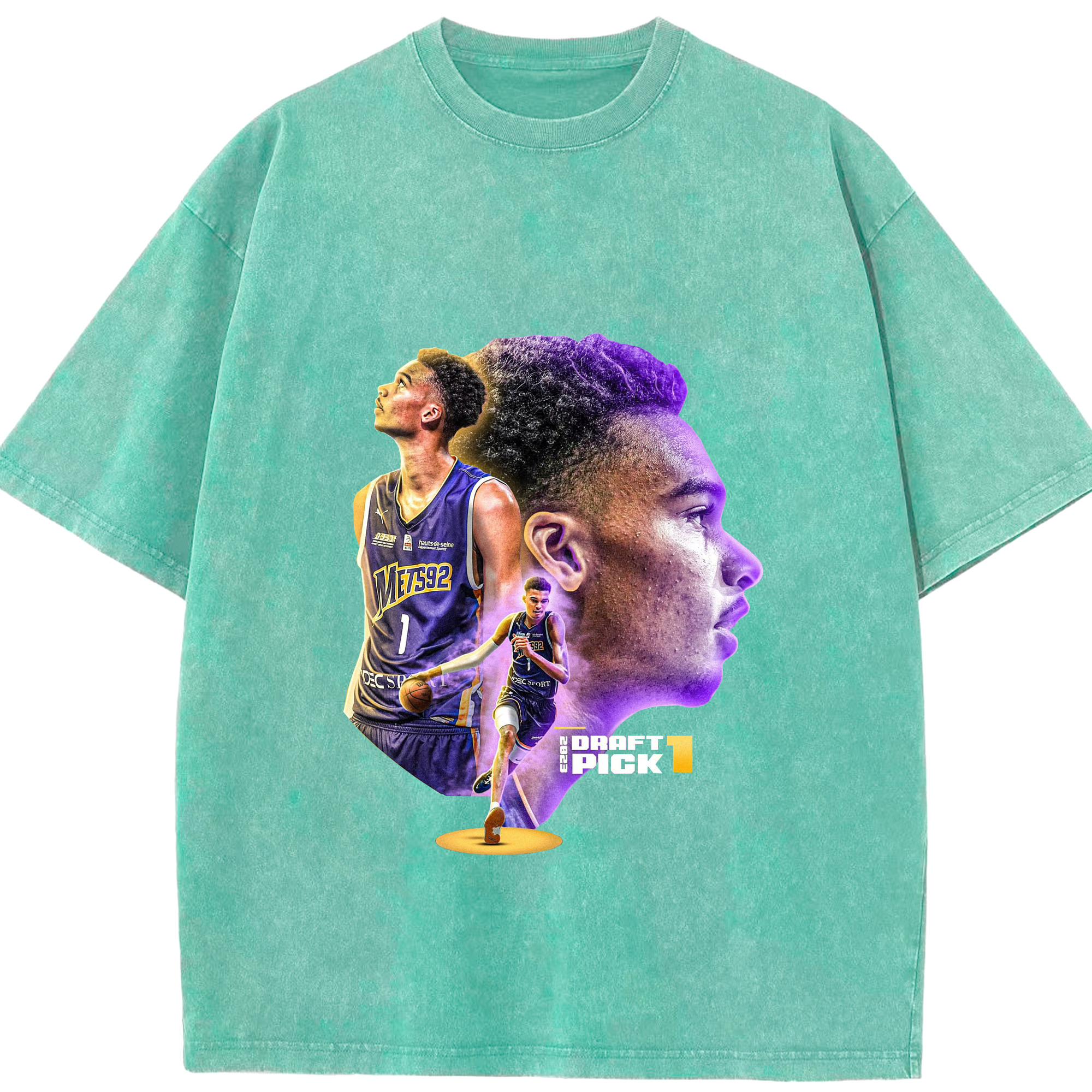 Victor Wembanyama Draft Day Shirt – 2023 No.1 Pick - Washed Vintage Look 230g Cotton Oversized T-Shirt With Front Heat Transfer Print – Soft, Lightweight, Stylish Fit – Comfortable Casual Wear For Sports & Everyday Use